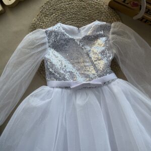 Сукня пишна біла глітер довгий рукав