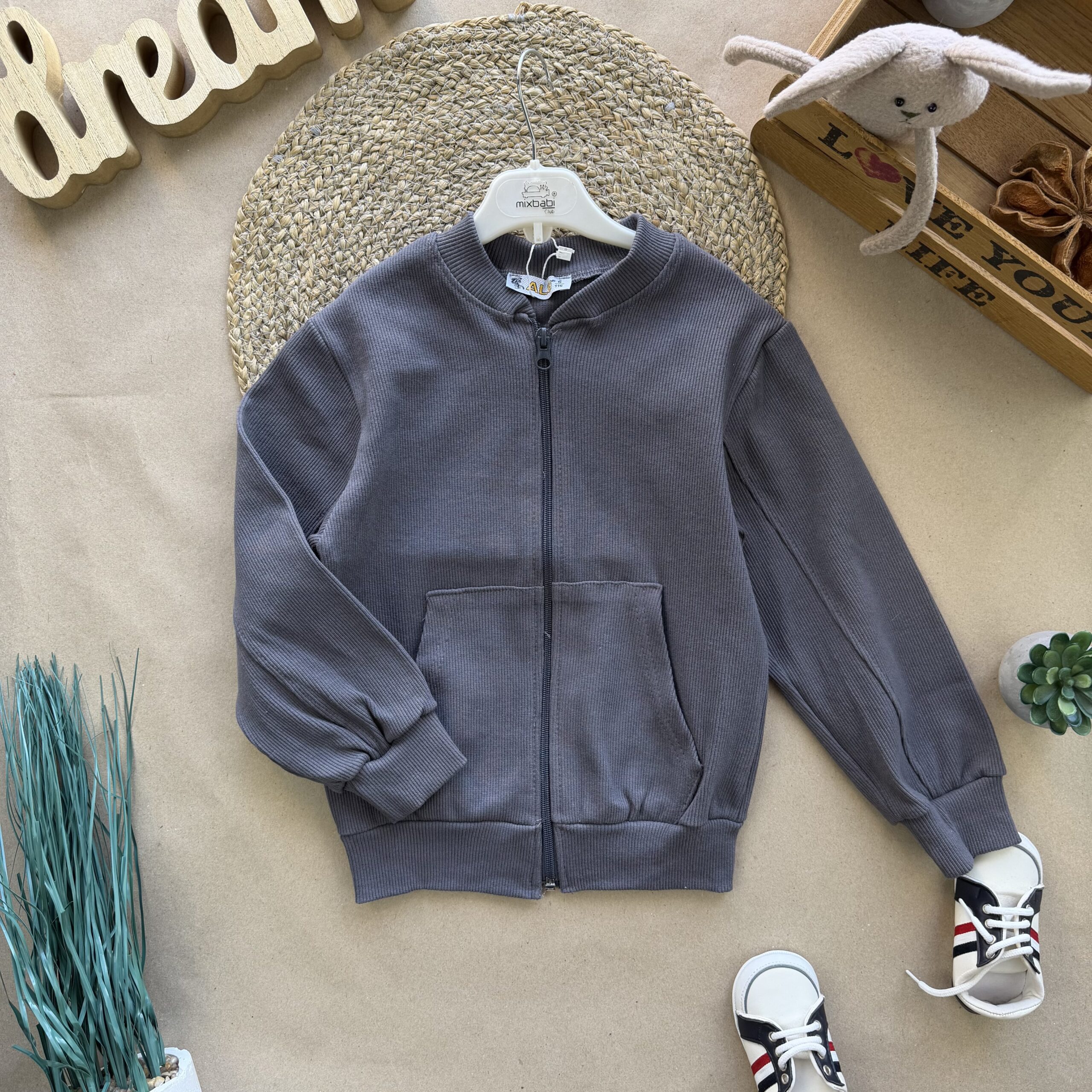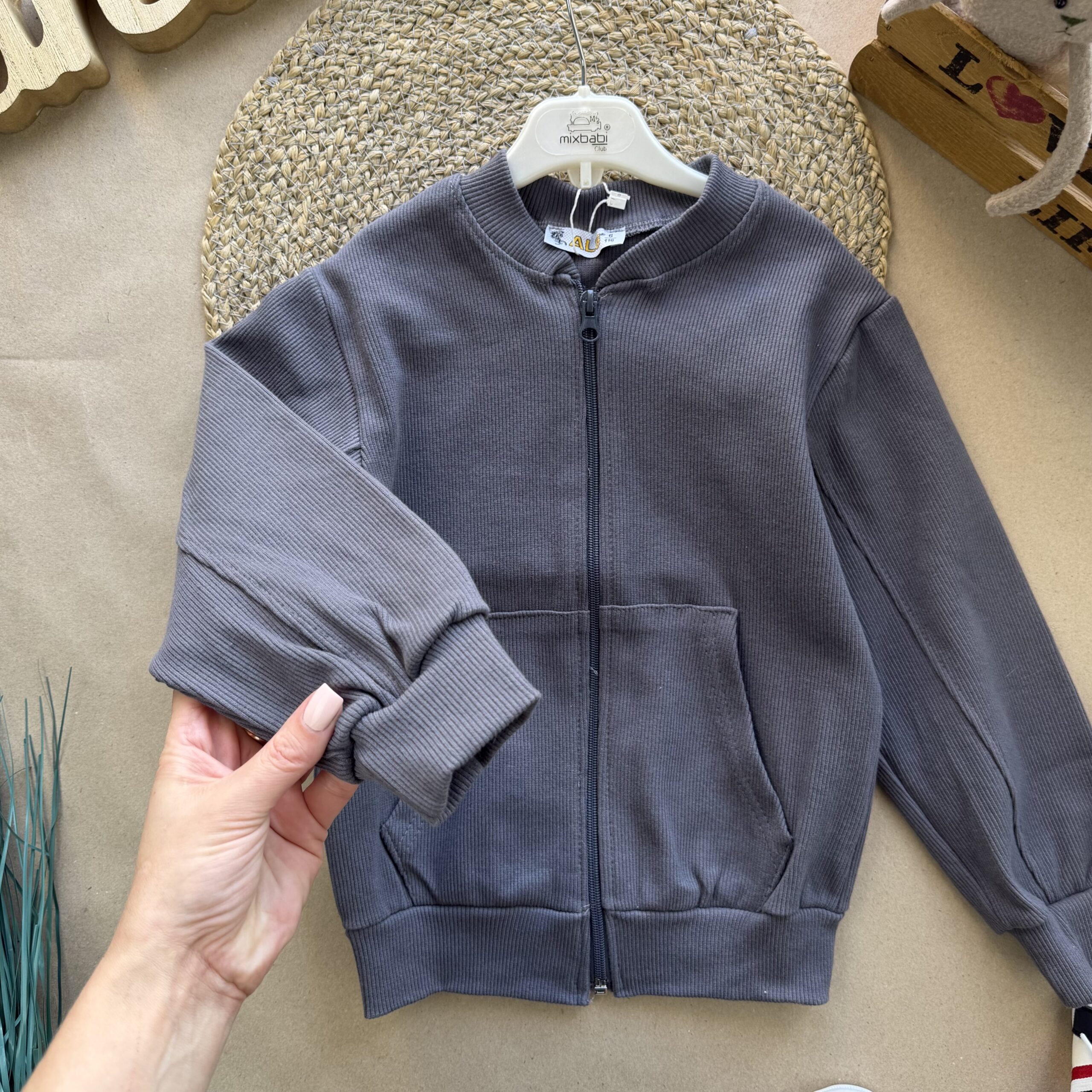 Зручний та стильний бомбер - просто ідеальний варіант! Тканина - 95% бавовна та 5% еластан. Застібається на блискавку, манжети, горловина та дві кишені.