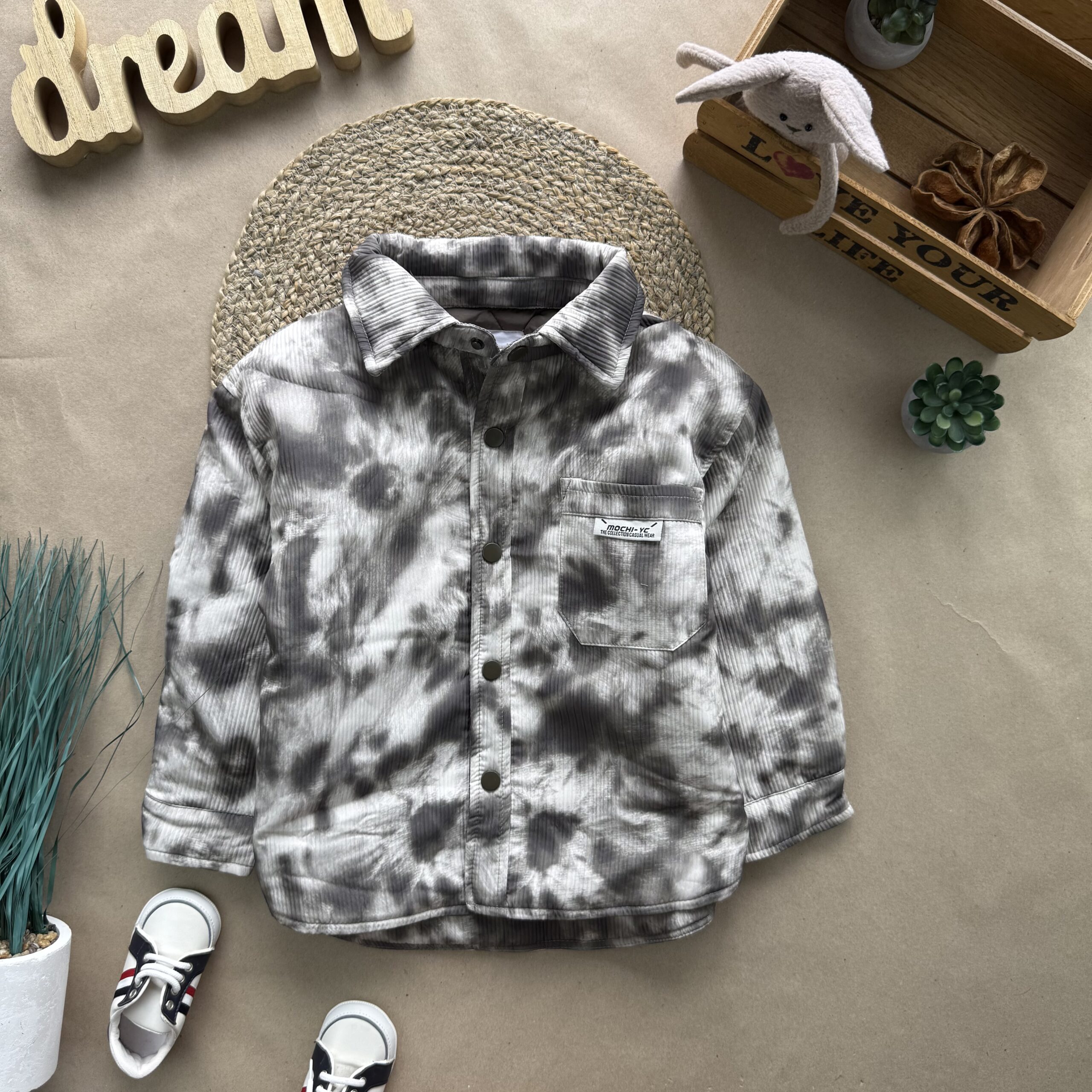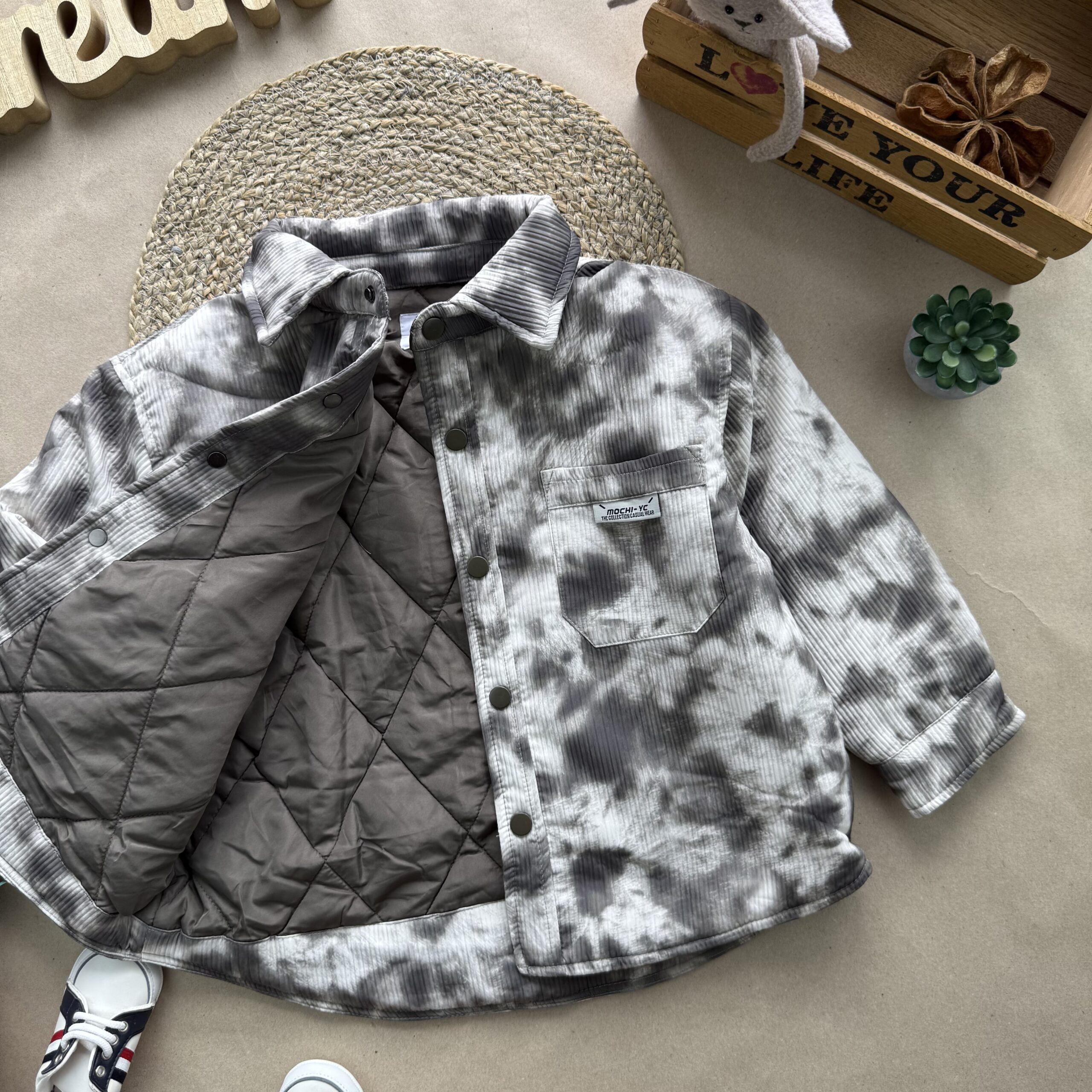 Стильний дитячий бомбер із трендовим ефектом тай-дай. Завдяки утепленій підкладці він чудово захистить від прохолоди. Модель на кнопках, з коміром-стоєчкою та накладною кишенею – зручна та практична!