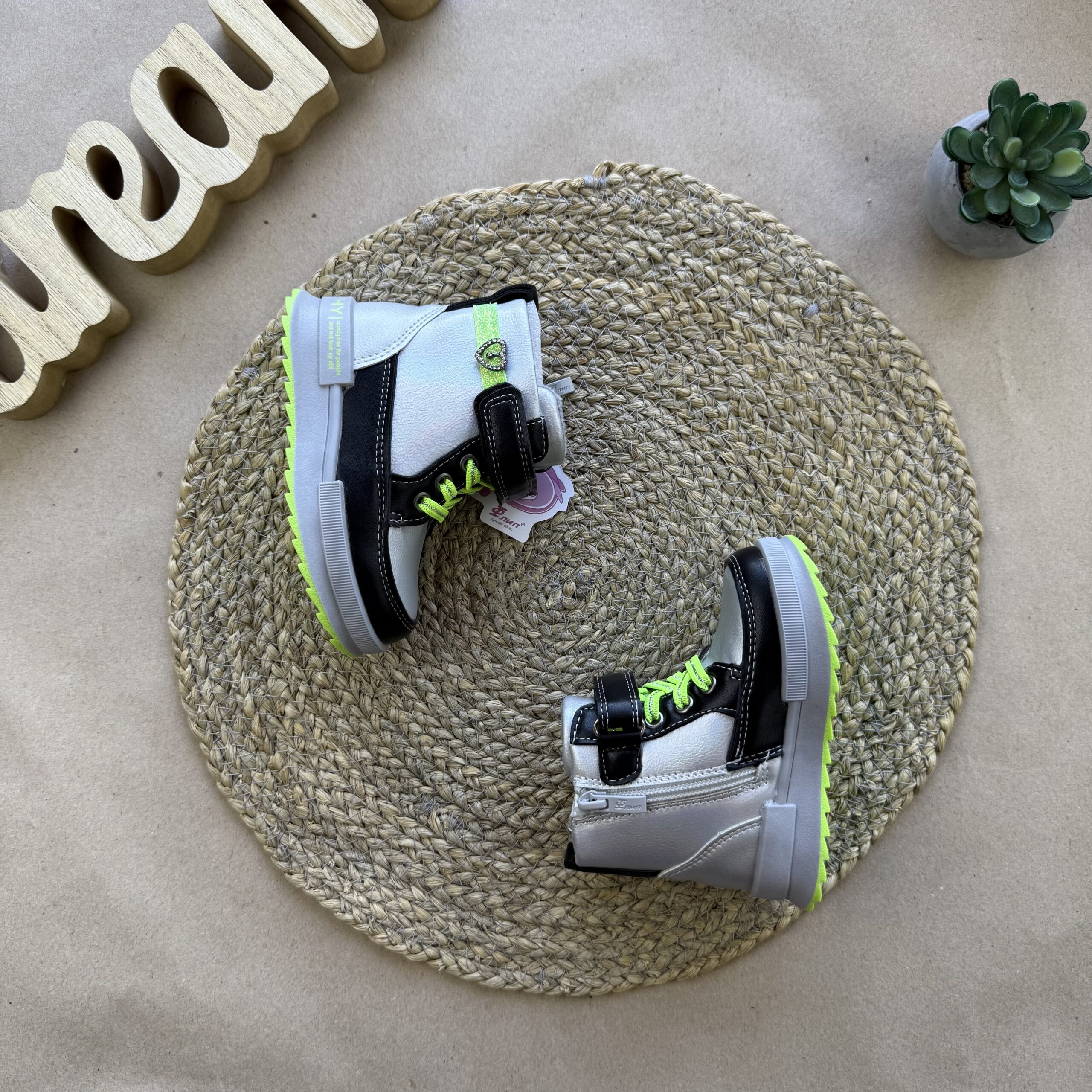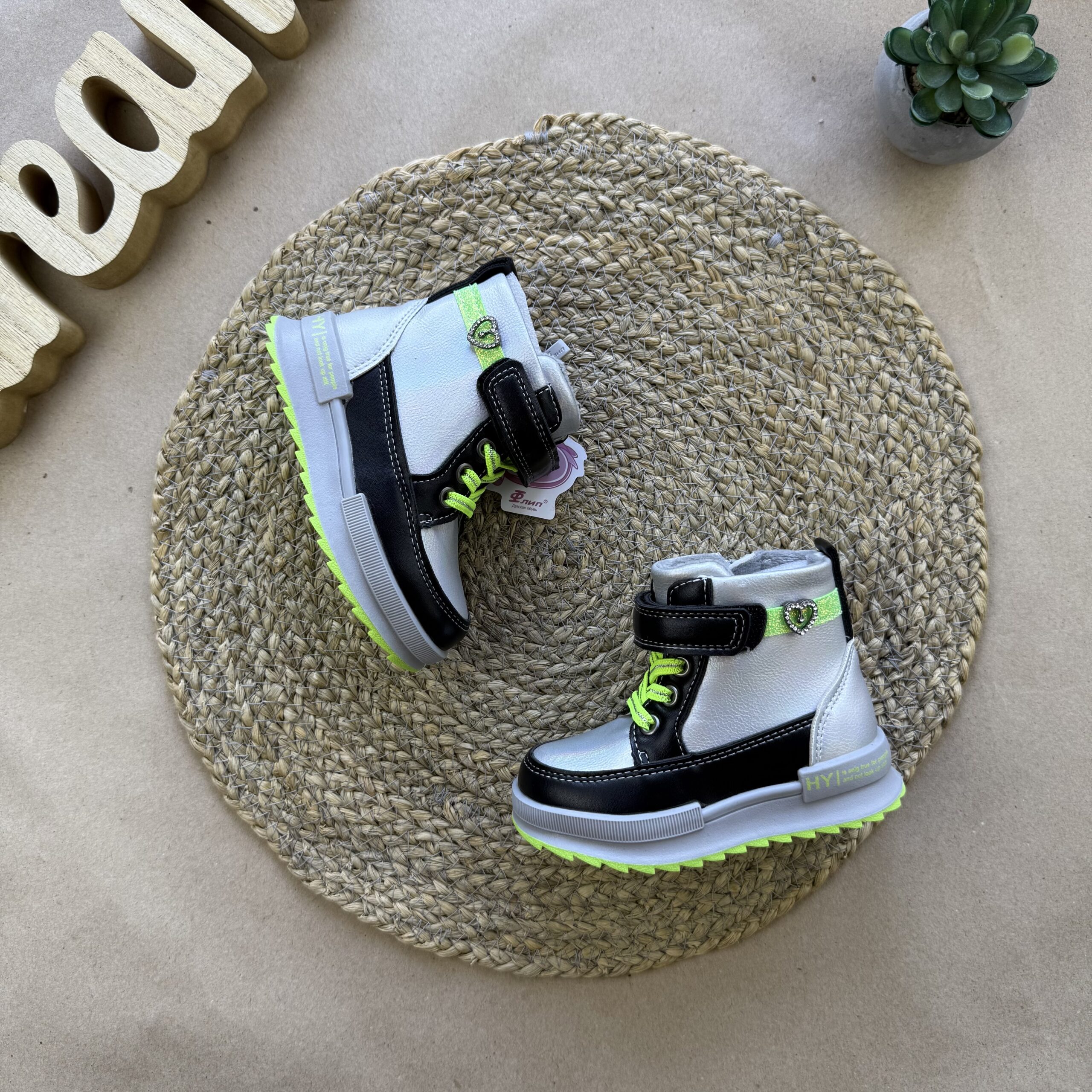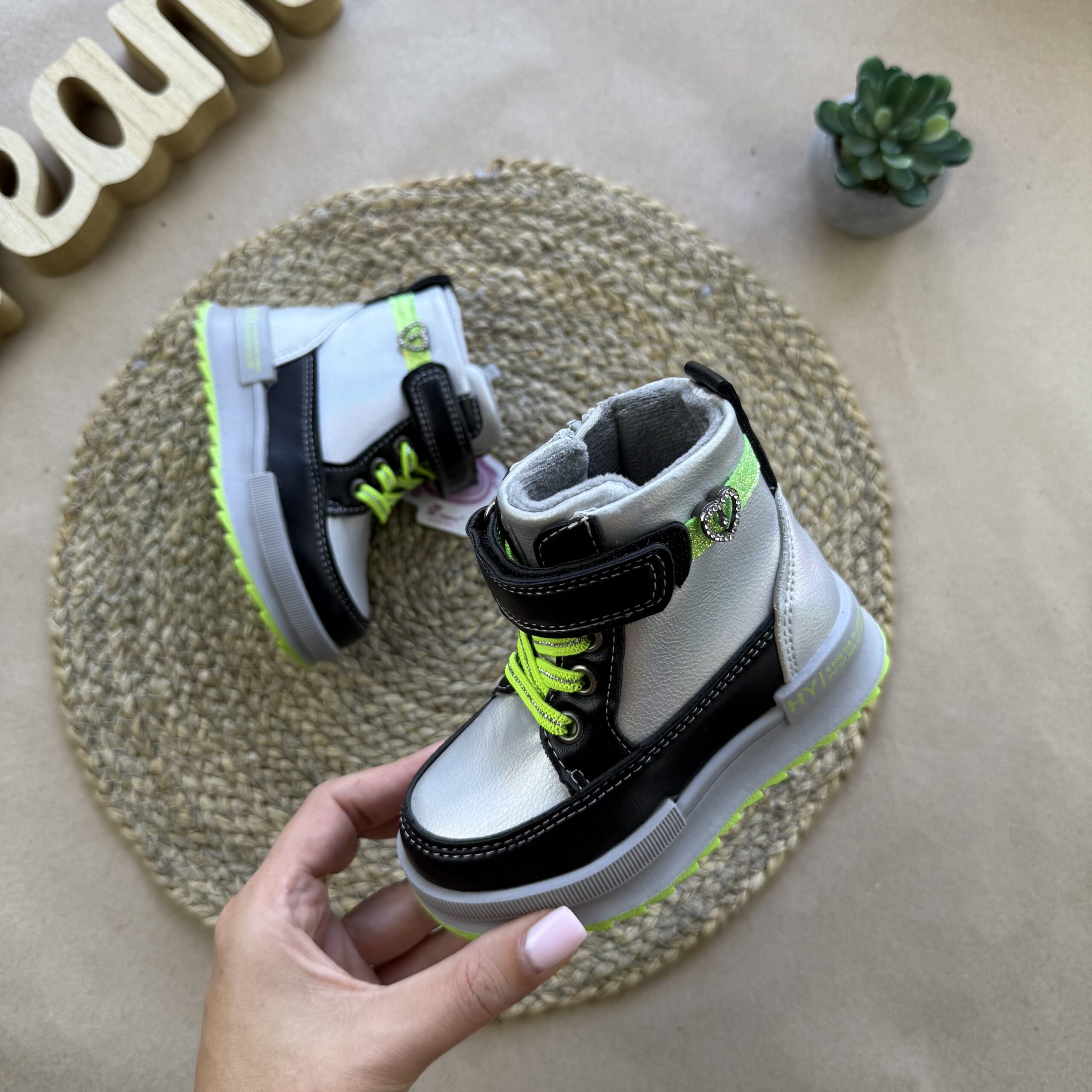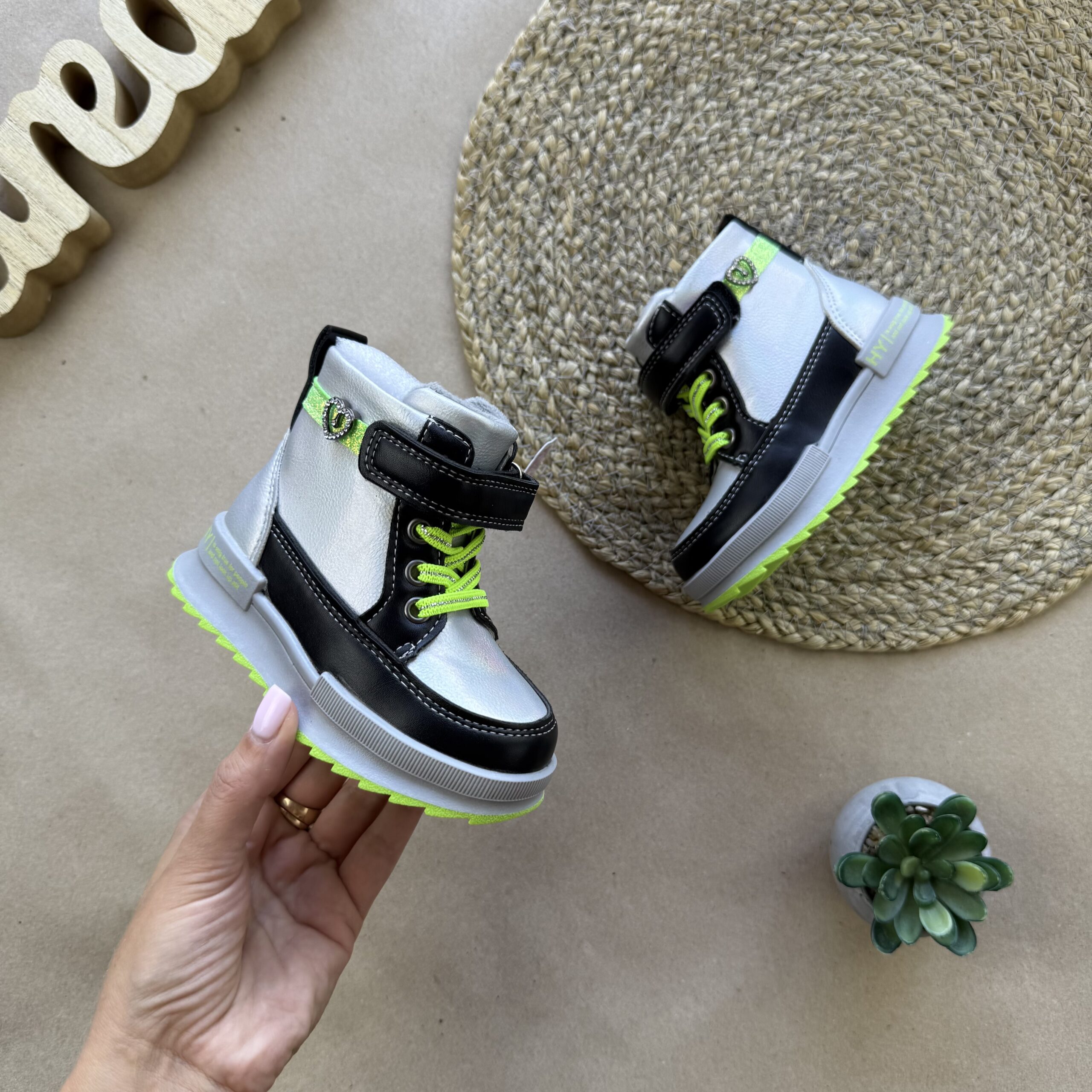 Зручні та практичні демісезонні чоботи! Верх – екошкіра. Застібка – блискавка, липучка та додатково шнурівка. Утеплені флісом. Устілка утеплена, з супінатором. Легенькі та зручні.