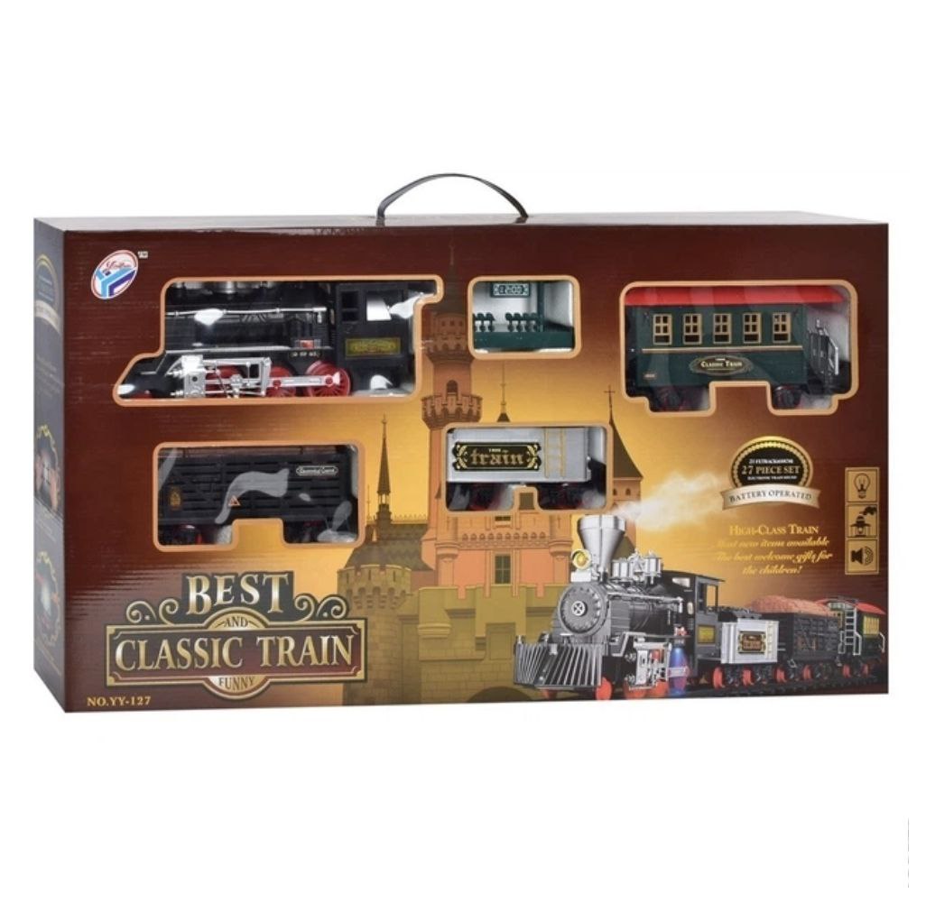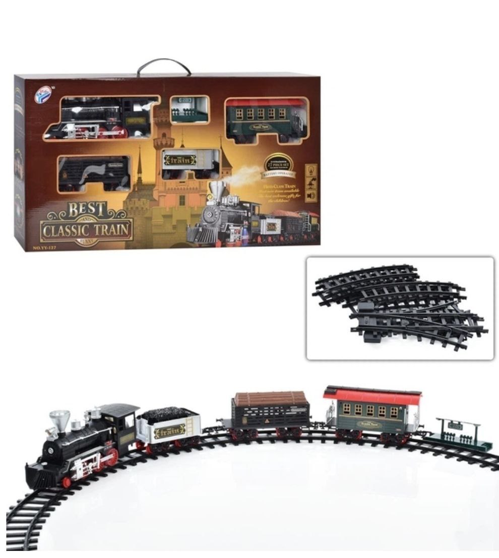 Іграшкова залізниця з димом. Довжина колії 420 см. Зі світловими та звуковими ефектами. Залізниця – іграшка, що імітує справжню залізницю з багатьма її атрибутами. Вона однаково добре підійде як для хлопчиків, так і для дівчаток. Залізниця здатна надовго захопити дитину, адже граючи, вона зможе побудувати свій власний світ. У процесі гри у дитини розвивається дрібна моторика, координація, кмітливість, уява та логіка.