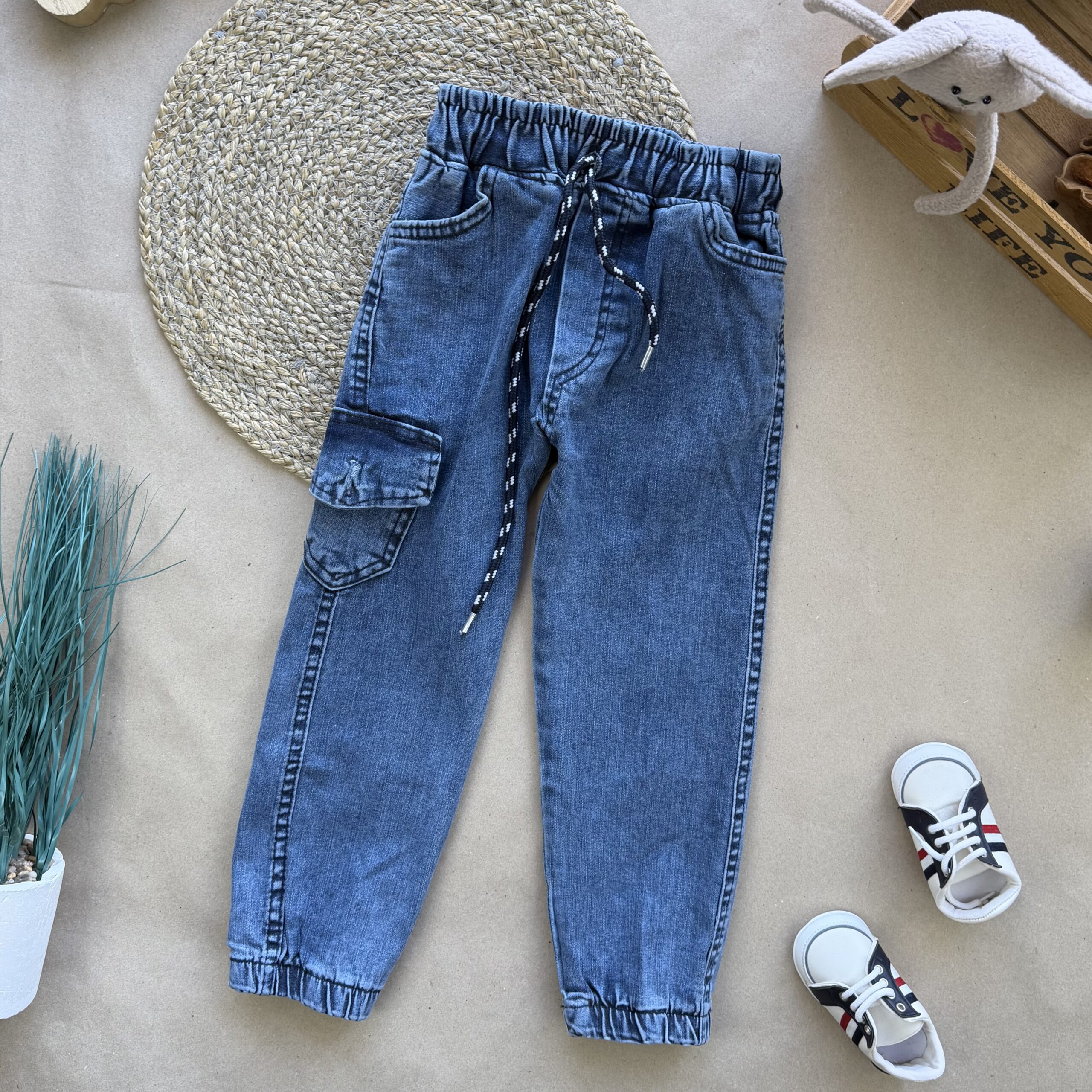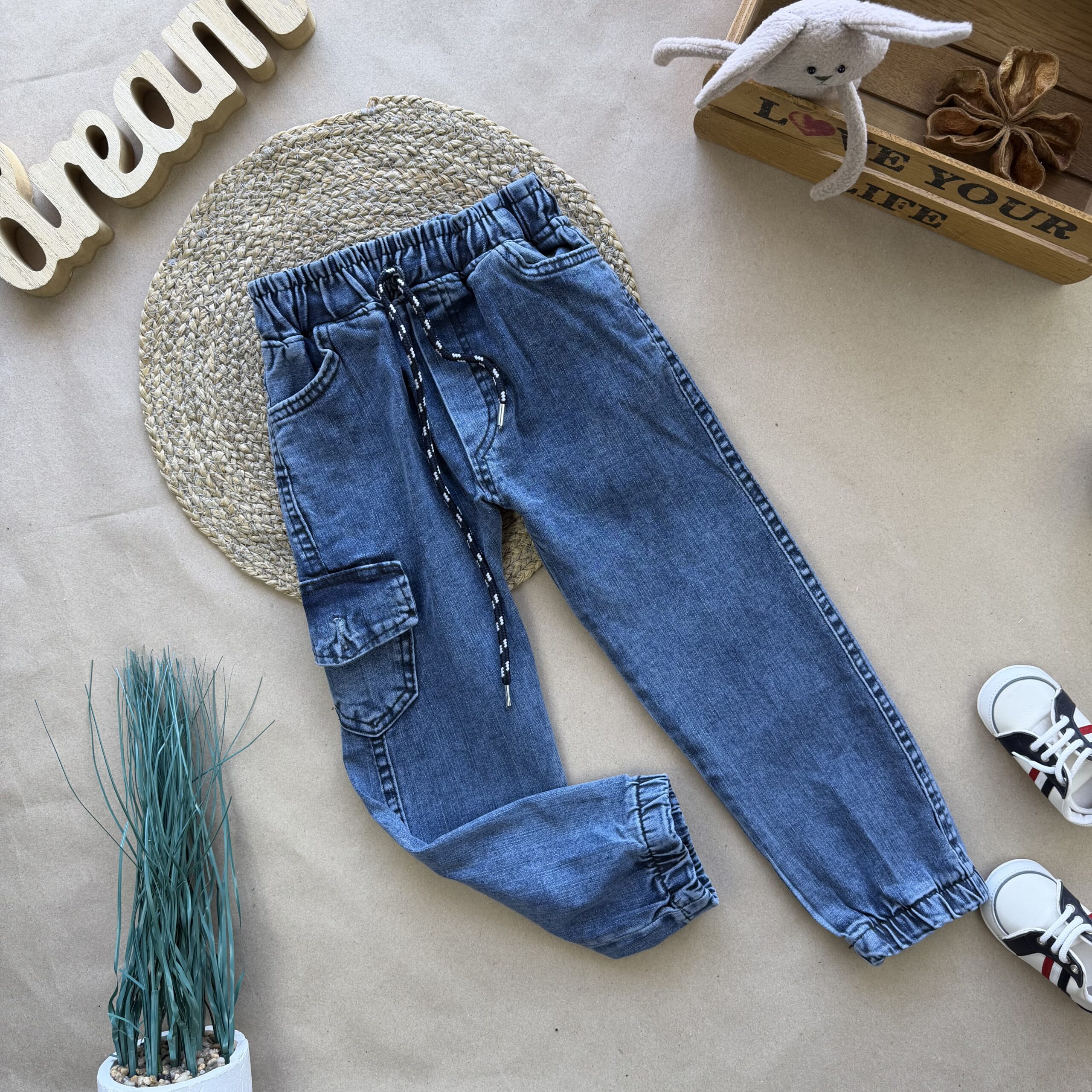 Відмінні джинси виробництва - Туреччина! В поясі- широка гумка та додатково - шнурок утяжка. Кишені - спереду і сзаду. З боку - накладна кишеня. Джинс - якісний, щільний!