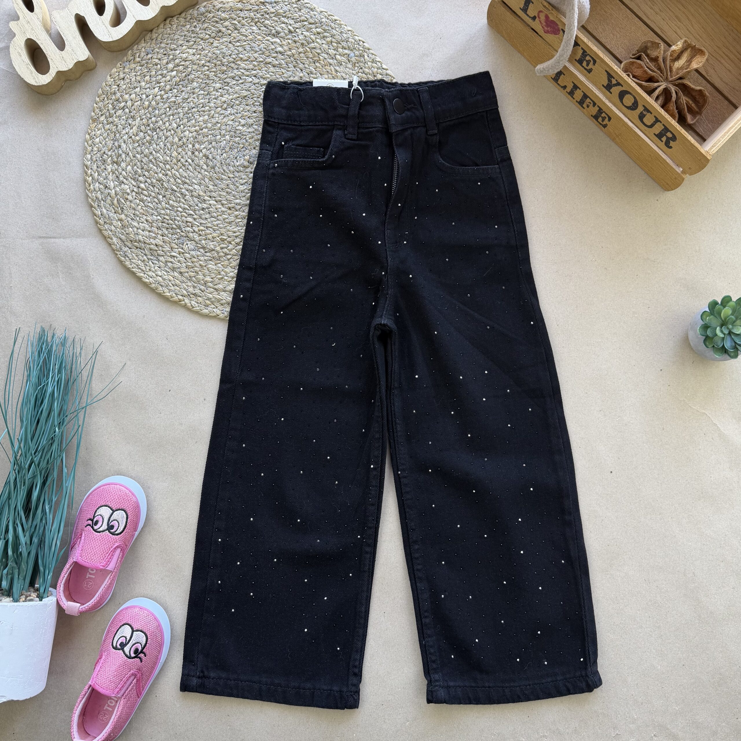 Широкі джинси вільного крою, виробництва Туреччина. Якісний джинс, що ідеально тримає форму. Незвичайний акцент у вигляді стразів додає образу ніжності та оригінальності. Кишені спереду і сзаду.