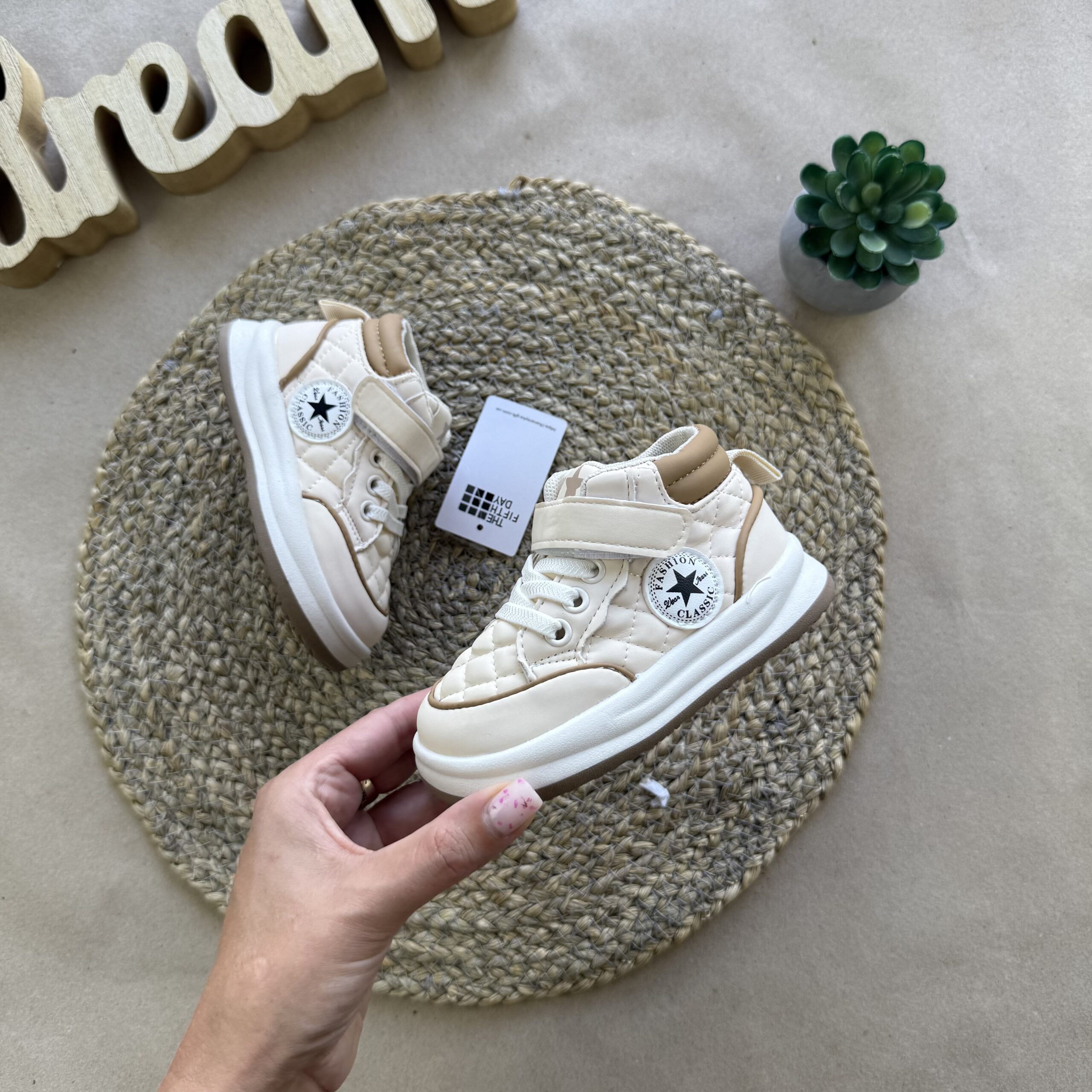 Зручні дитячі хайтопи з високою посадкою для надійної фіксації. Модель має липучку та шнурівку, що забезпечує комфорт і легкість у взуванні. Устілка – текстиль.