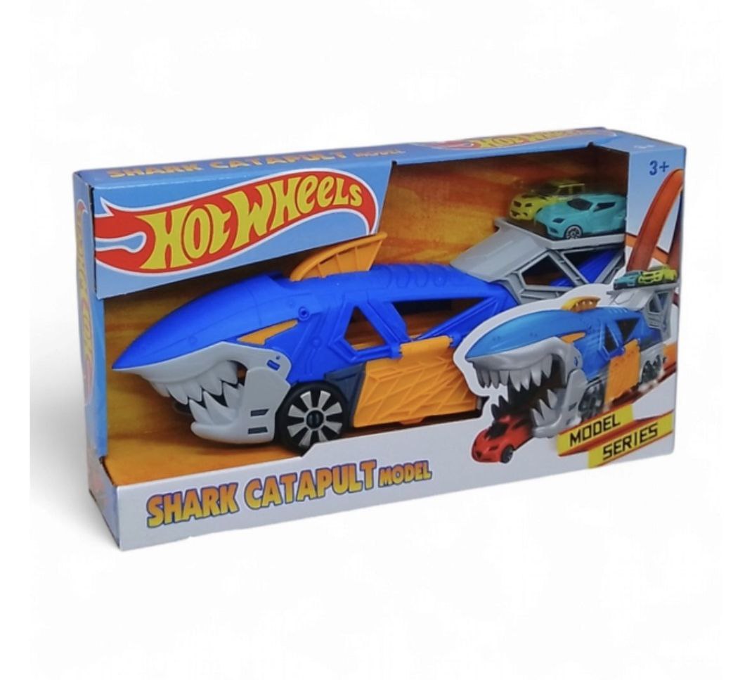 захоплюючий набір трейлера у вигляді великої зубастої акули із запускачем, в комплект також