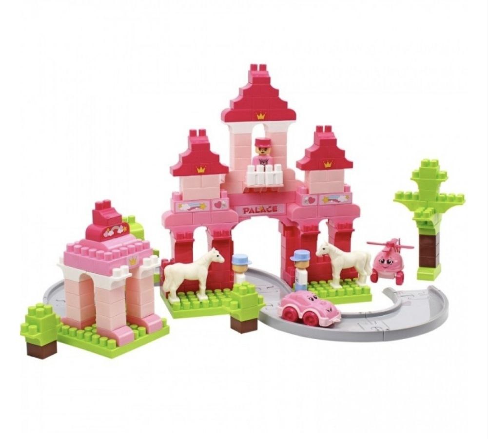 Всього в наборі 180 елементів та яскраві наліпки, що додають особливого шарму кожній конструкції, та прикрасити замок за власним смаком. Ландшафтний дизайн створюють дерева та кущі з елементів конструктора.