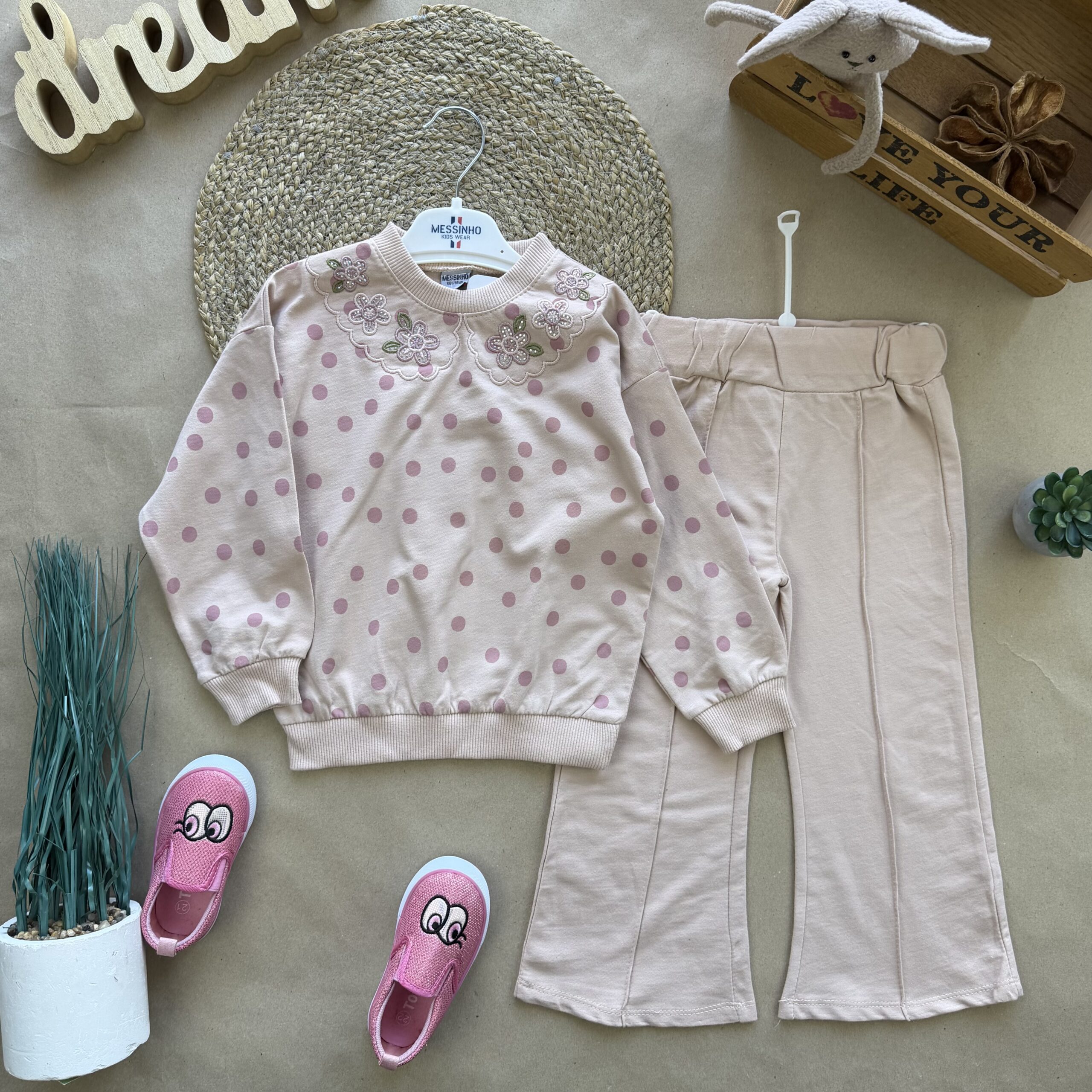 Костюм горошок пудра