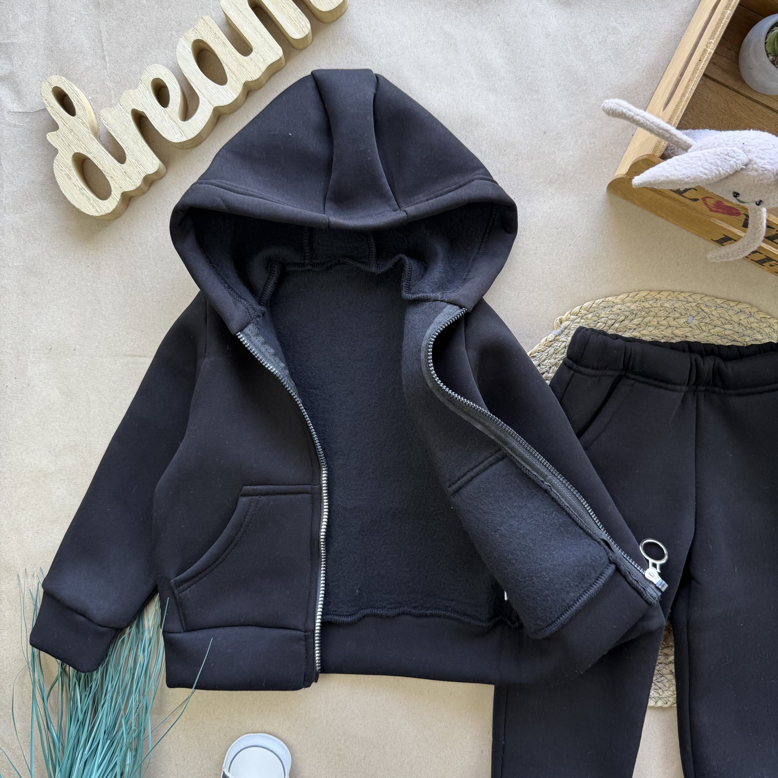 Стильний костюм! Тканина – тринитка на флісі Туреччина! Фліс товстий та теплий. Худі з капюшоном, кишенями та застібається на блискавку. Штани – вільні, не широкі, з гарною посадкою, на манжетах та кишенями.