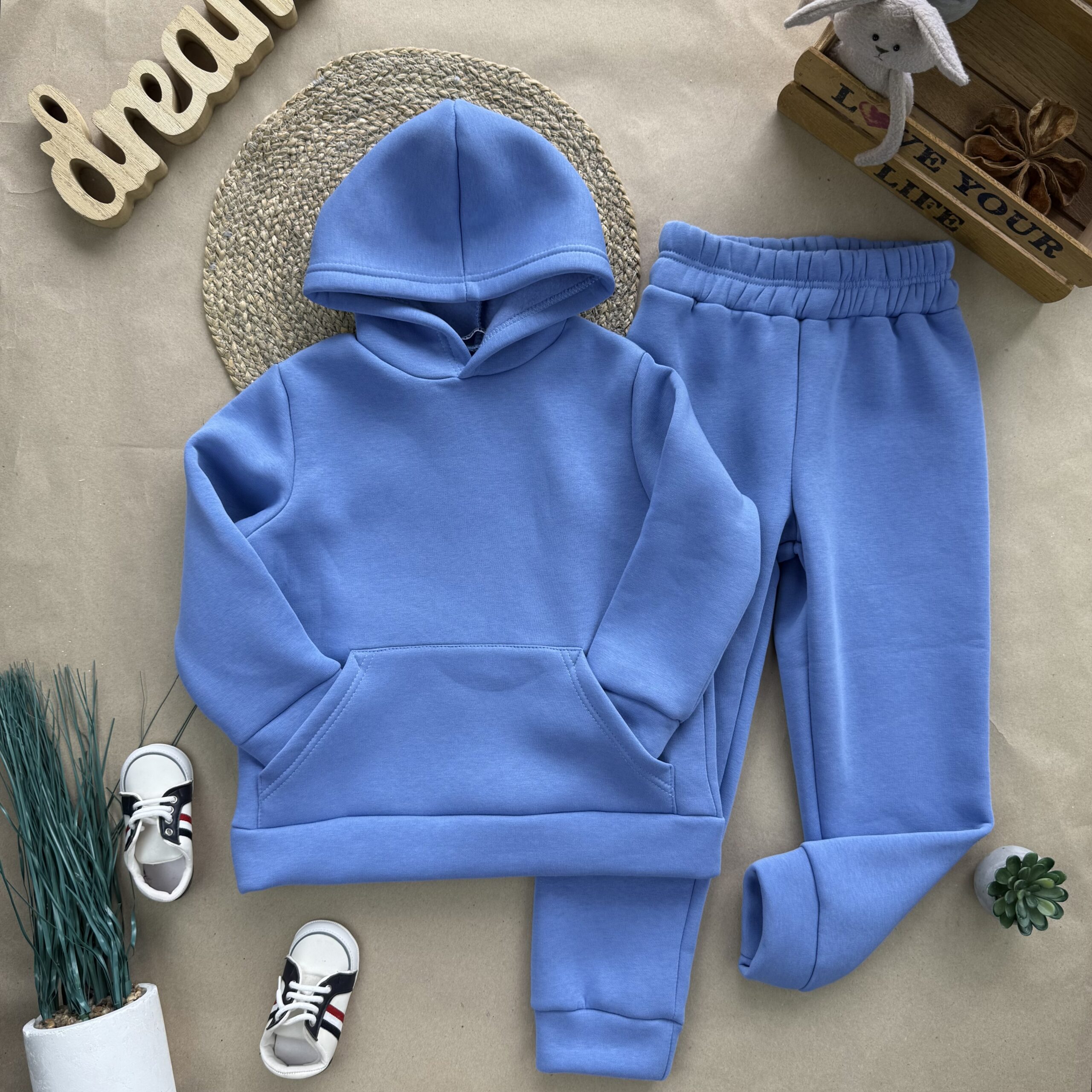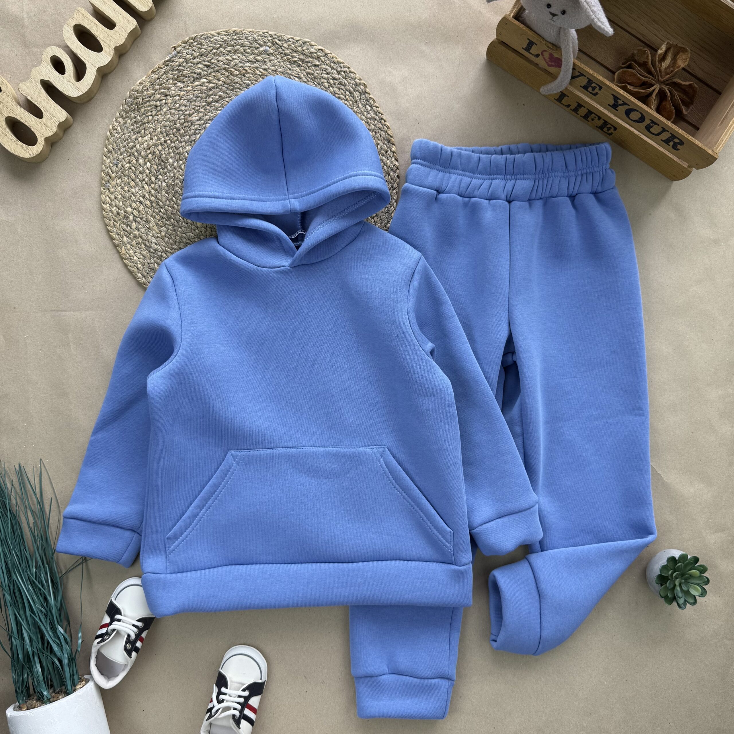 Худі з капюшоном та кишенею. Штани – вільні, не широкі, з гарною посадкою.
