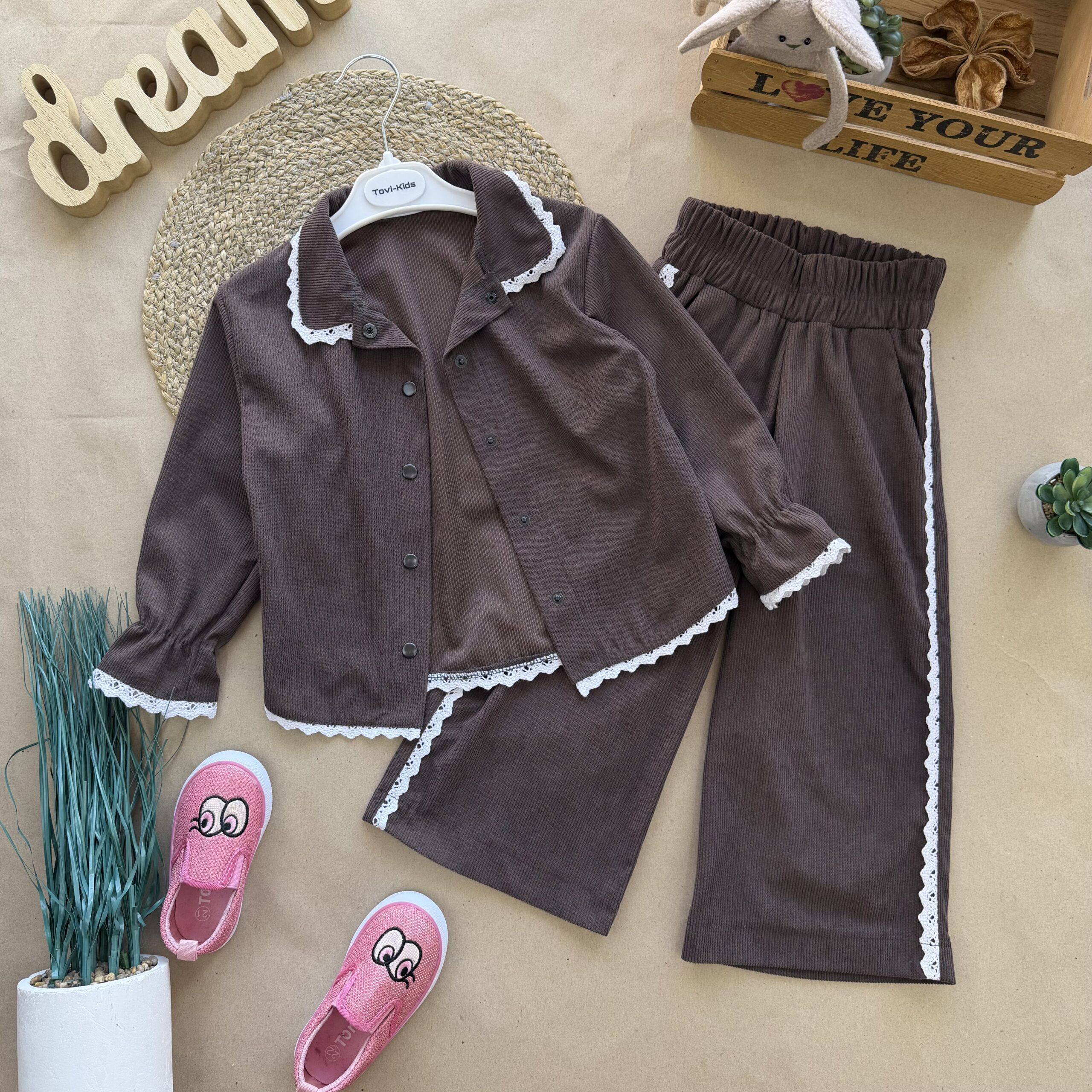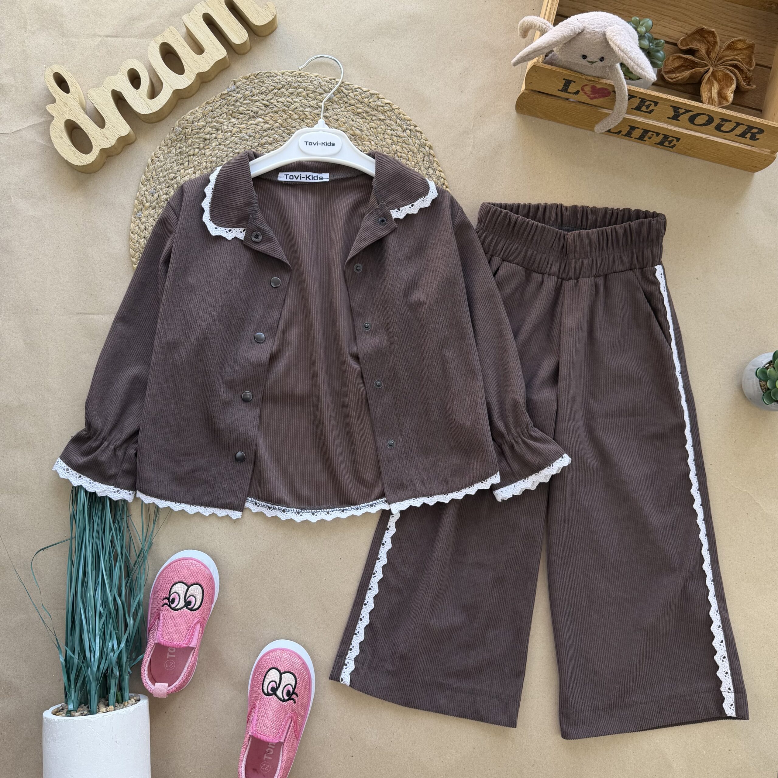 Вельветовий костюм власного виробнитва! Сорочка та палаццо прикрашені мереживом. Найкраща якість мікровельвету рубчик Україні. Не кашлатиться, не втрачає форму та колір при пранні. Сорочка, що застібається на кнопки та штани палацо з кишенями.