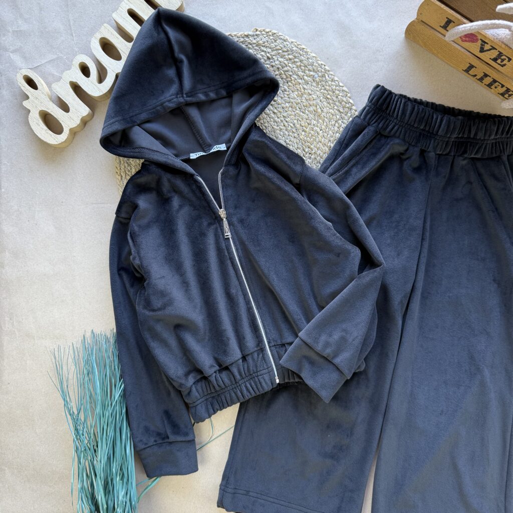 Стильний велюровий костюм власного виробнитва! Найкраща якість велюру в Україні. Не кашлатиться, не втрачає форму та колір при пранні. Кофта з капюшоном на застібці блискавці. Штани палацо з кишенями.