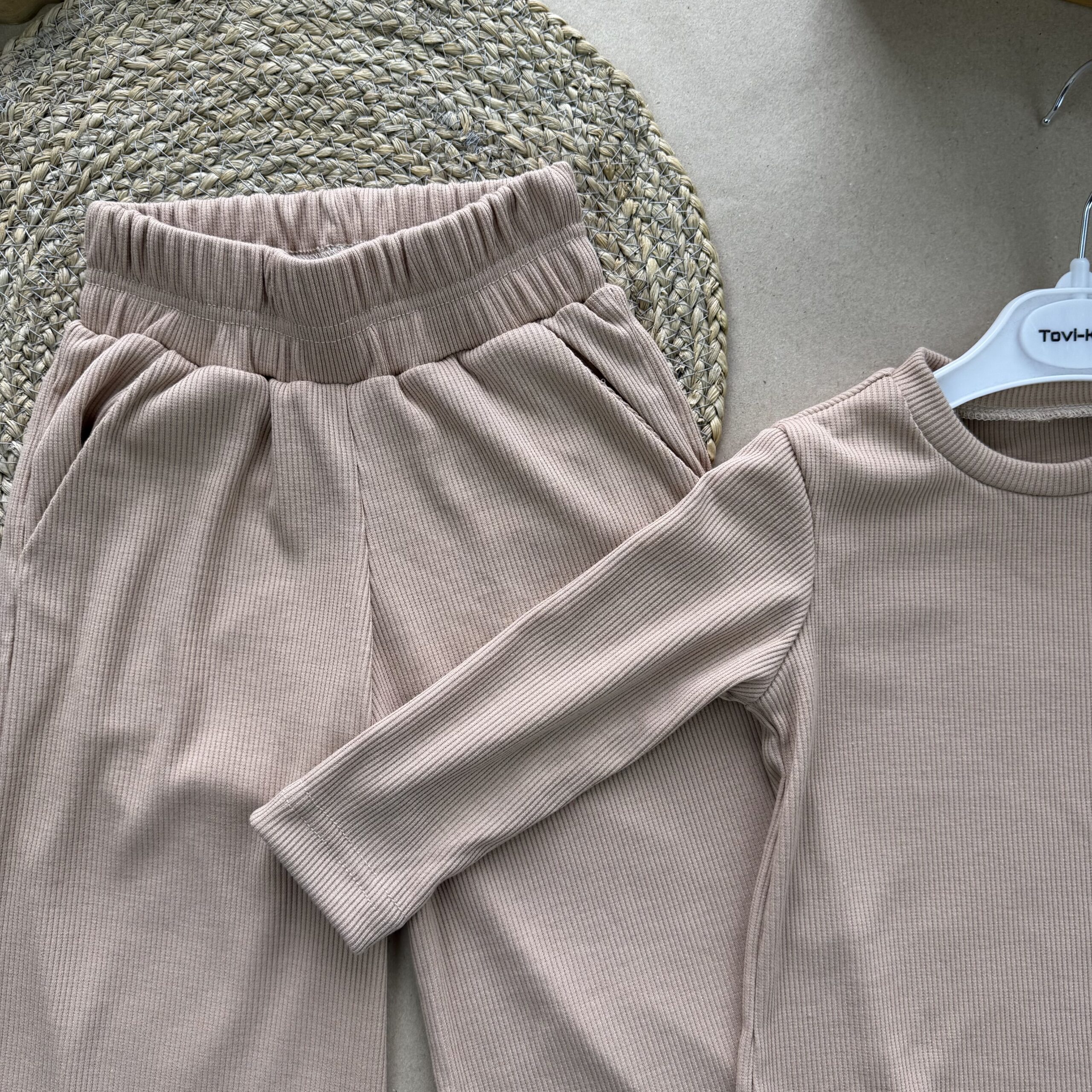 Ідеальний весняний костюм реглан та палаццо. Тканина- рубчик найкращої якості. Реглан - зручний та мʼякий, палаццо- з кишенями.