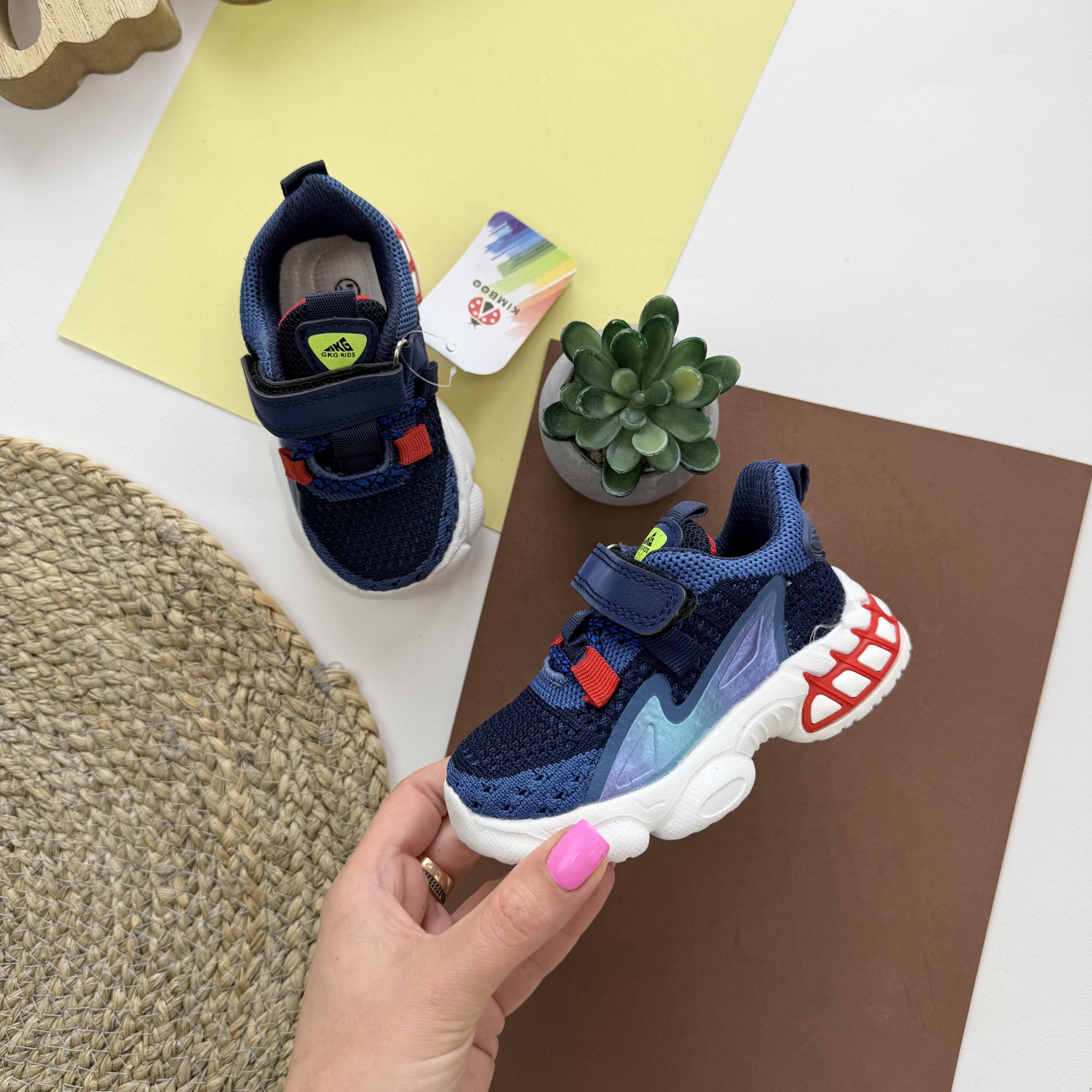 Якісні та зручні кросівки від Кіmbo-о. Верх - текстиль. Устілка - текстиль з імітацією супінатора. Підошва - піна. Легесенькі, застібка- липучка.