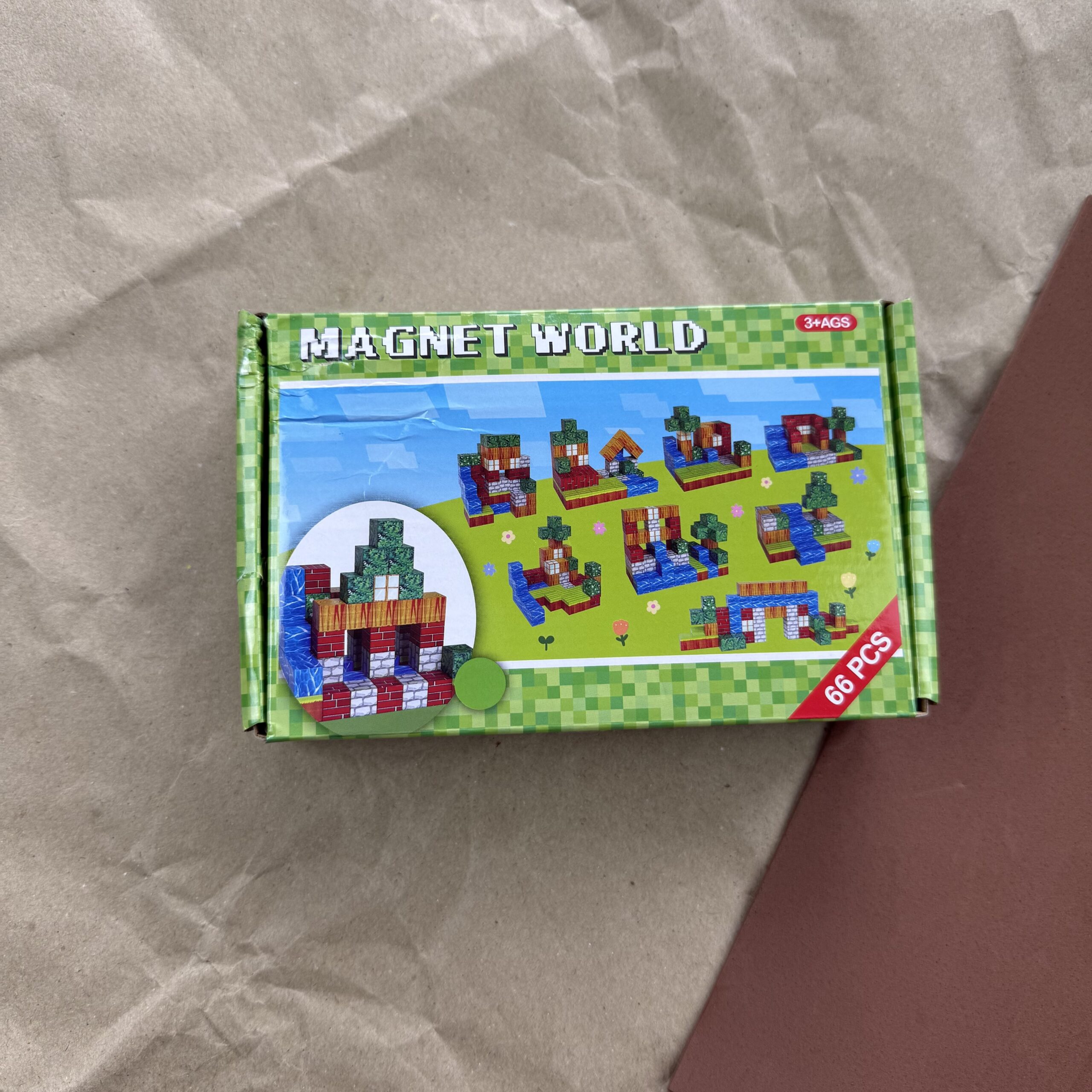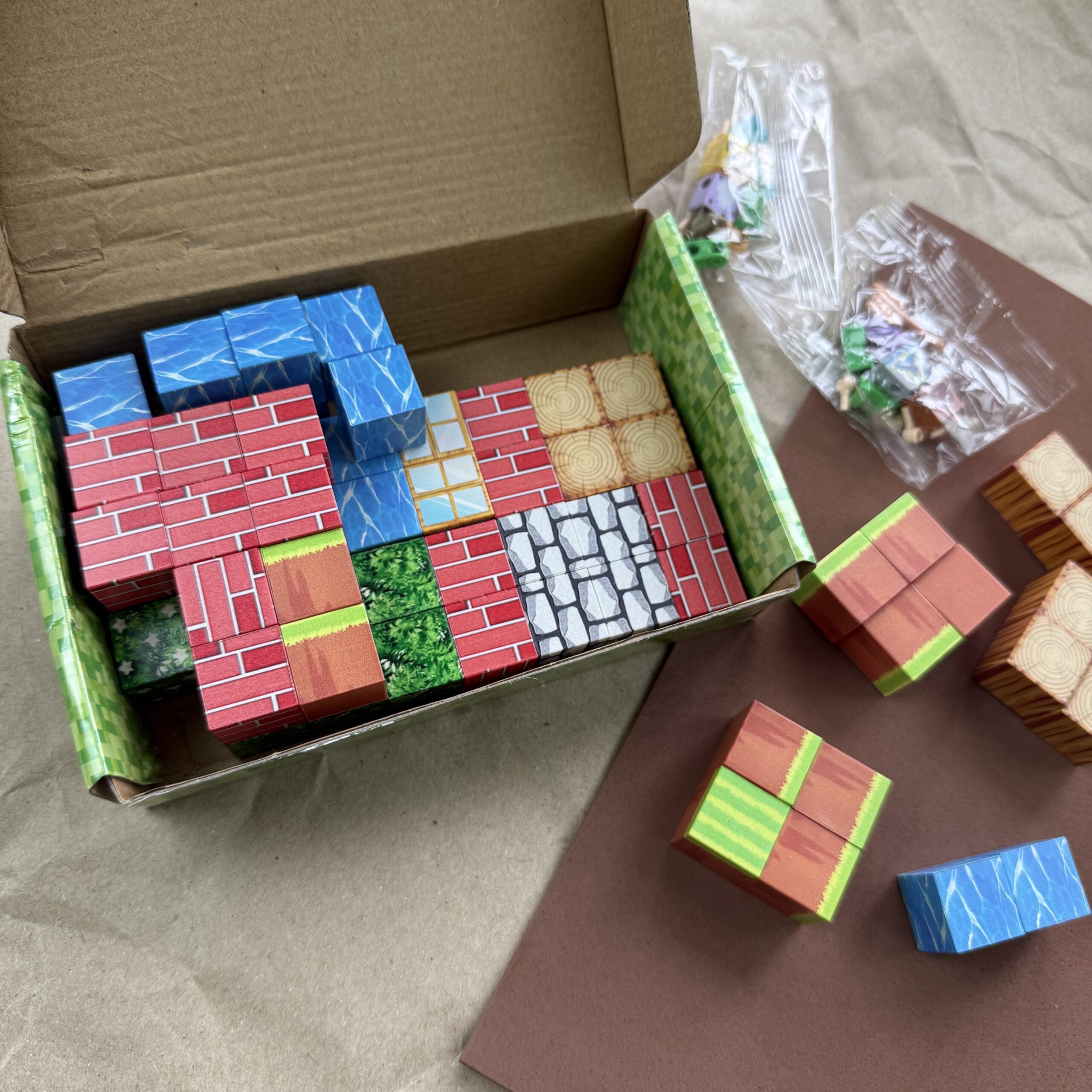 Цей набір включає 64 кубика Майнкрафт та 2 фігурки з аксесуарами.