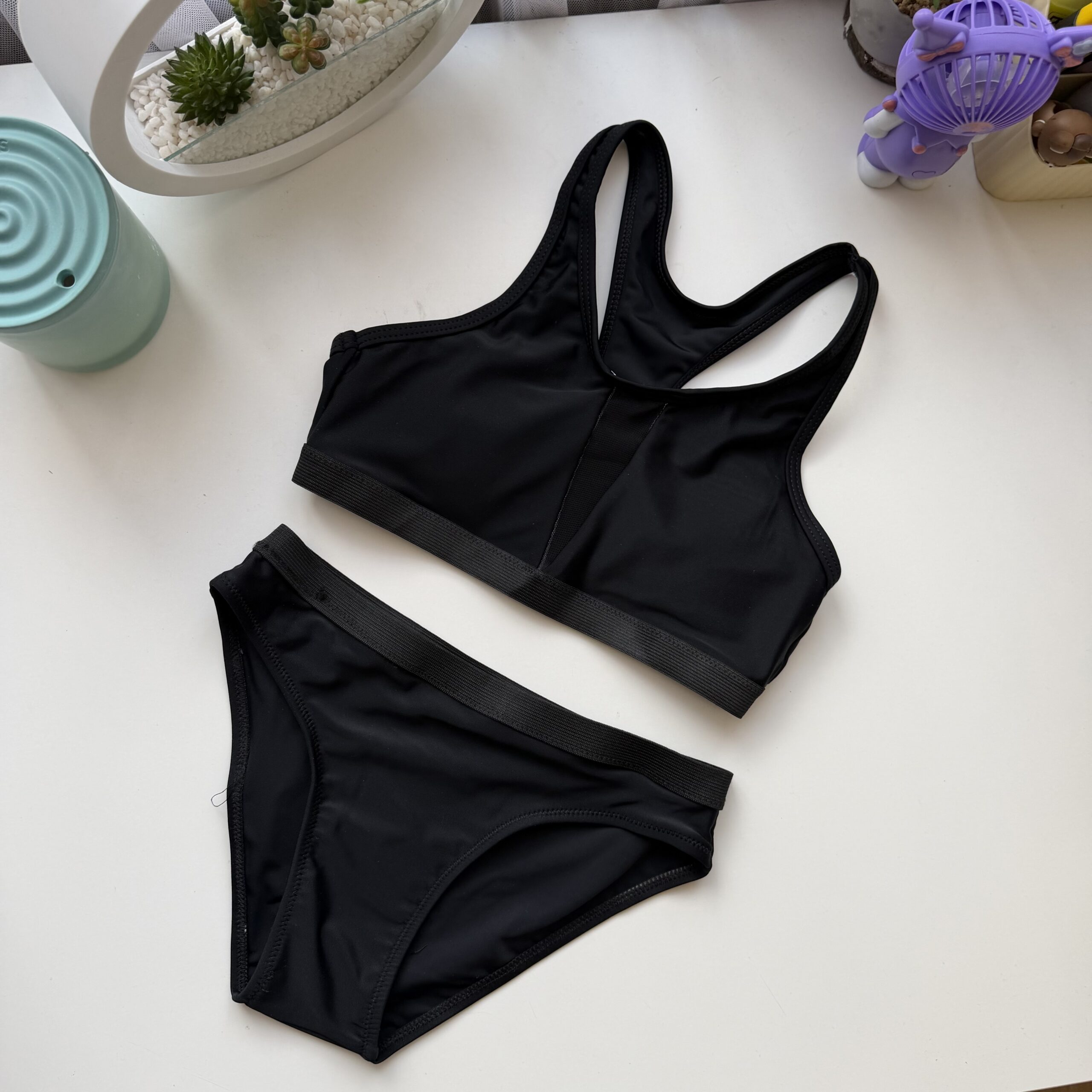 Стильний роздільний купальник підліток- топ та трусики. Чашки - зйомні. Якість - відмінна. М'яка, приємна до тіла тканина та зручний фасон.
