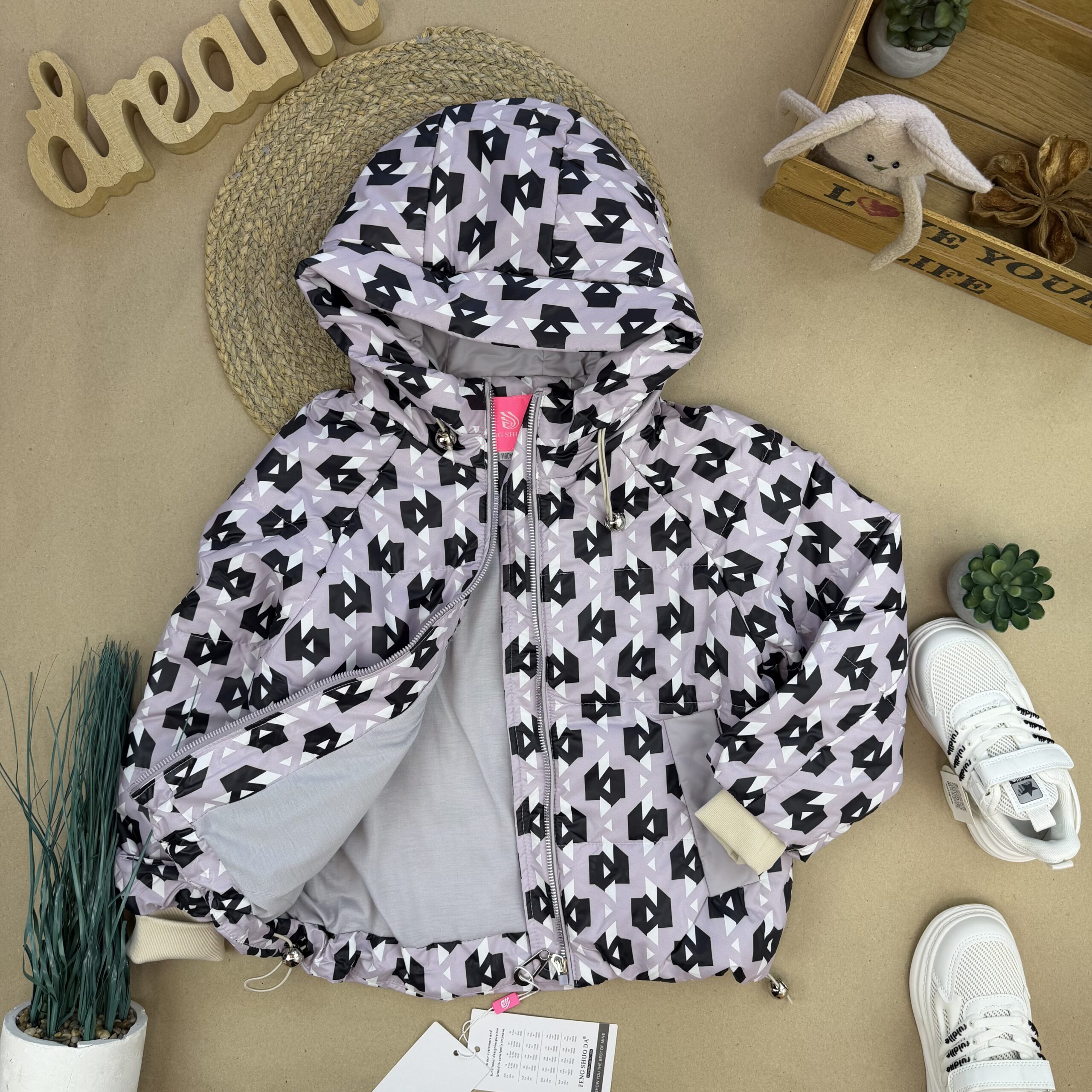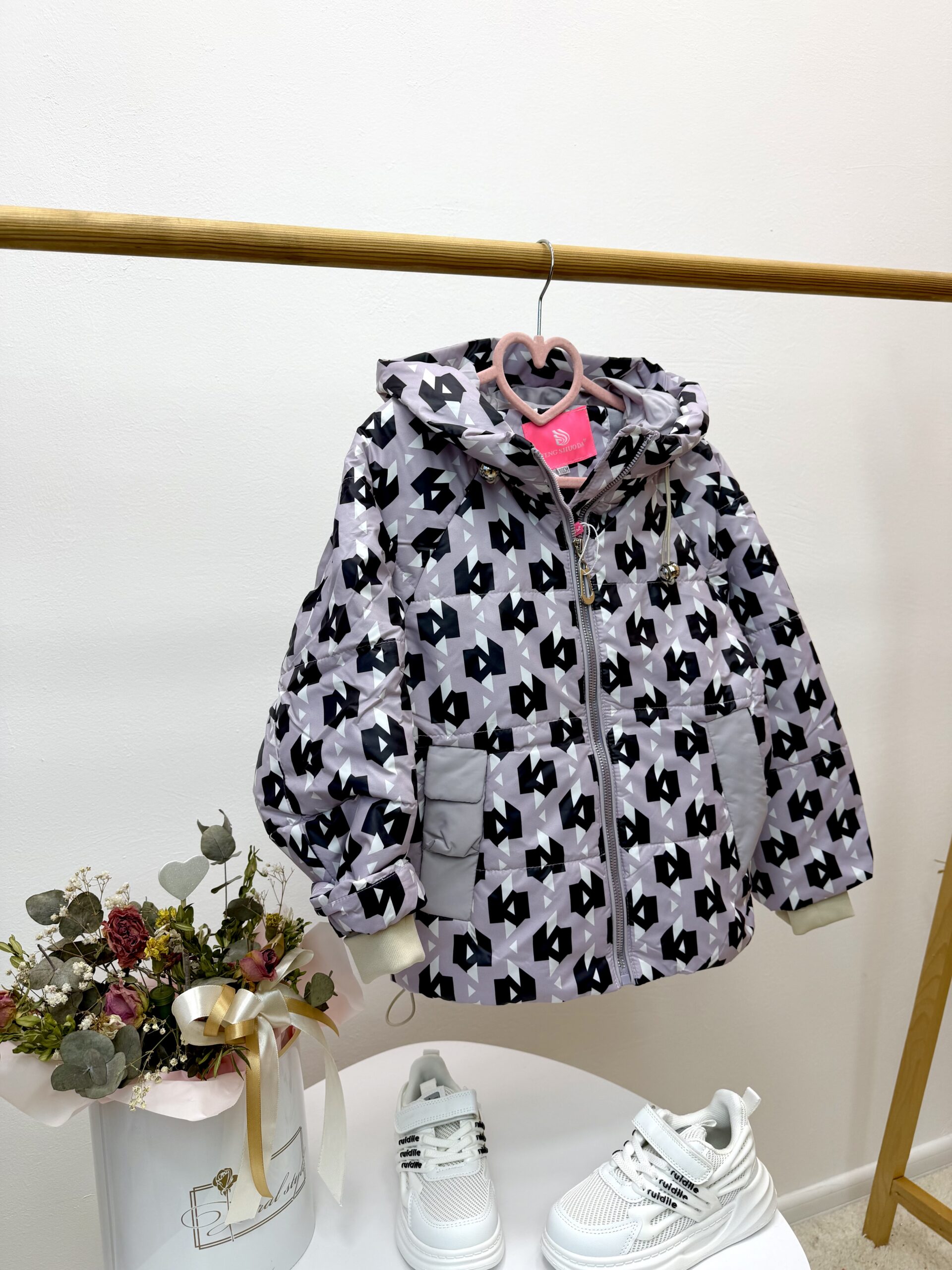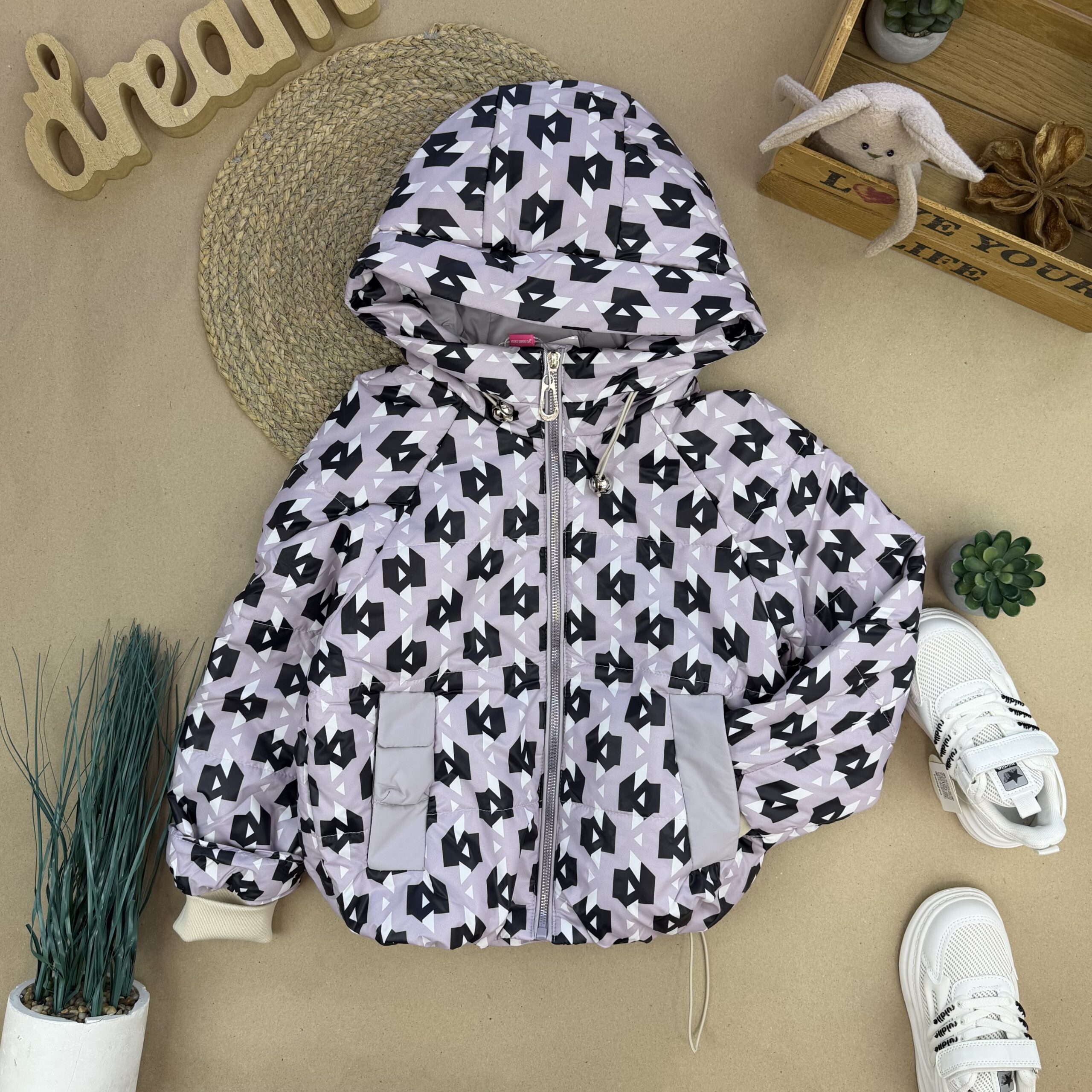 Куртка демі принт пудра 110-134
