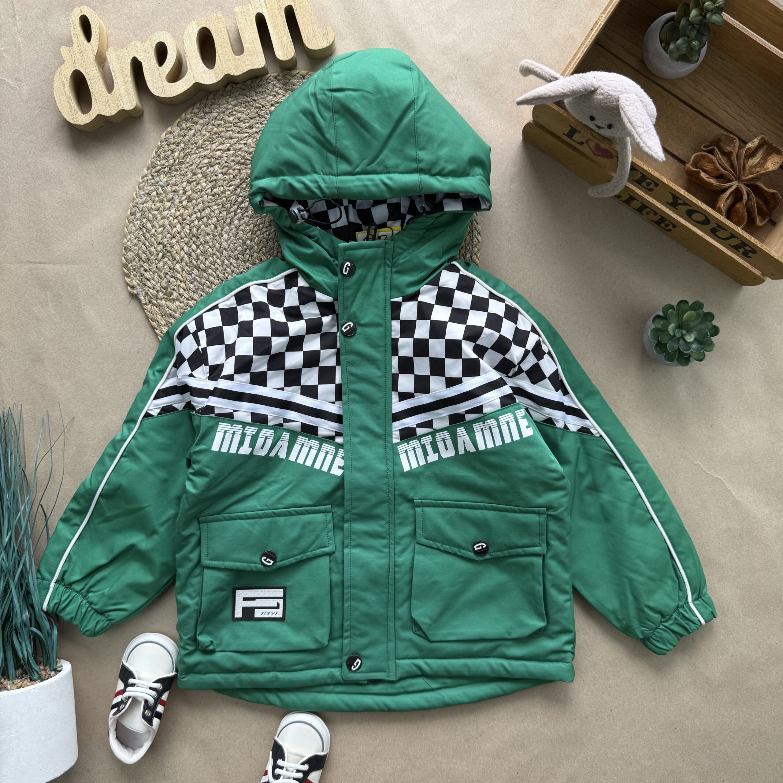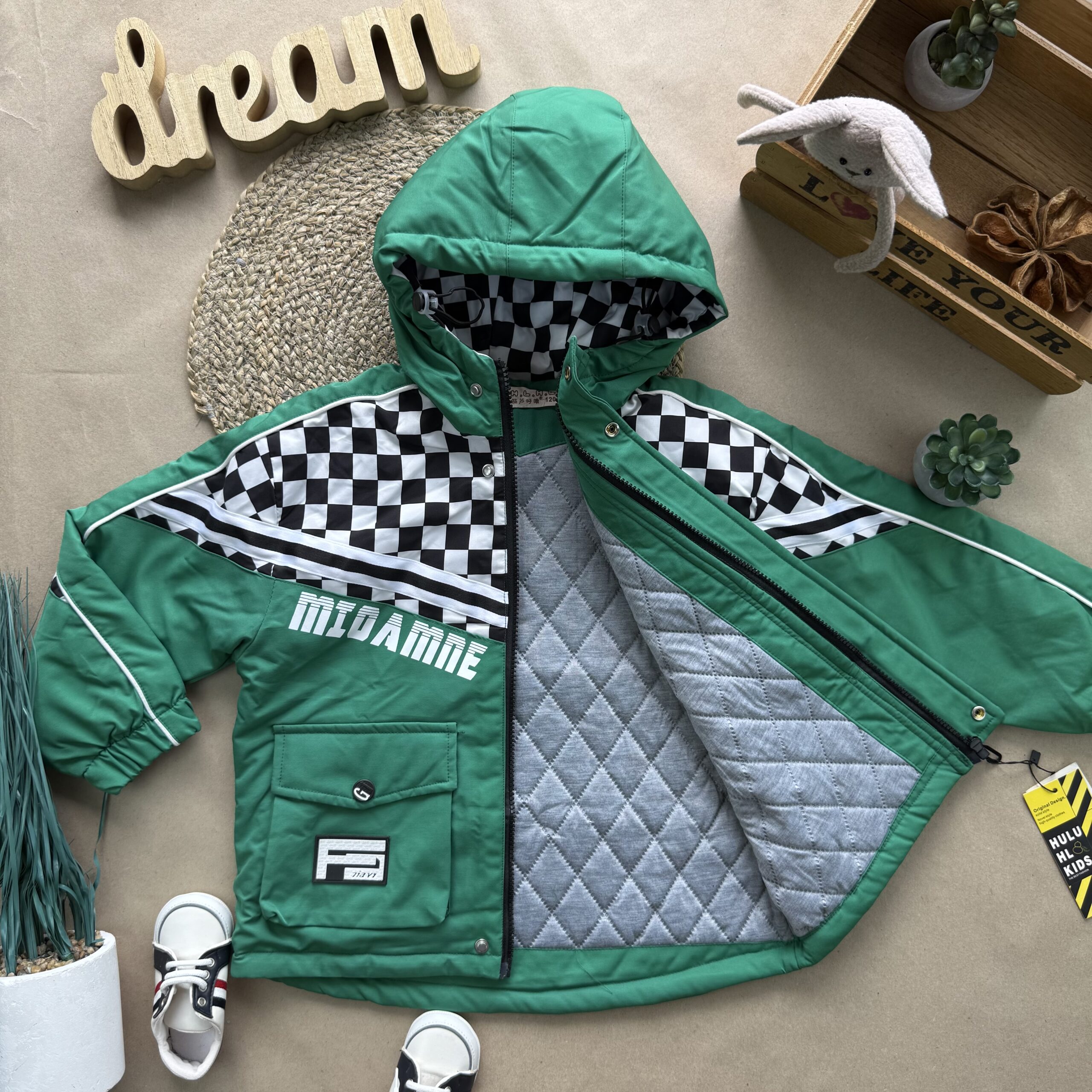 Яскрава демісезонна куртка. Вільний крій не сковує рухів, а резинка на рукавах добре захищає від вітру. Шаховий принт і яскраві деталі роблять цю модель сучасною та стильною.