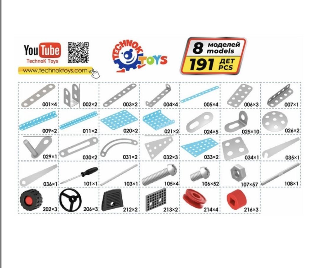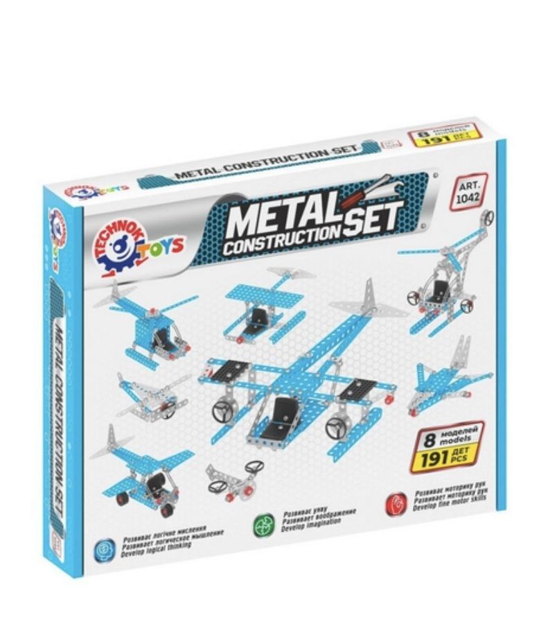 Перевага іграшки – металеві деталі різних кольорів. Характерна особливість – пластиковий пенал для зберігання конструктора в розібраному вигляді. Завдяки цьому конструктору дитина може розвивати фантазію, складаючи різні моделі, і отримувати практичні навички роботи з металевими виробами, що стане в нагоді у дорослому житті. Інструкція металевого конструктора «Повітряний транспорт ТехноК» містить опис 8 моделей: літак, вертоліт, винищувач, аероплан, гідроплан, вертоліт (модель№1) літак (модель №2), і т.д., загалом все, на що здатна фантазія вашої дитини.