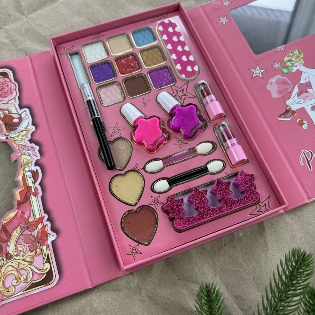 Набір косметики: тіні, пудра, помада, лак, пилочка, аплікатор, педикюр, підводка.