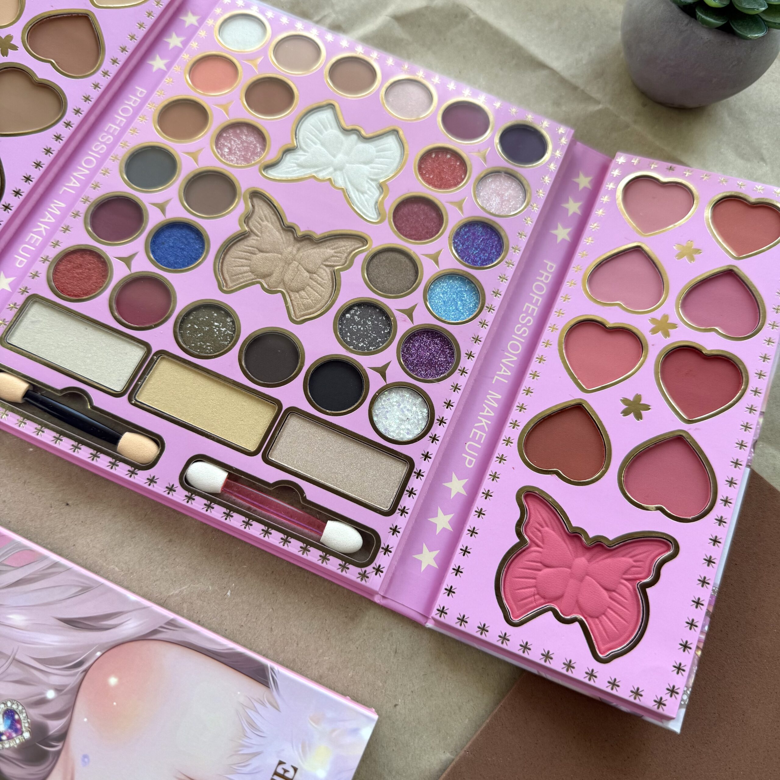 Палетка тіней з глітером, матові, хайлайтер та контуринг, аплікатори.