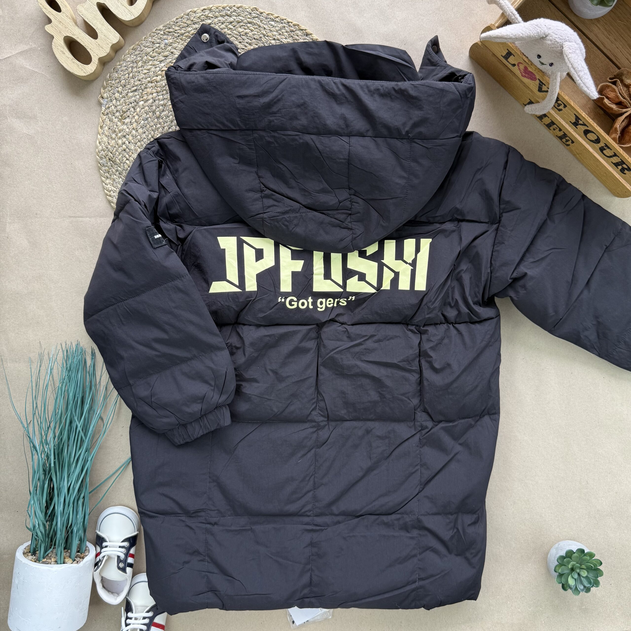 Тепле та стильне пальто на холодну осінь / еврозиму. Якість- люкс! Верх- болонь, підклад- нейлон, в рукавах- фіксатори резинки. З капюшоном та кишенями, застібається на блискавку з планкою. Наповнювач – синтепух.  Фабричний Китай. Принт спереду та ззаду.