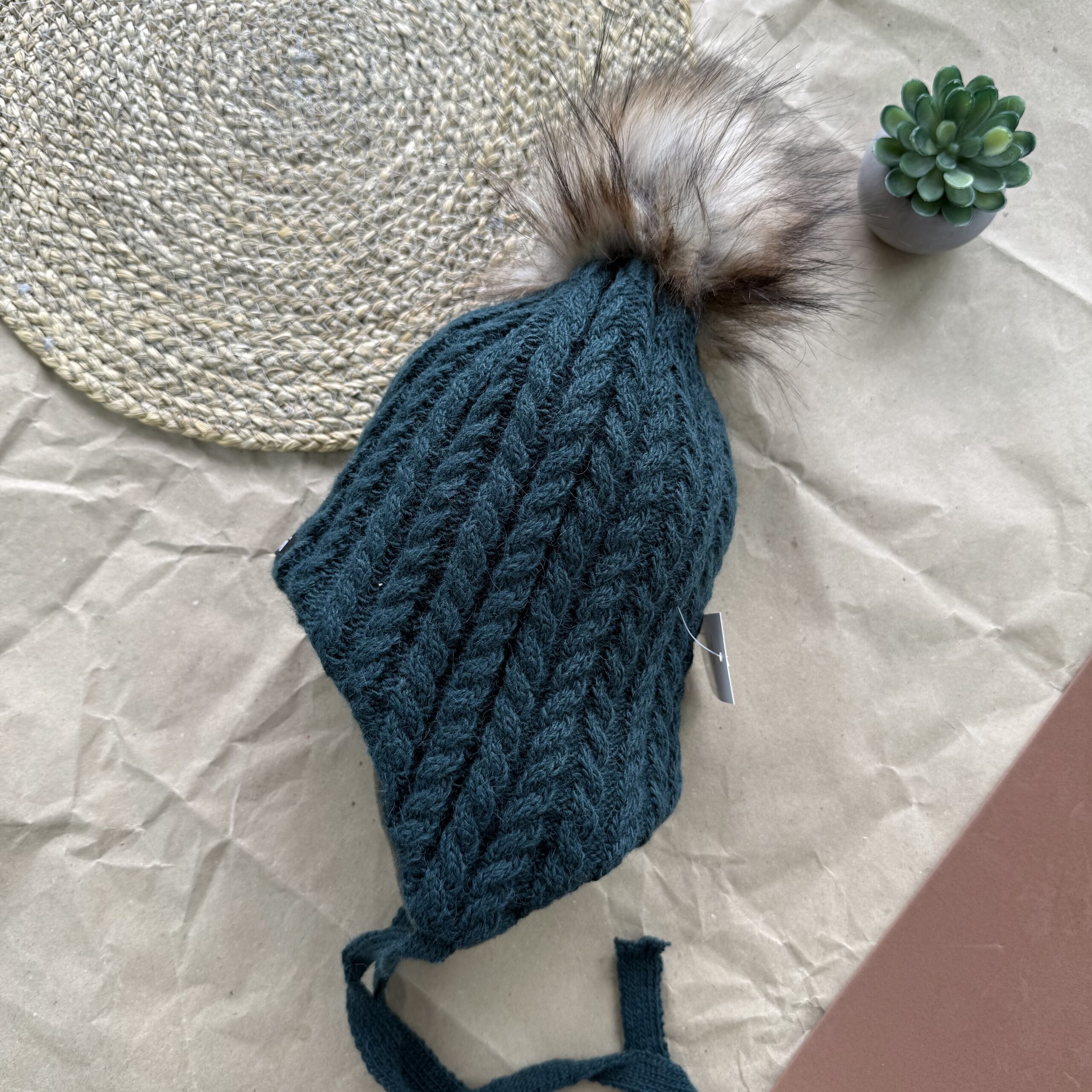 Тепла зимова шапка із крупною фактурною в’язкою та бубоном. Всередині утеплена флісом.