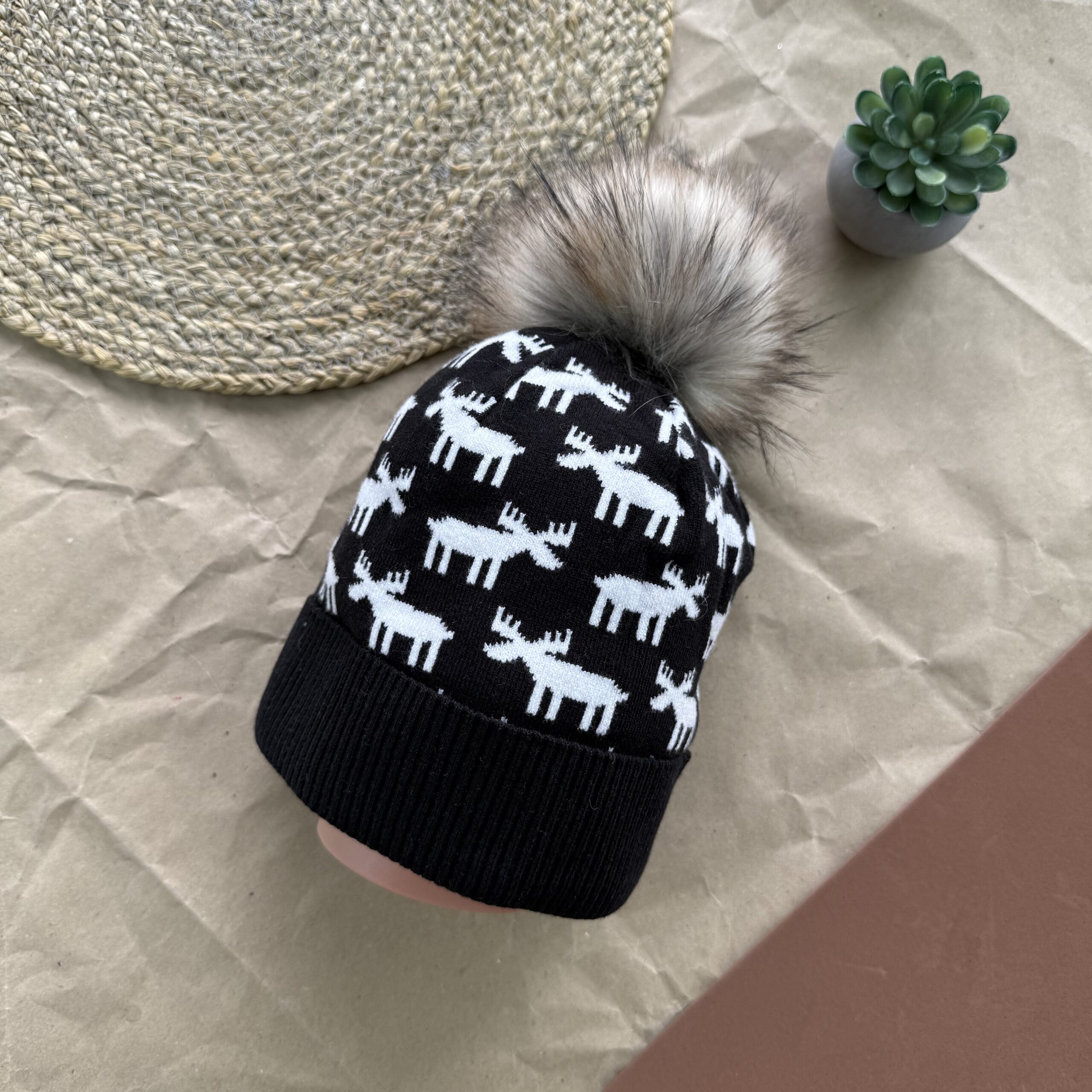 Тепла зимова шапка із принтом та бубоном. Всередині утеплена флісом.