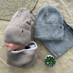 Набір зимова шапка та хомут виробництва Україна! Якість люкс! Крупна та стильна вʼязка! Шапка на завʼязках, вушка прикриті.