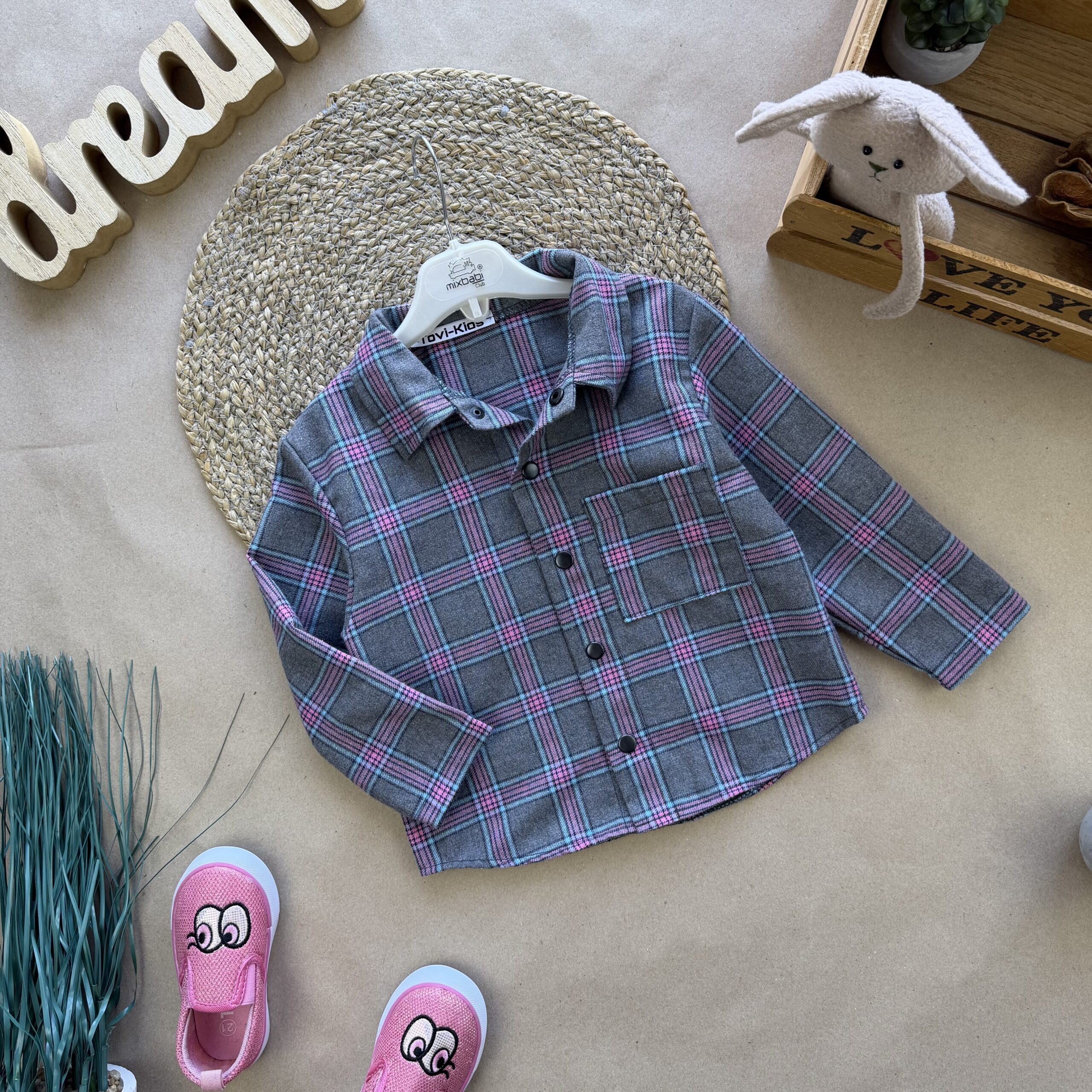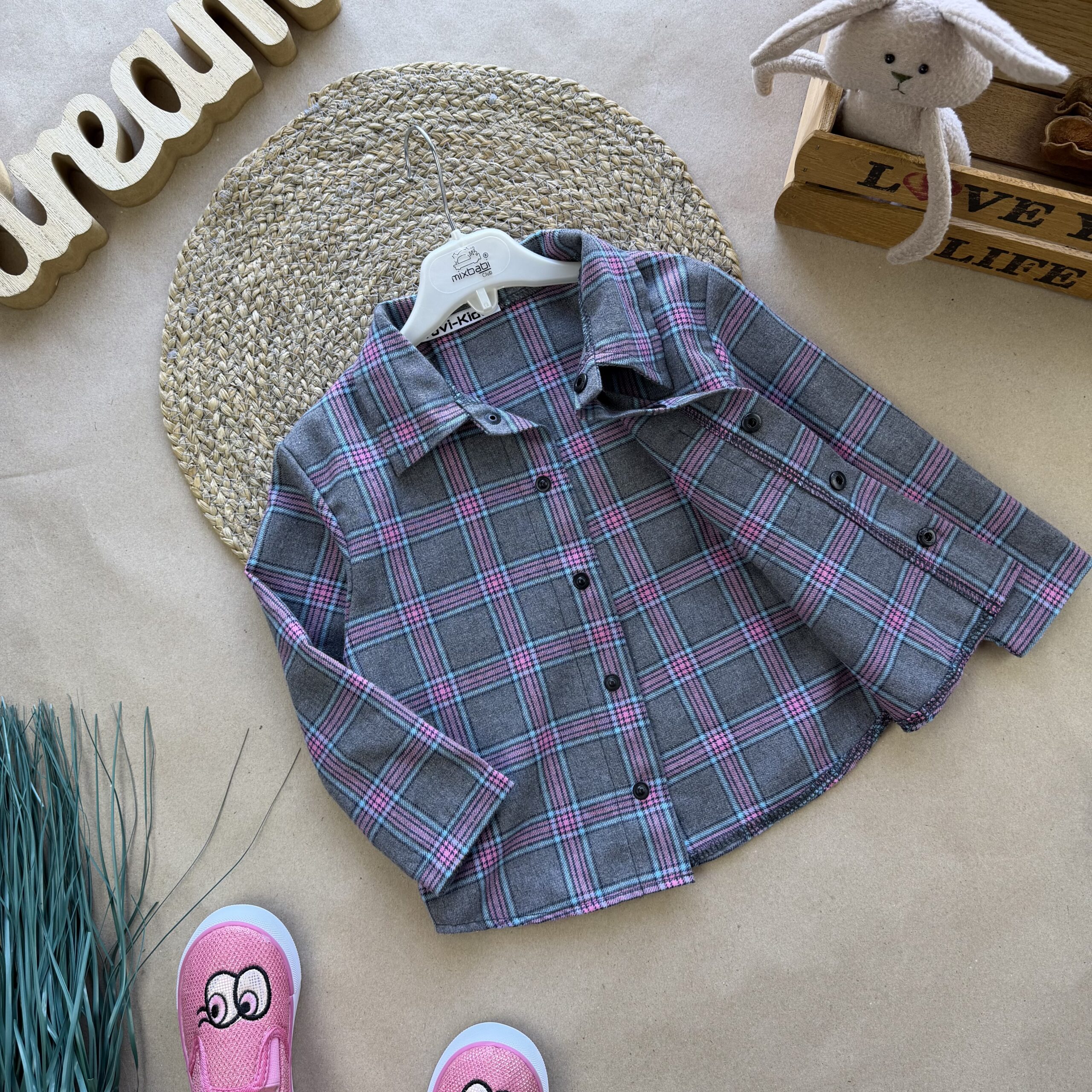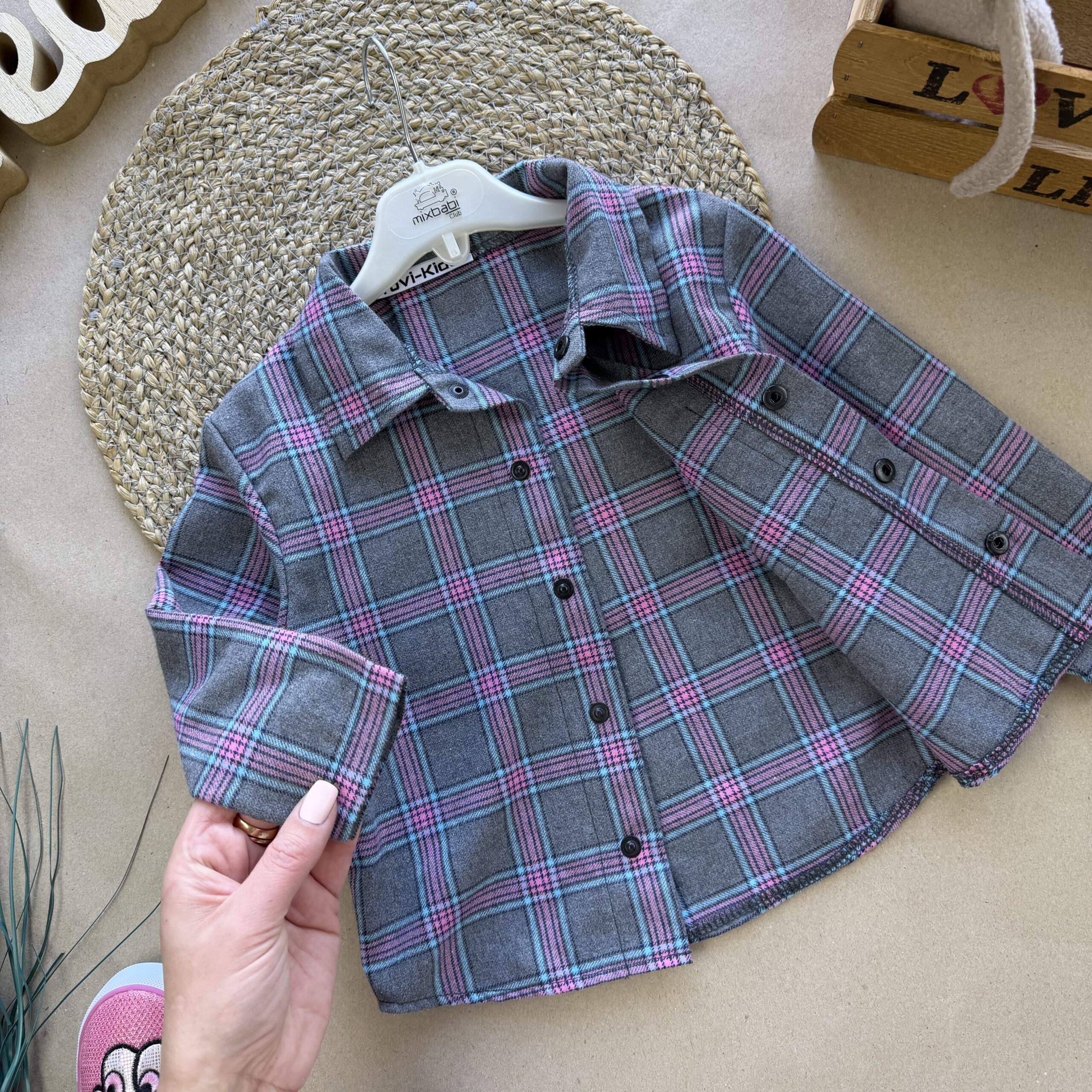 Сорочка фланель сіро рожева