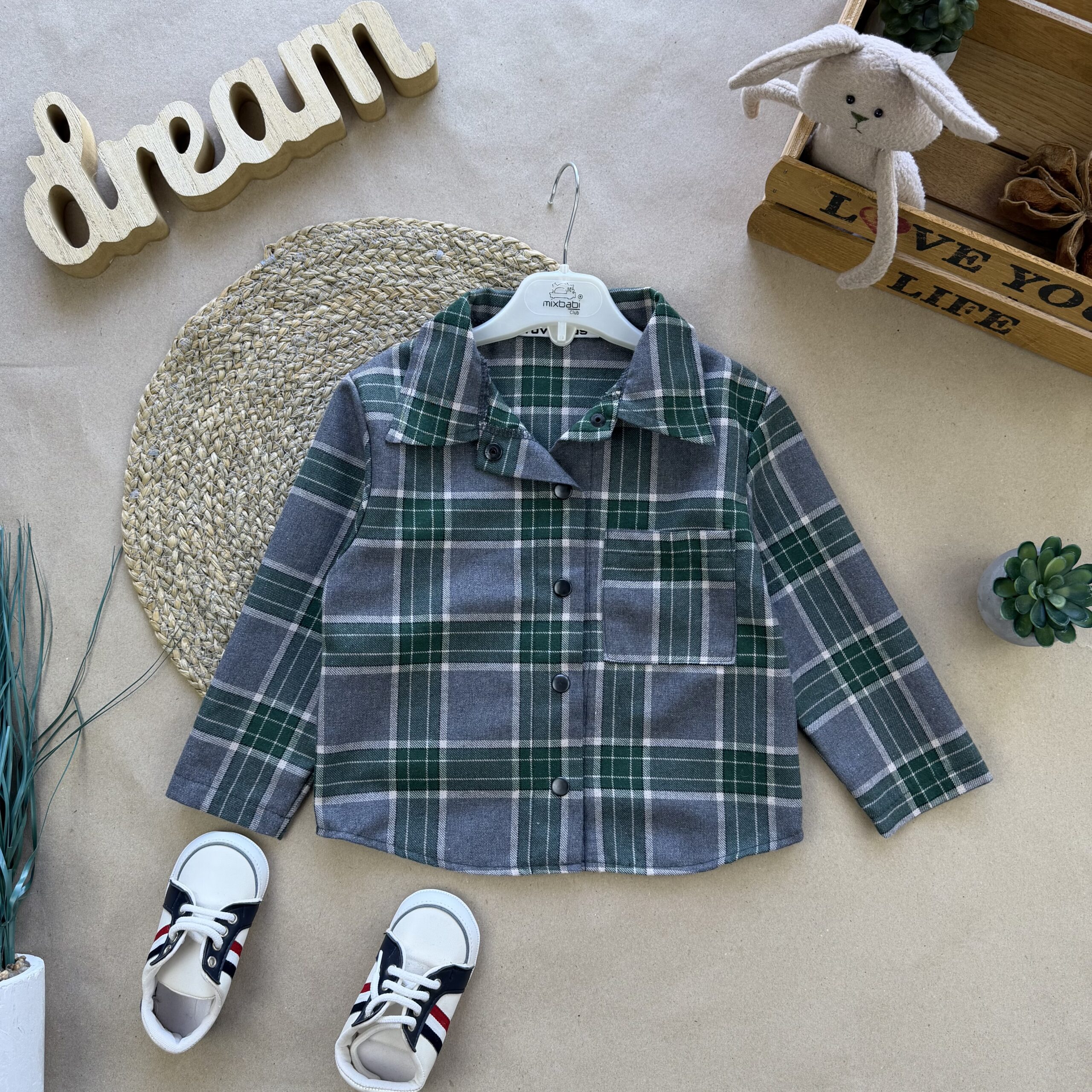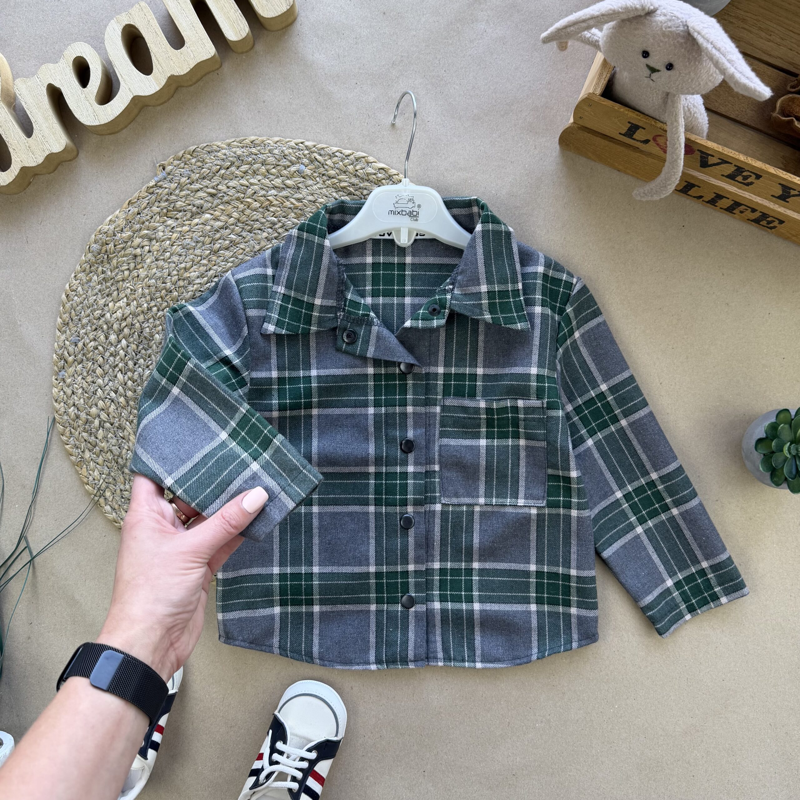 Сорочка фланель сіро зелена