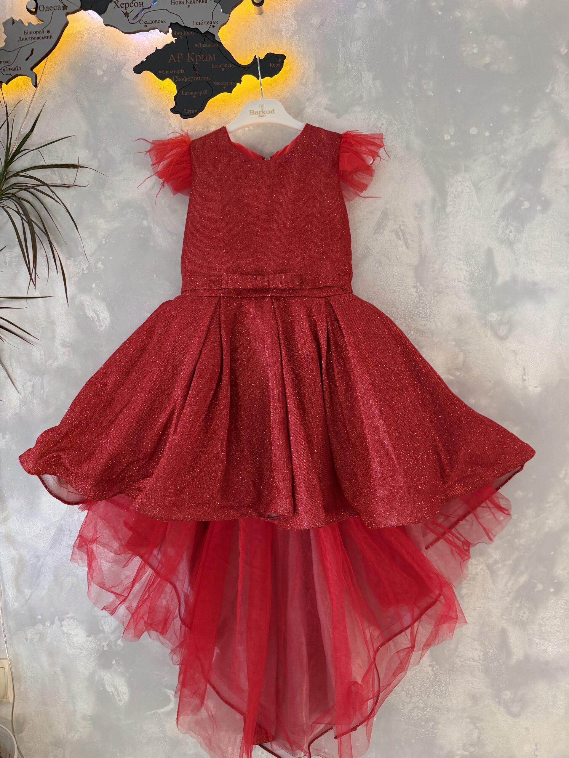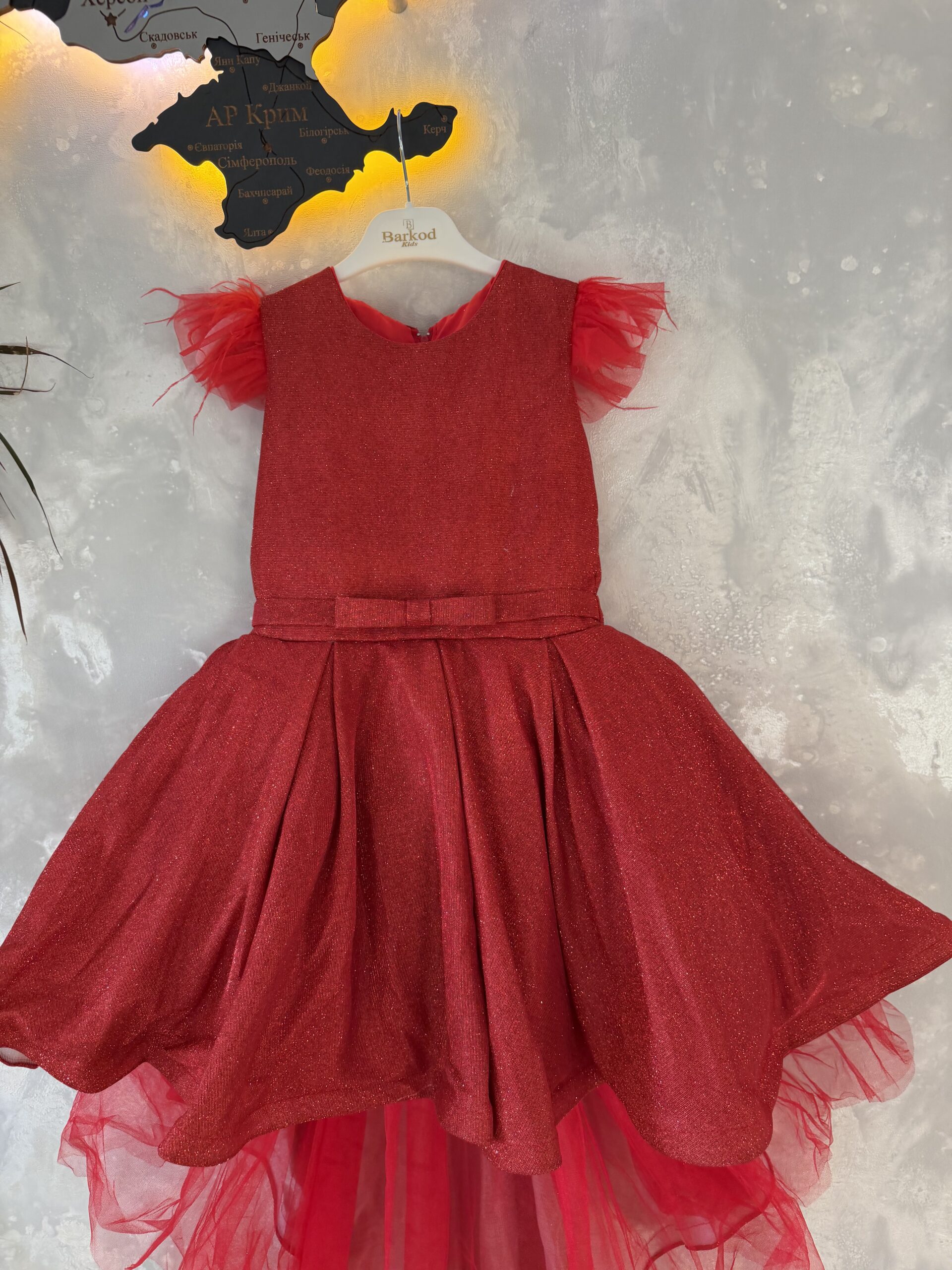 Сукня пишна з шлейфом глітер червона