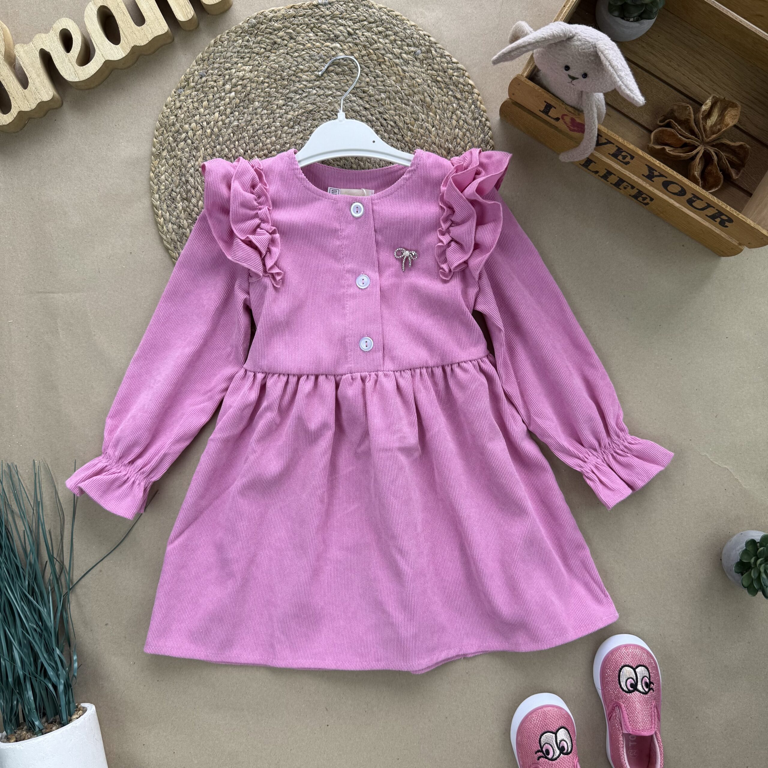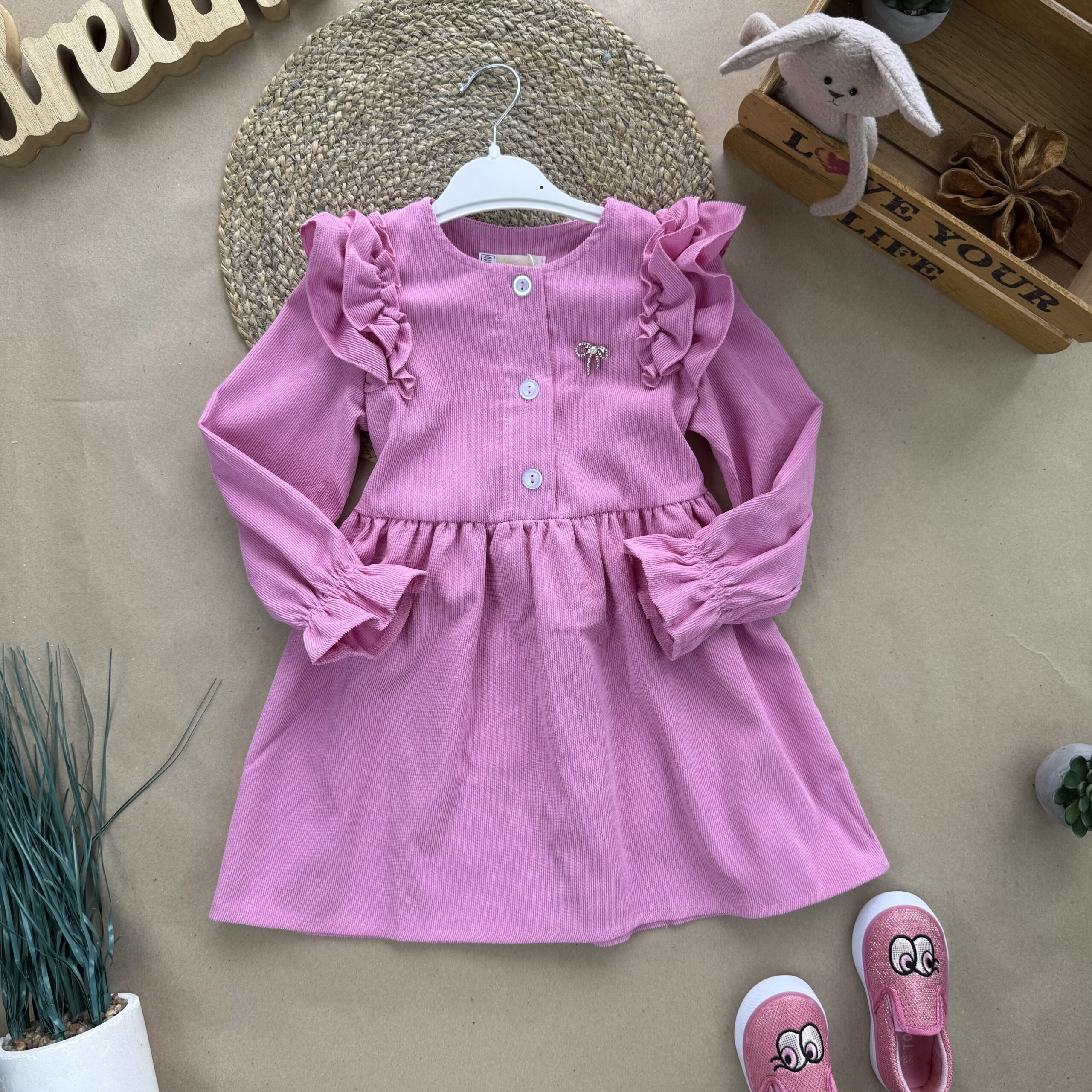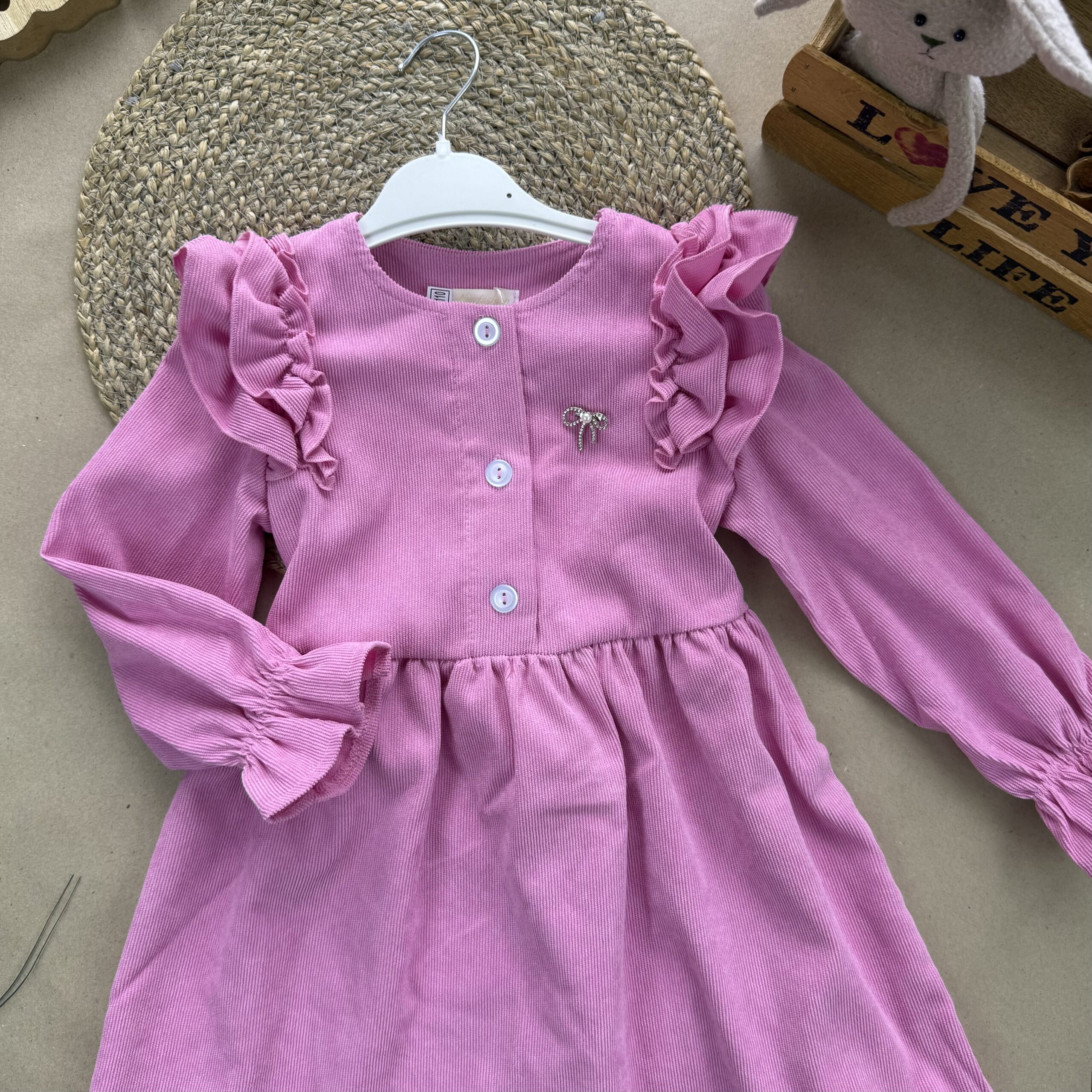 Вельвет рубчик відмінної якості. Спереду прикрашено рюшами. Гарно тримає форму.
