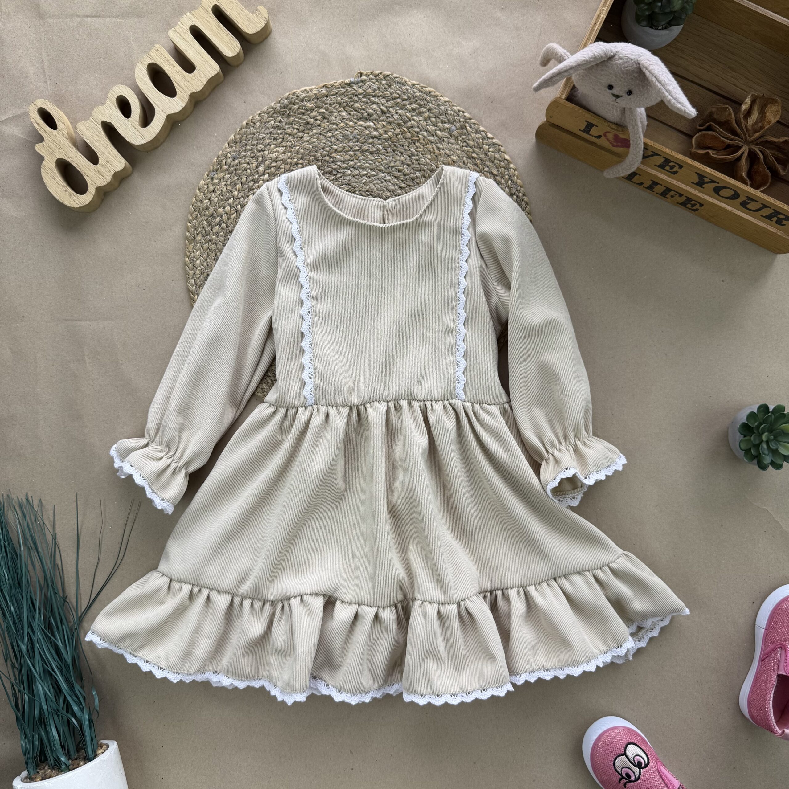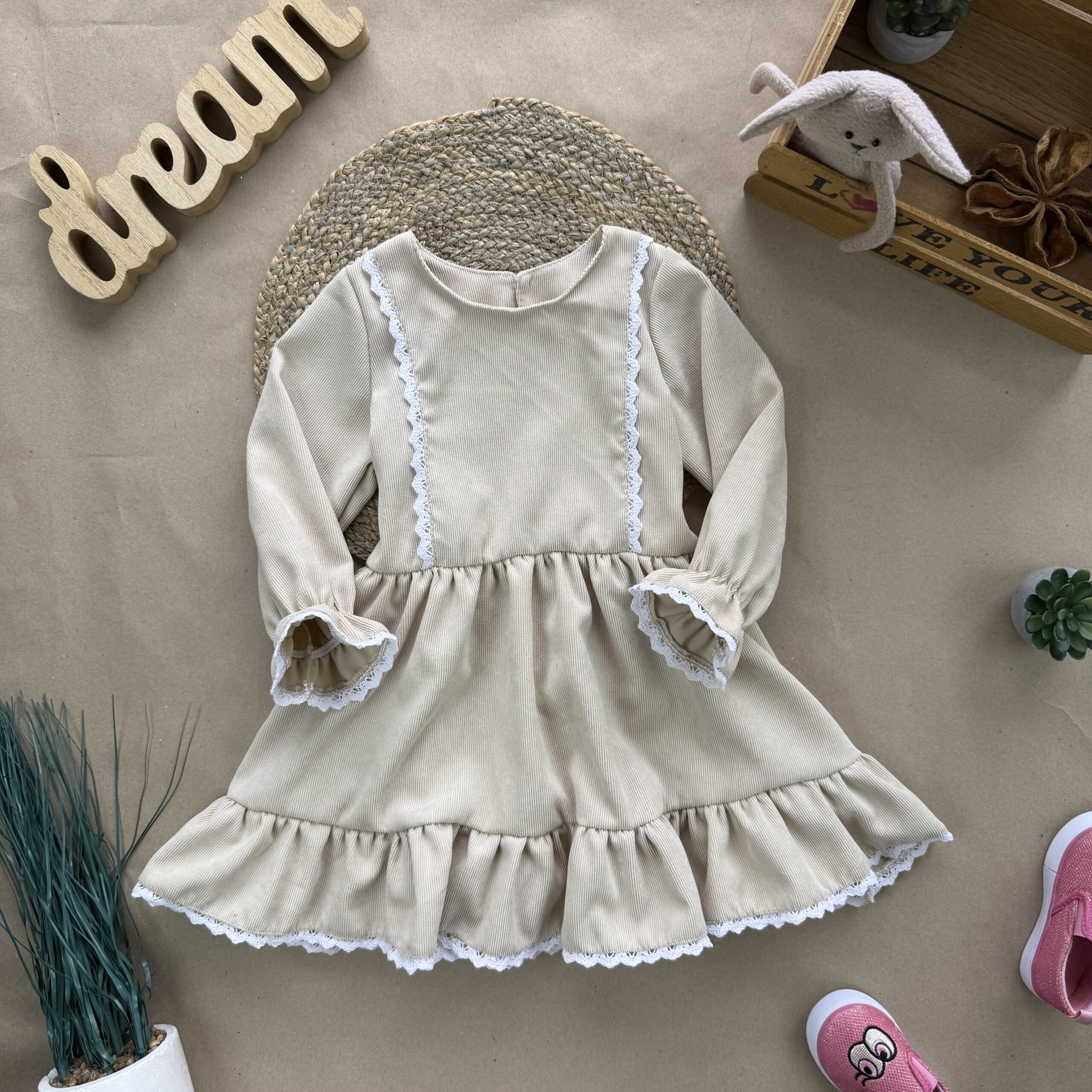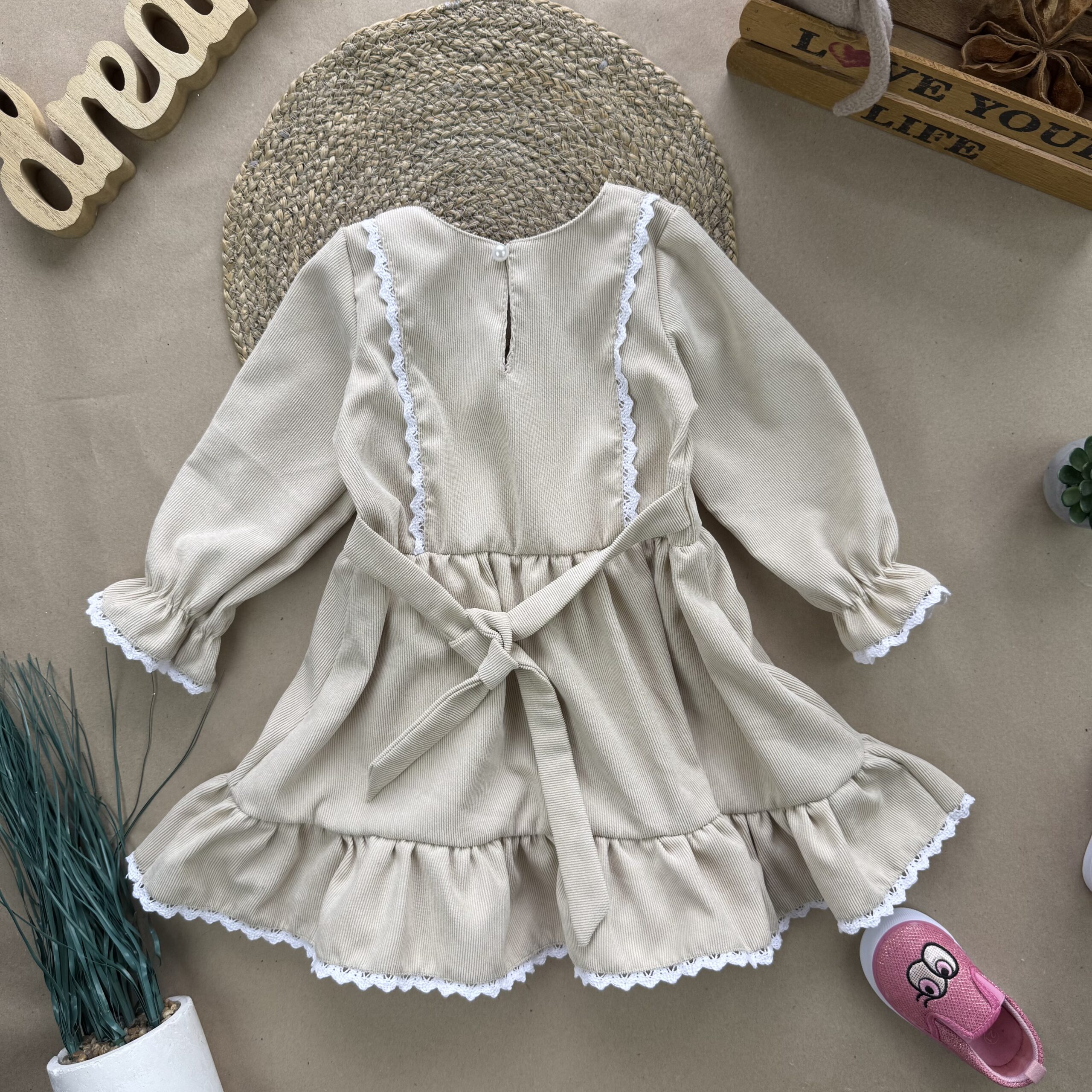 Ніжна та стильна сукня з вельвету. Вельвет рубчик відмінної якості. Прикрашено дорогим ажурним мереживом. Гарно тримає форму. Ззаду – застібається на ґудзик, додатково є пояс.