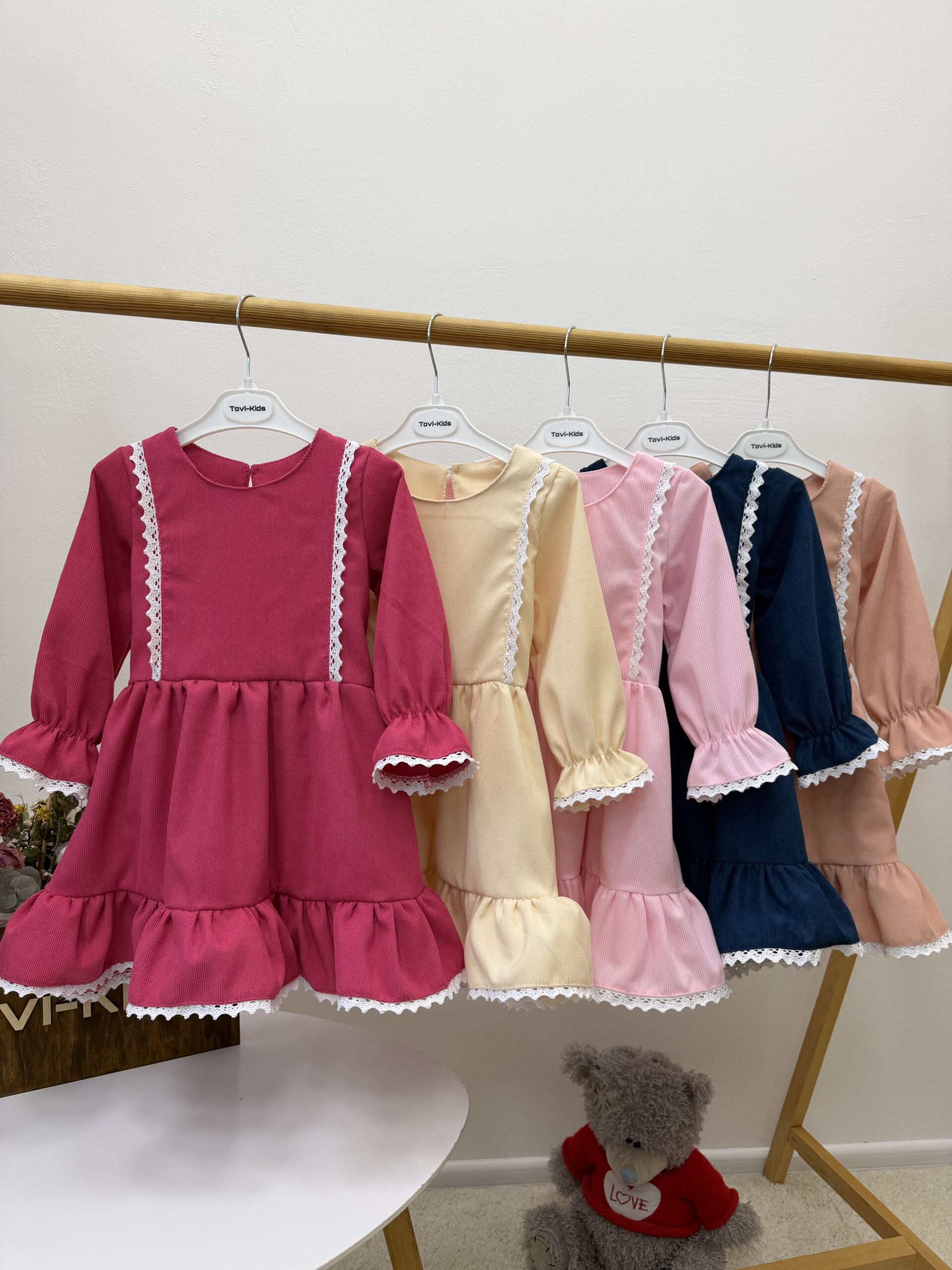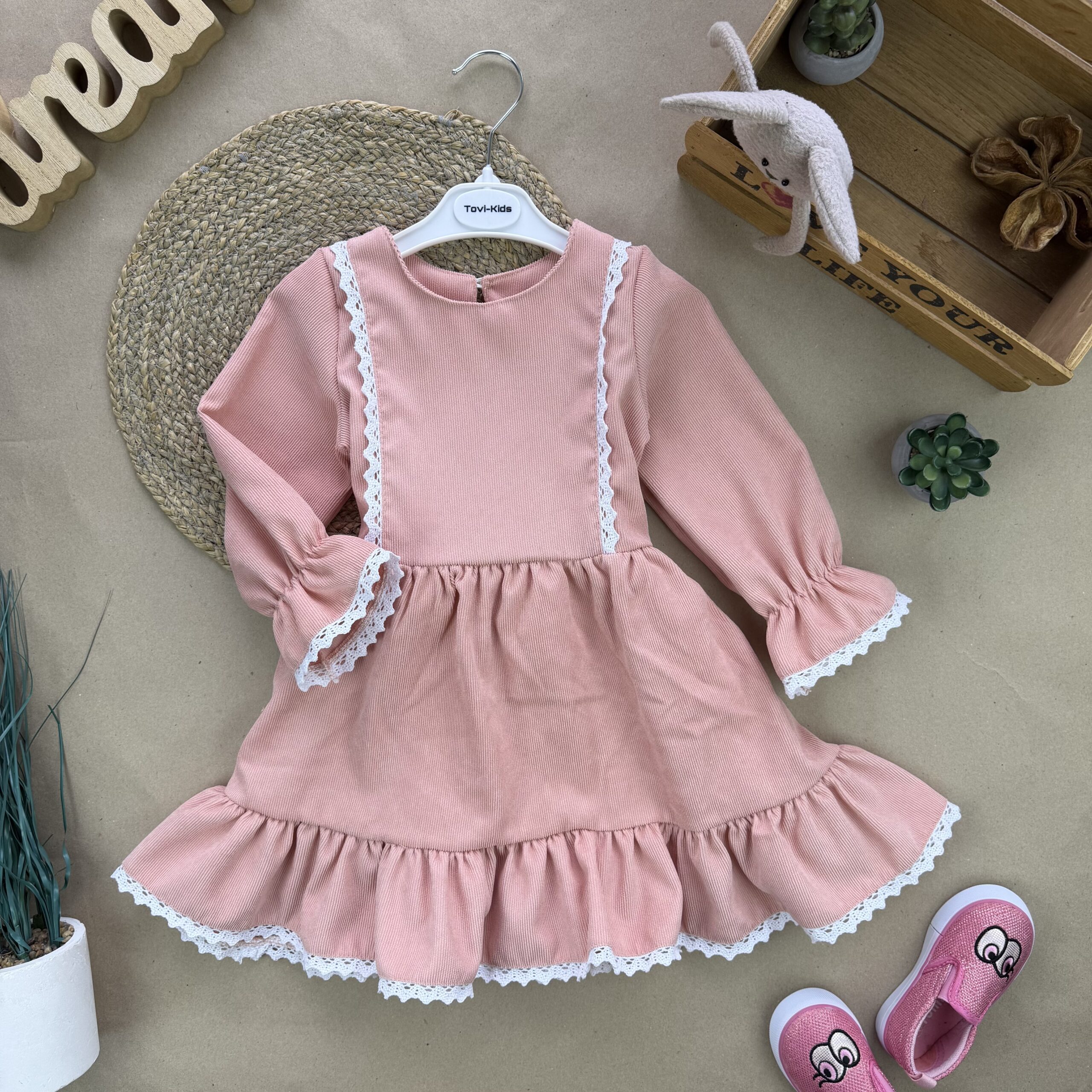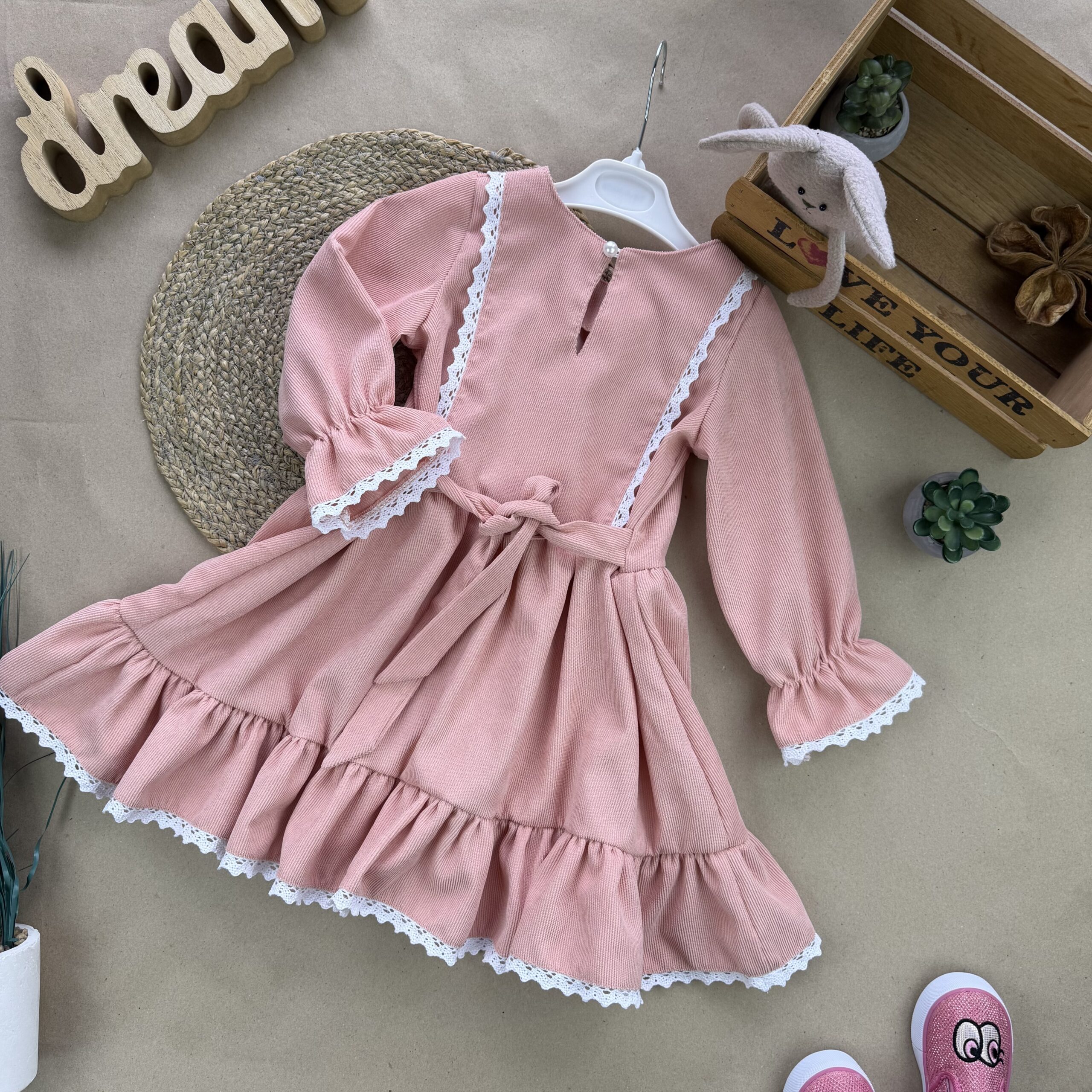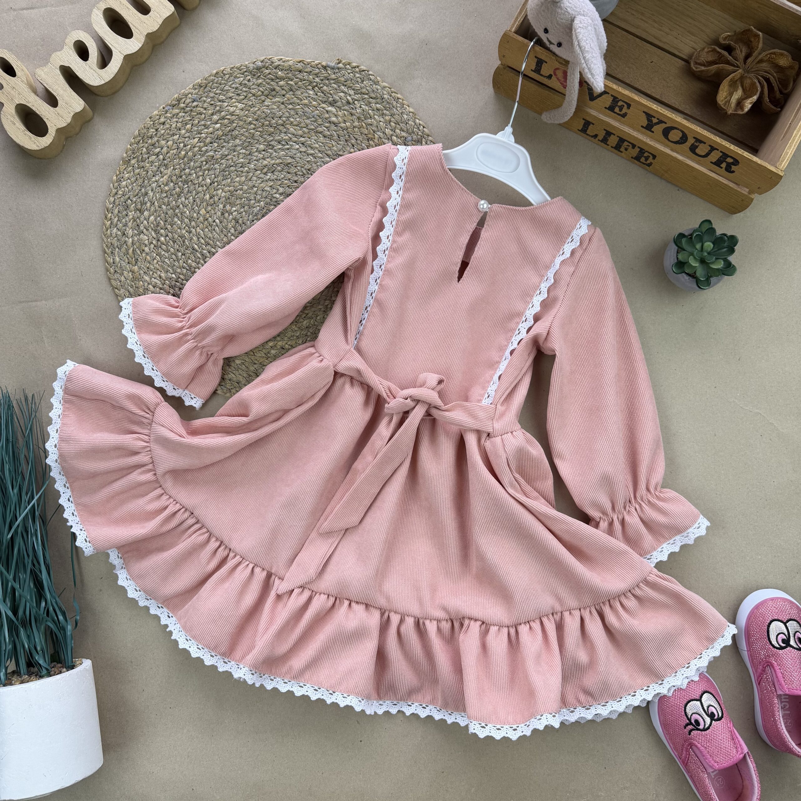 Ніжна та стильна сукня з вельвету. Вельвет рубчик відмінної якості. Прикрашено дорогим ажурним мереживом. Гарно тримає форму. Ззаду - застібається на ґудзик, додатково є пояс.