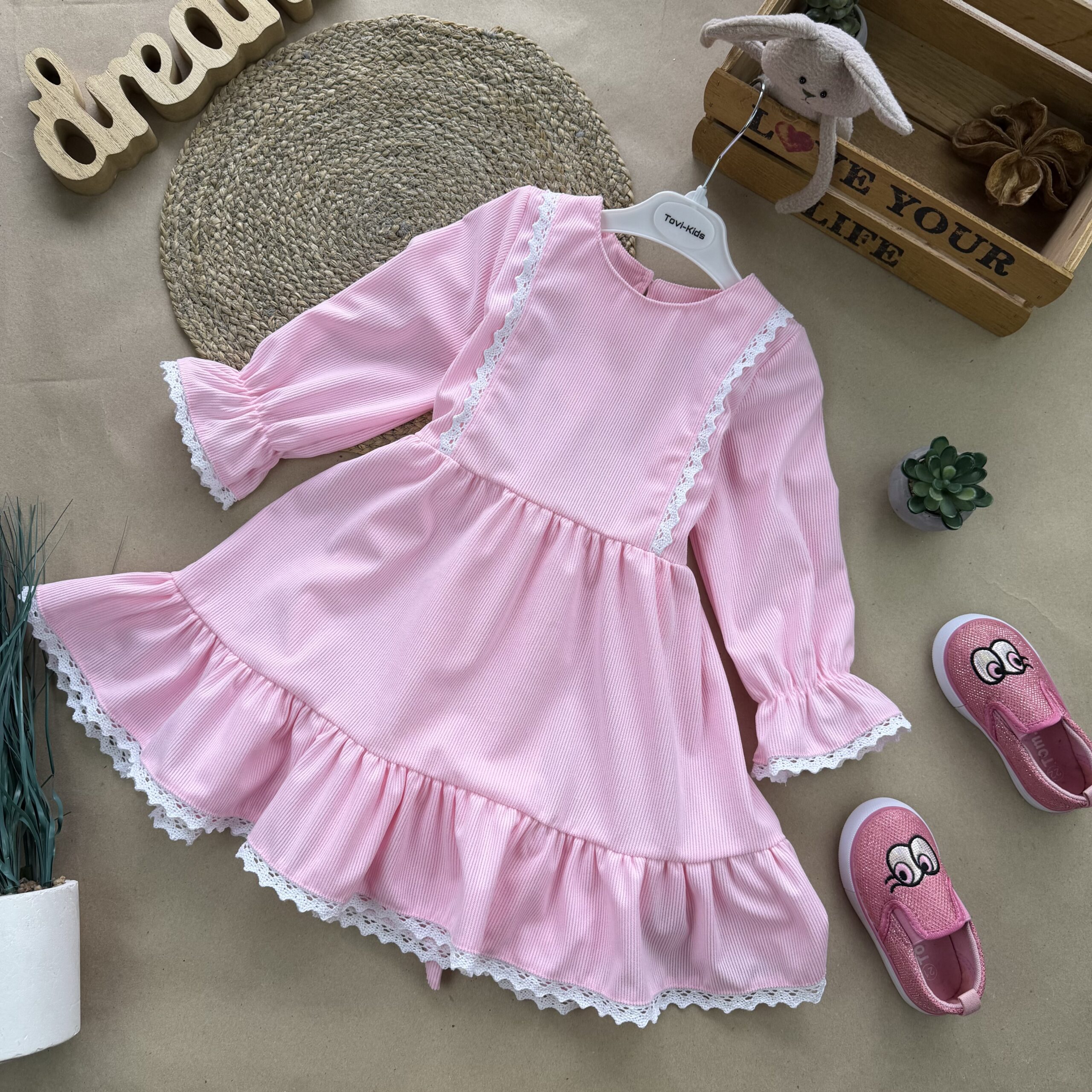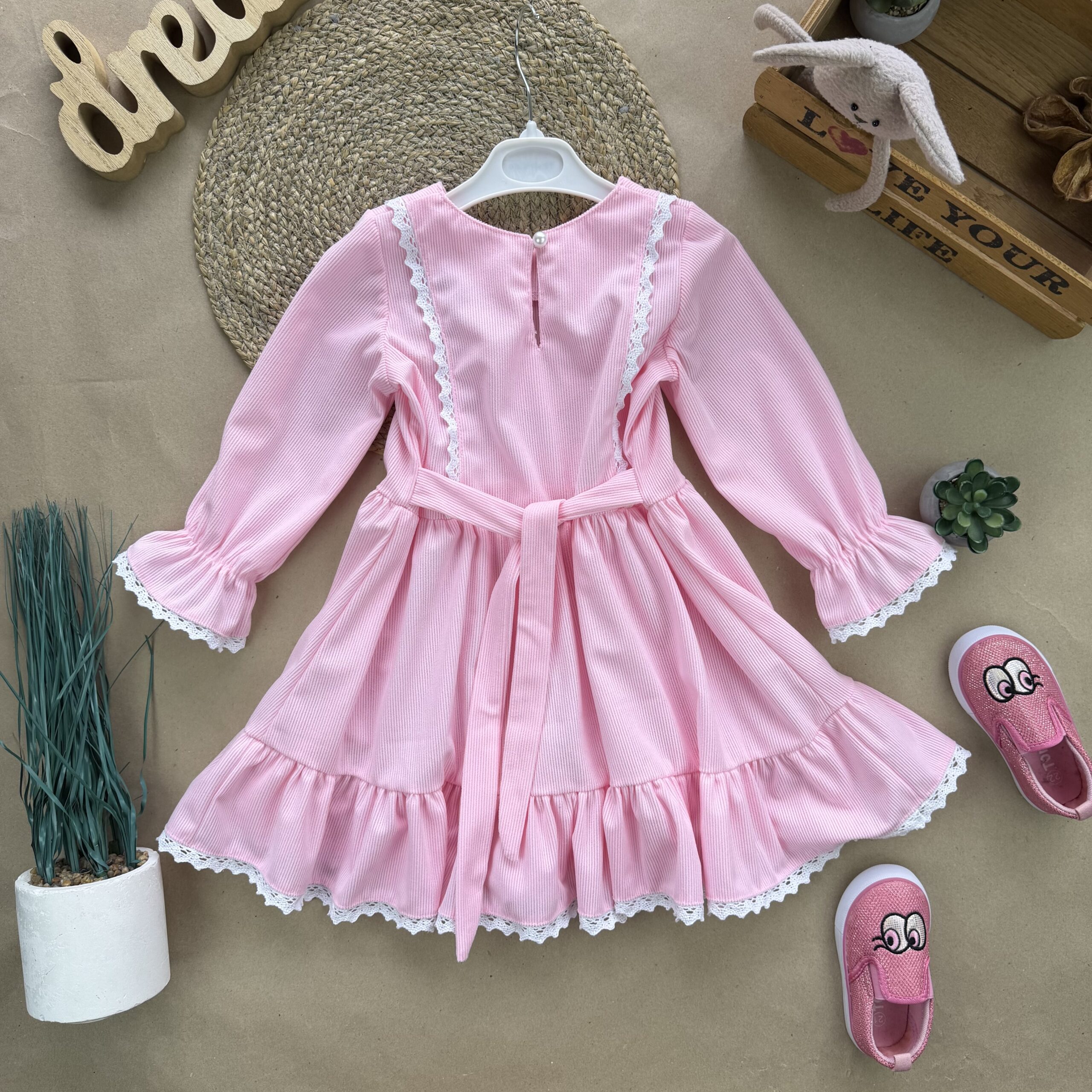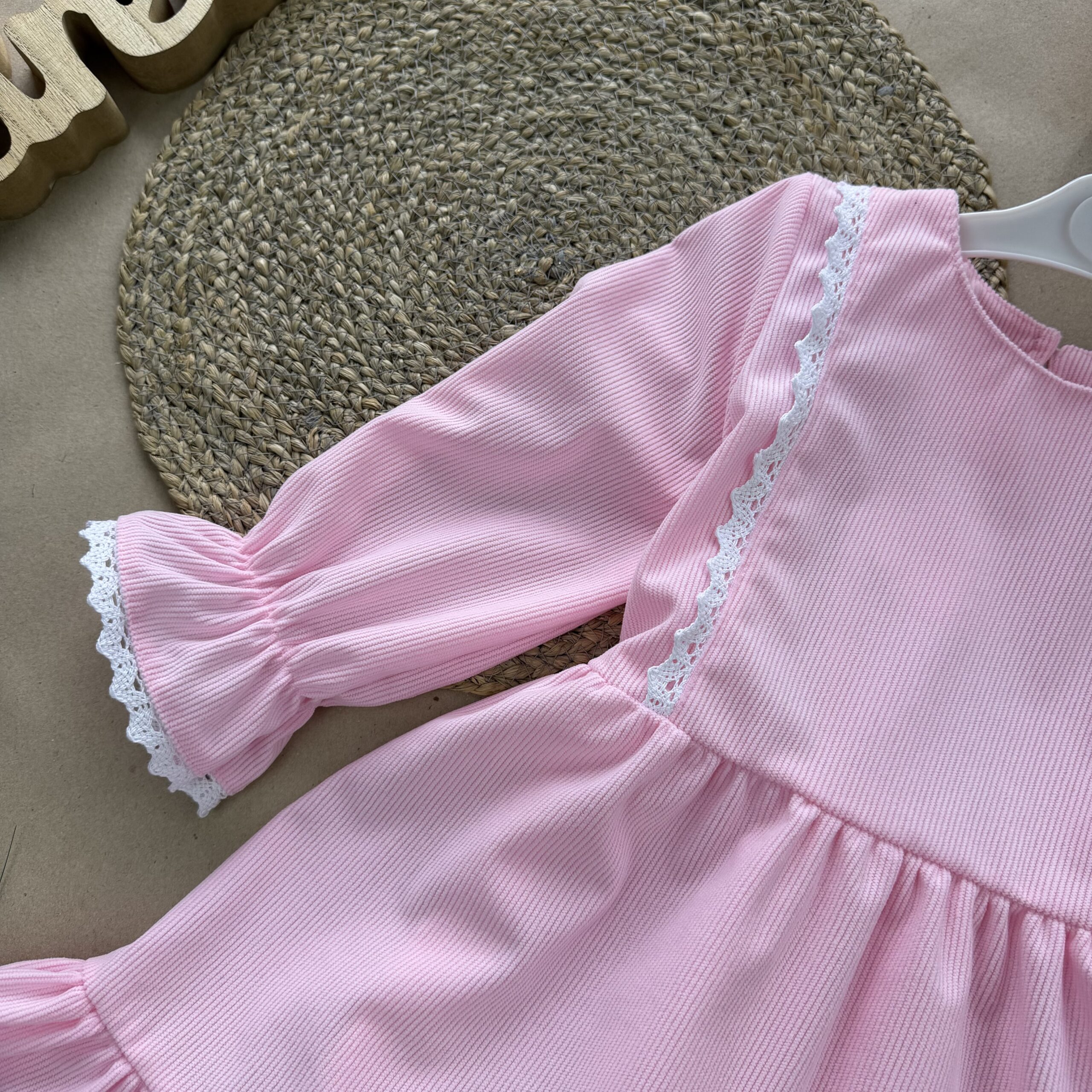Ніжна та стильна сукня з вельвету. Вельвет рубчик відмінної якості. Прикрашено дорогим ажурним мереживом. Гарно тримає форму. Ззаду - застібається на ґудзик, додатково є пояс.