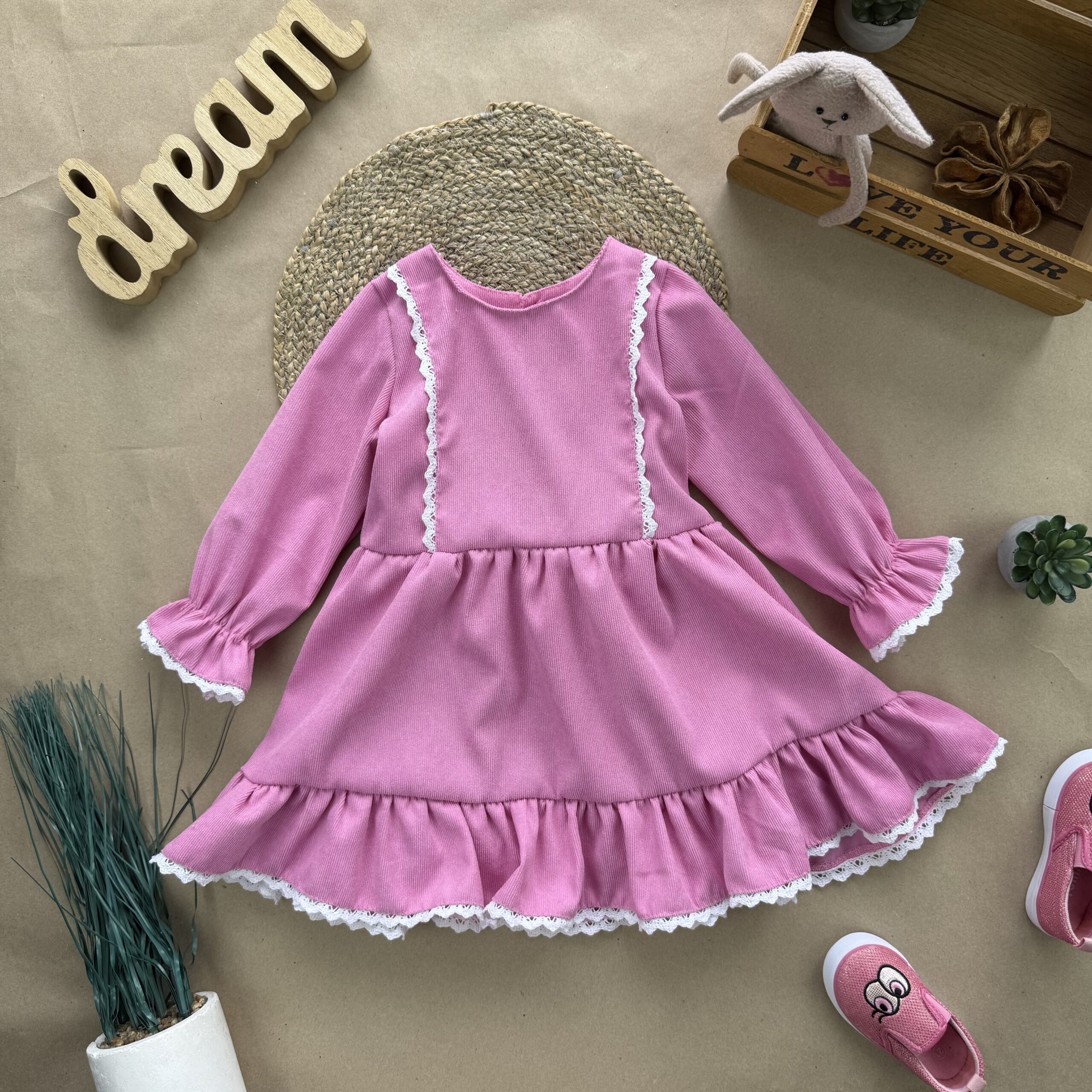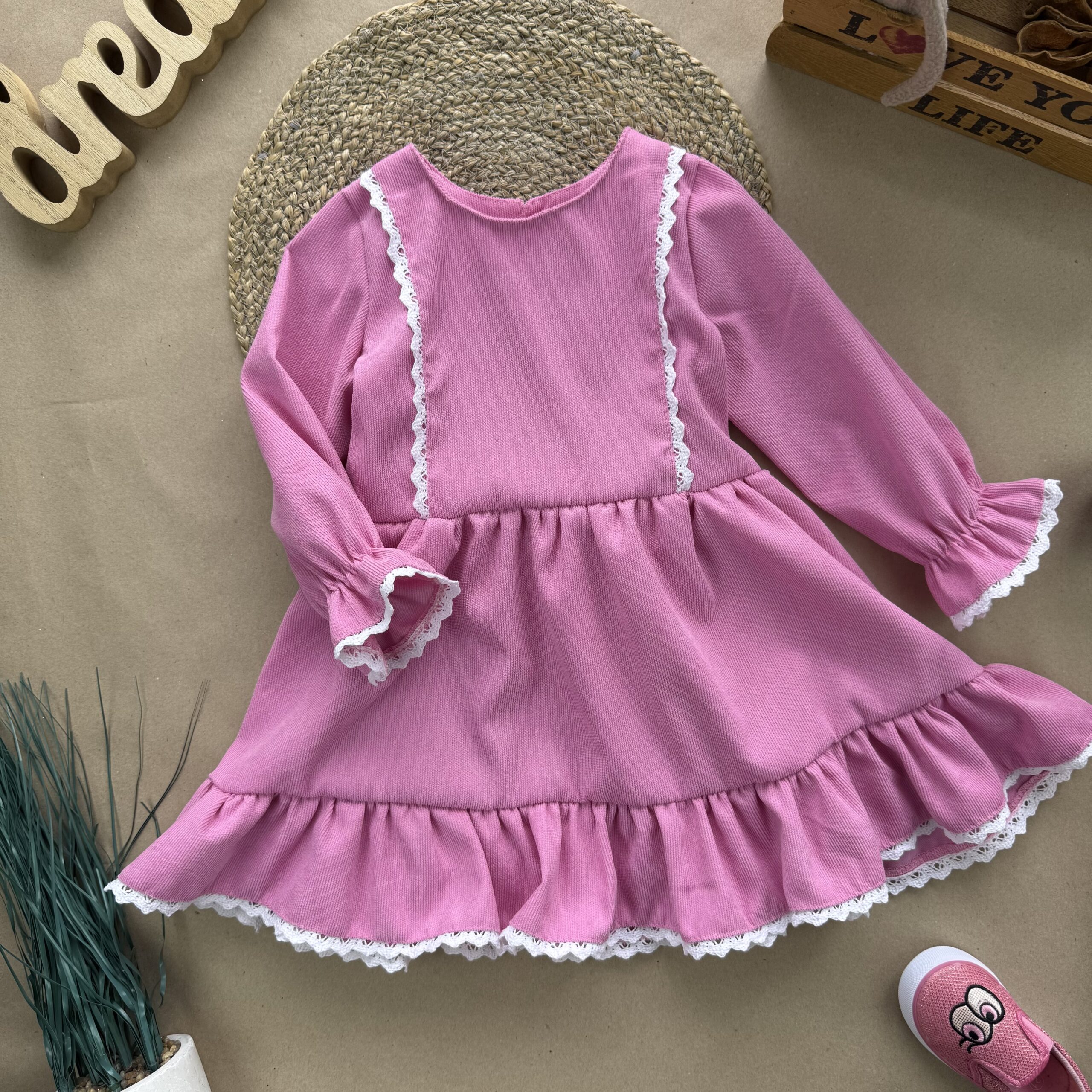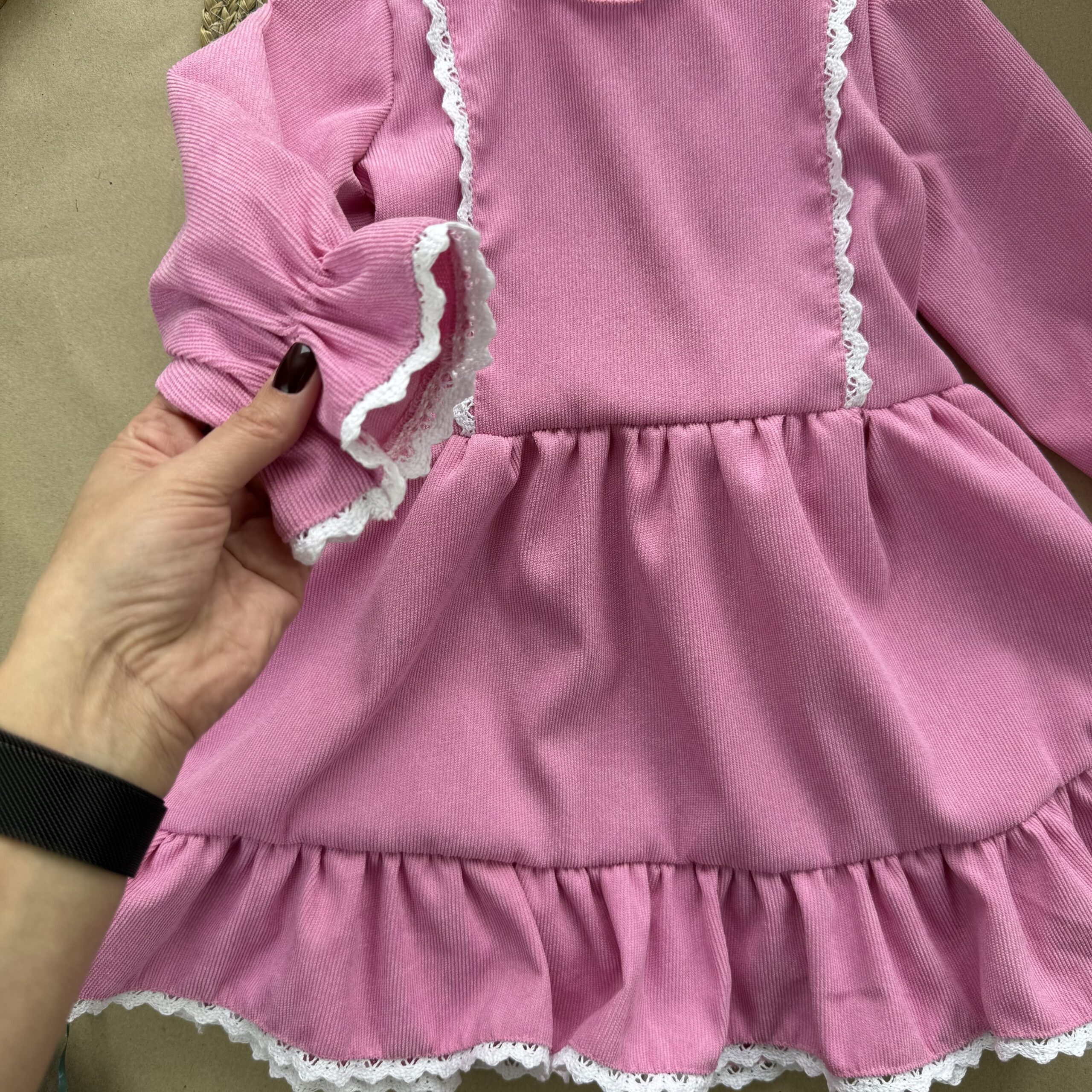 Ніжна та стильна сукня з вельвету. Вельвет рубчик відмінної якості. Прикрашено дорогим ажурним мереживом. Гарно тримає форму. Ззаду – застібається на ґудзик, додатково є пояс.
