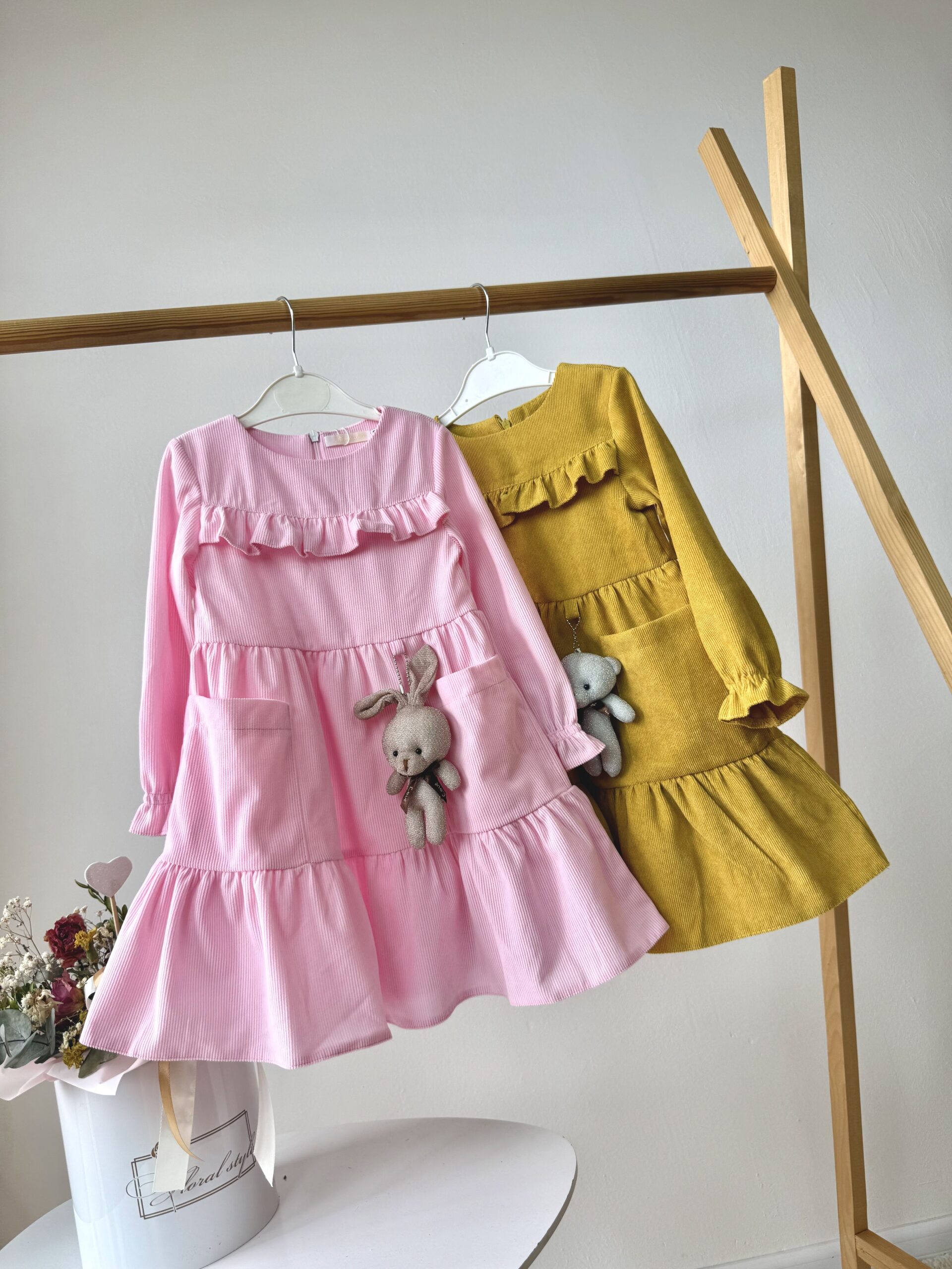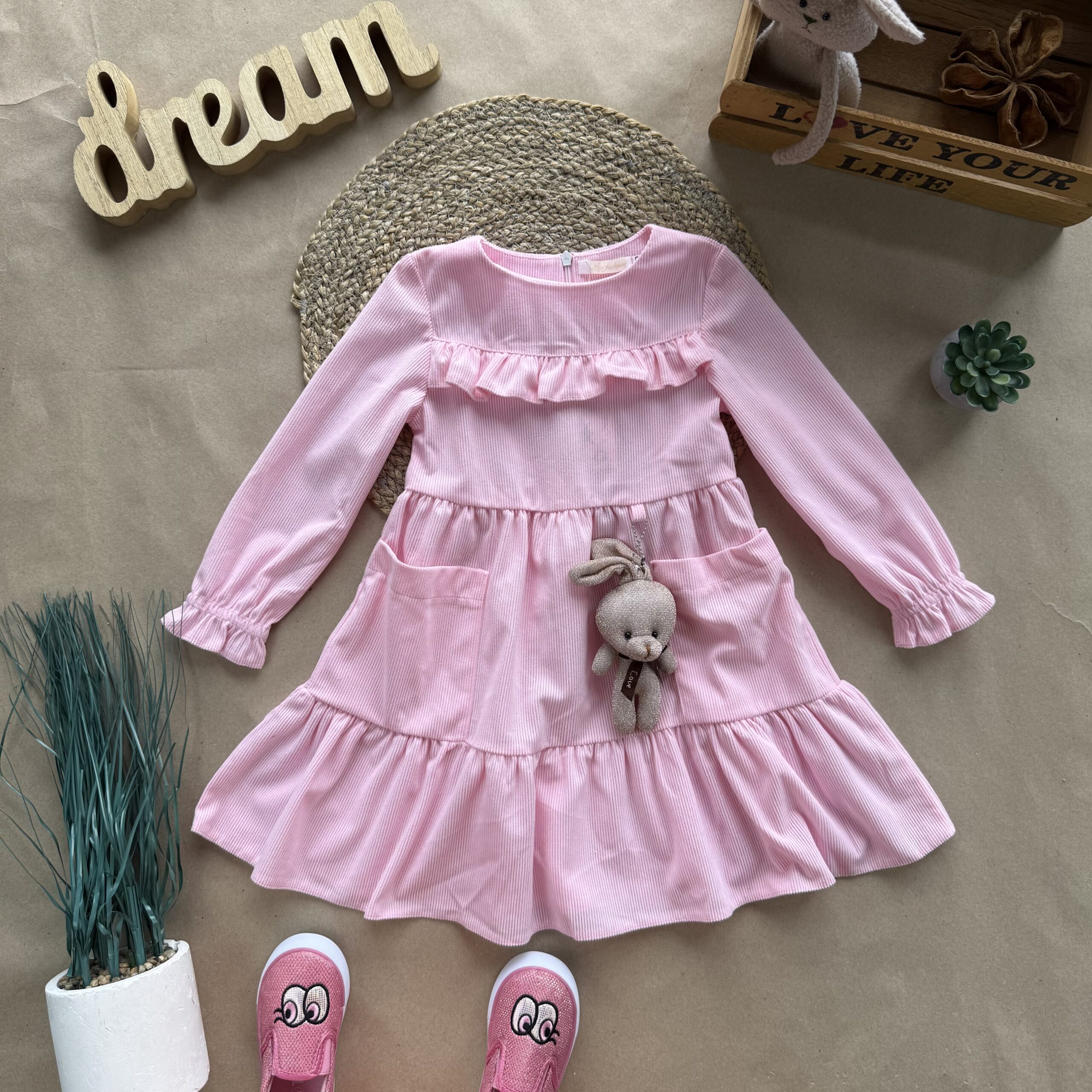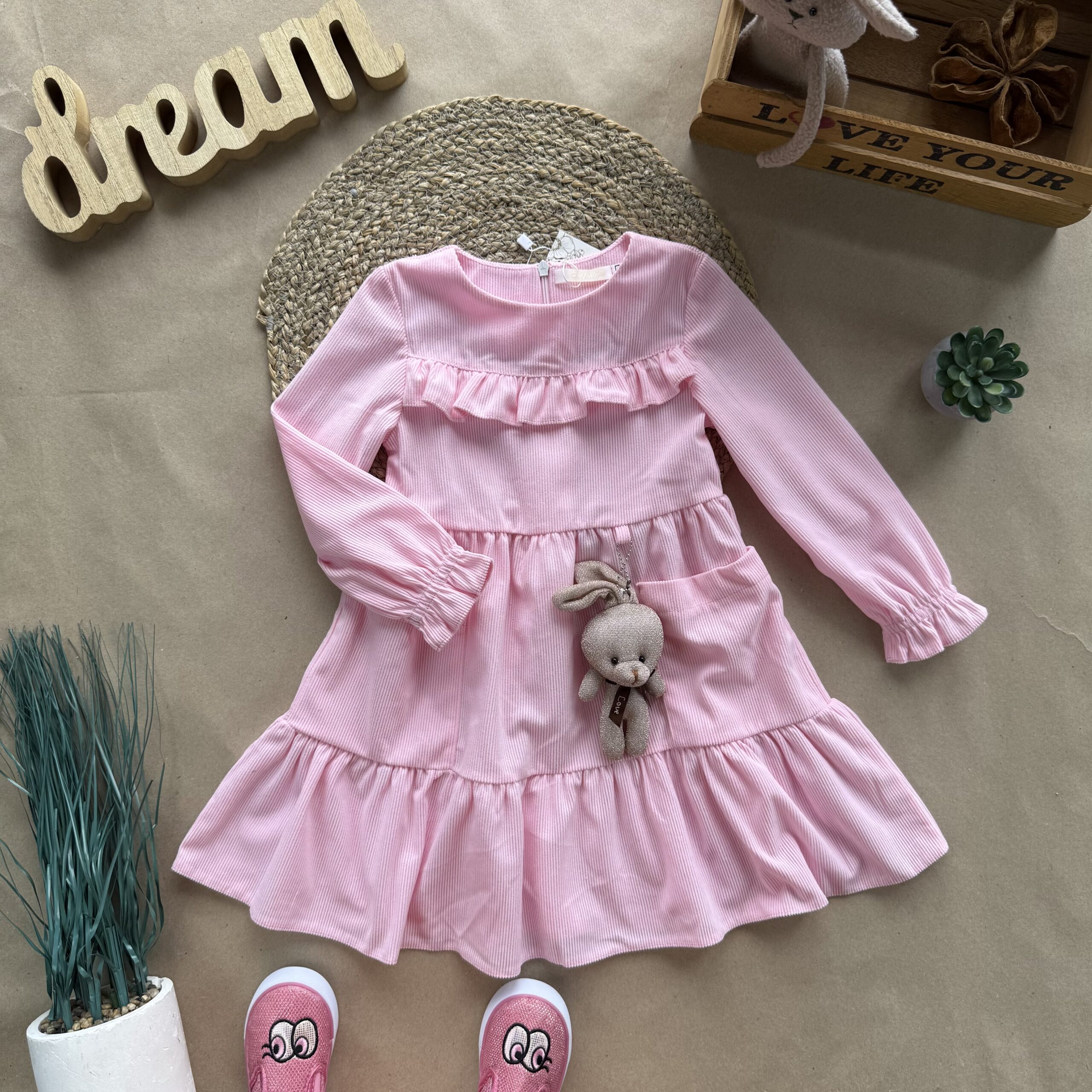 Сукня вельвет з іграшкою рожева