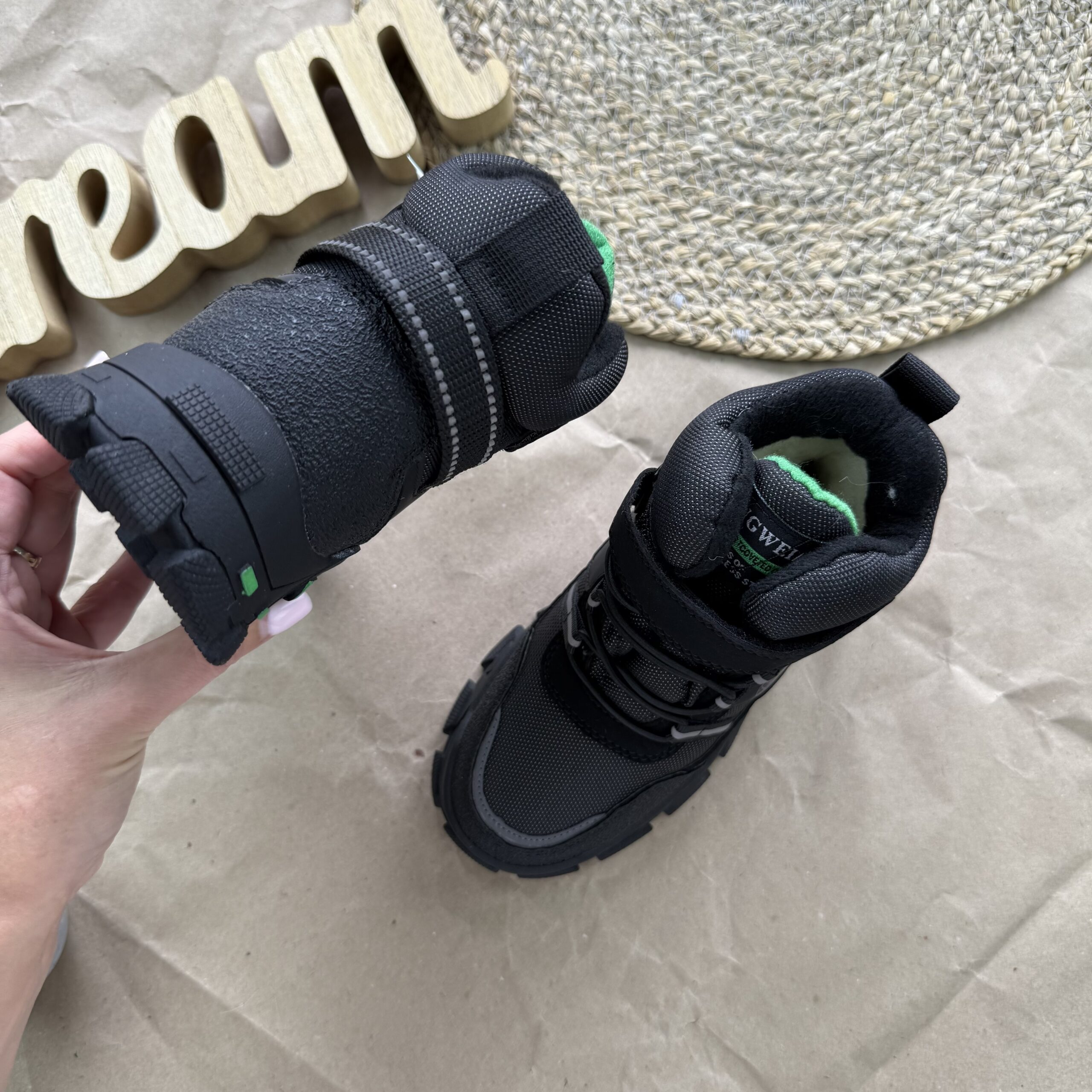 Зимові термочоботи з захистом від збою. Верх – екошкіра високої якості, всередині – утеплені хутром – овчина. Устілка – овчина. Застібка – липучка та шнурівка. Не промокаюють, підошва не промерзає.