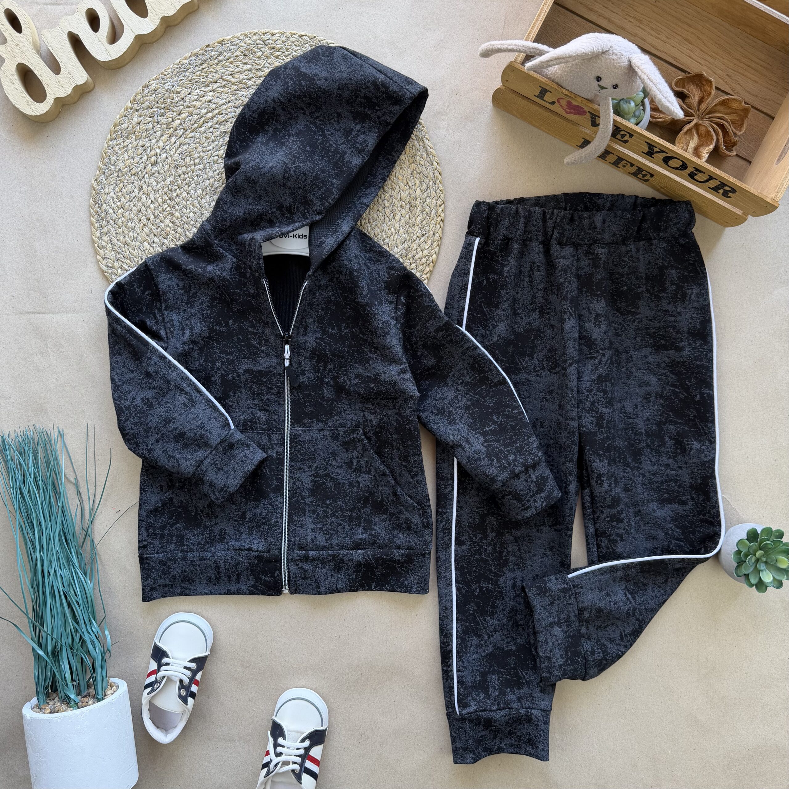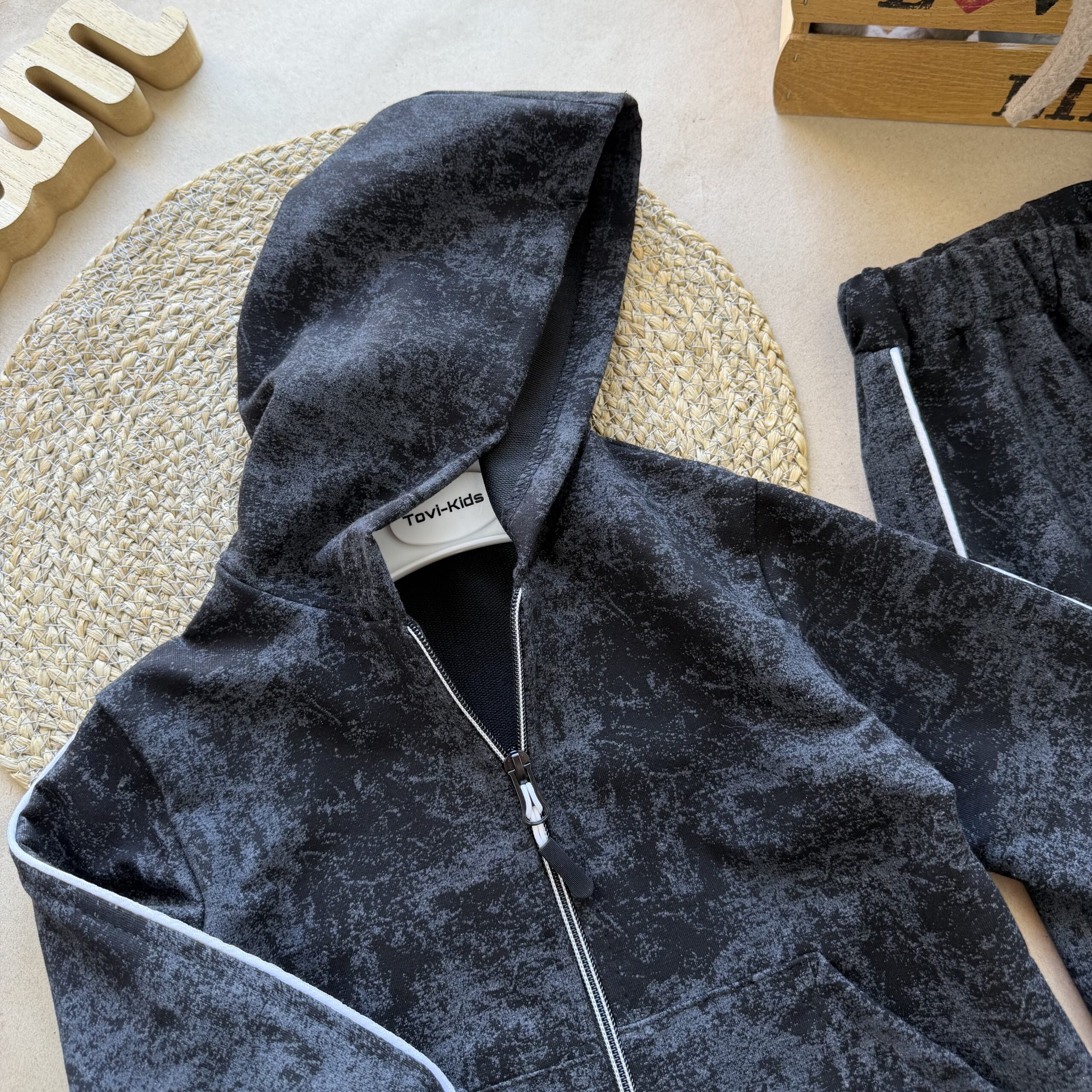Відшивається. Костюм двунитка мрамор кант чорний