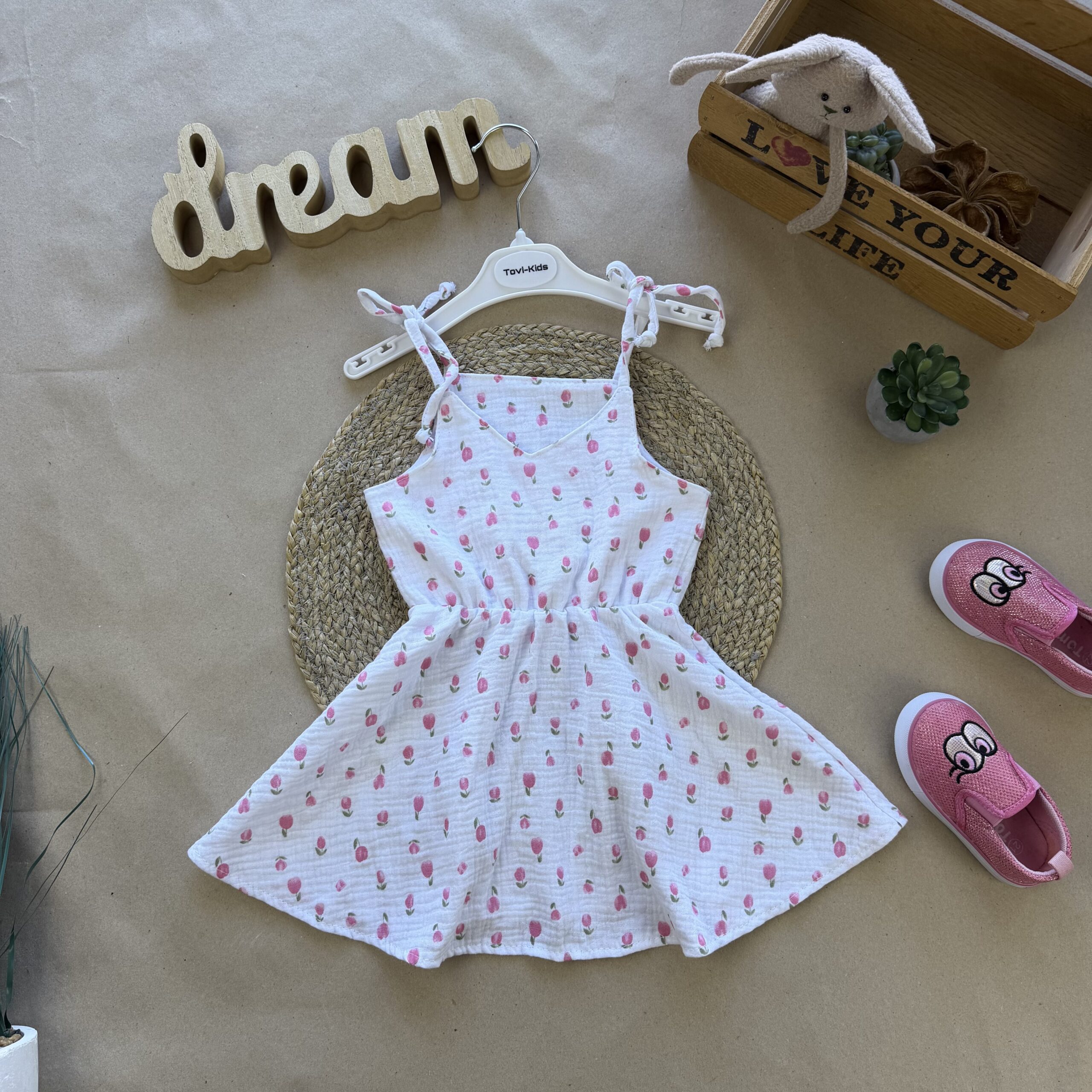 Літній, легкий сарафан власного виробництва. Дихаючий сарафан з мусліну, комфортний у спеку, не сковує рухів. Не кошлатиться, не втачає колір при пранні. Верх регулюється зав'язками. Пояс призібраний на резинці.
