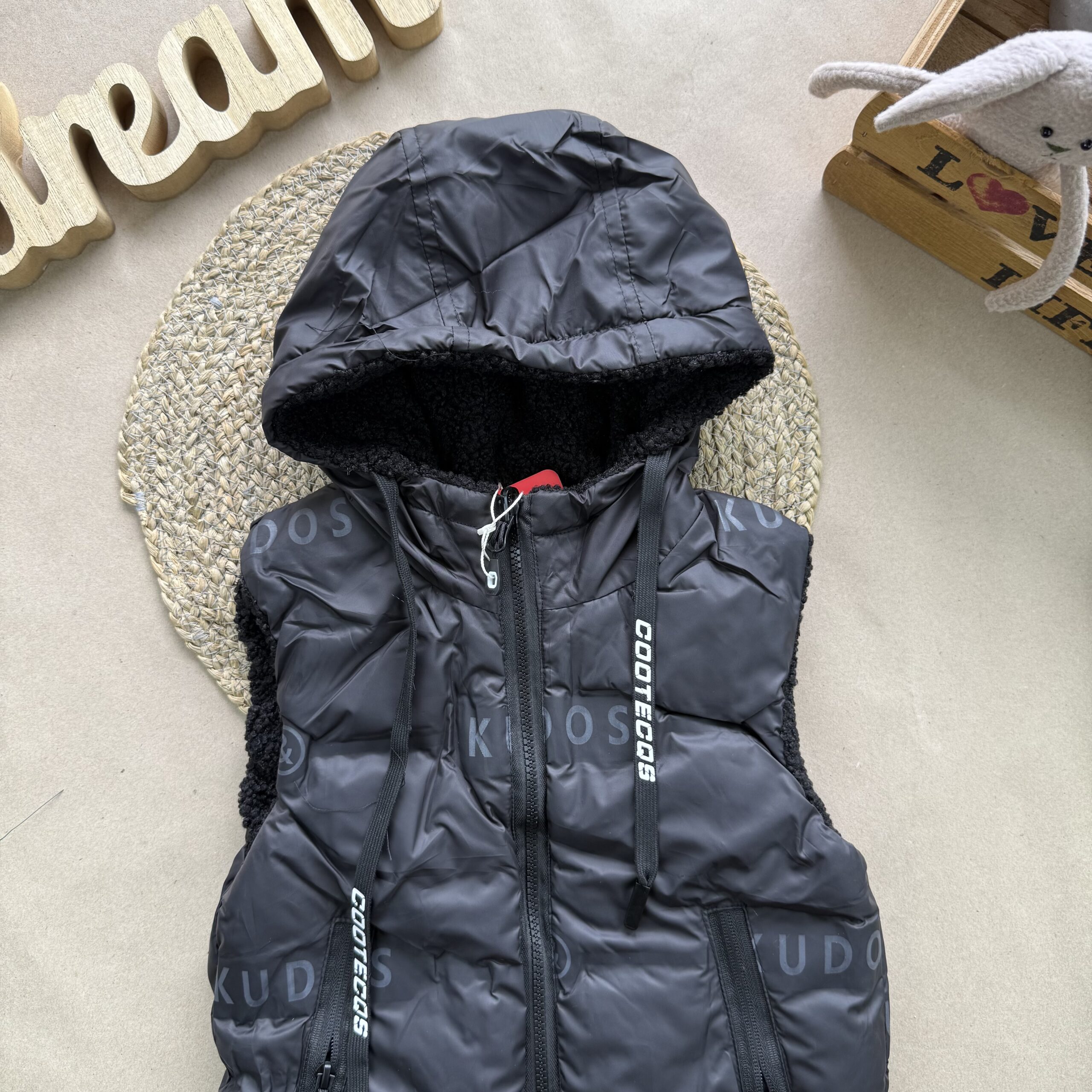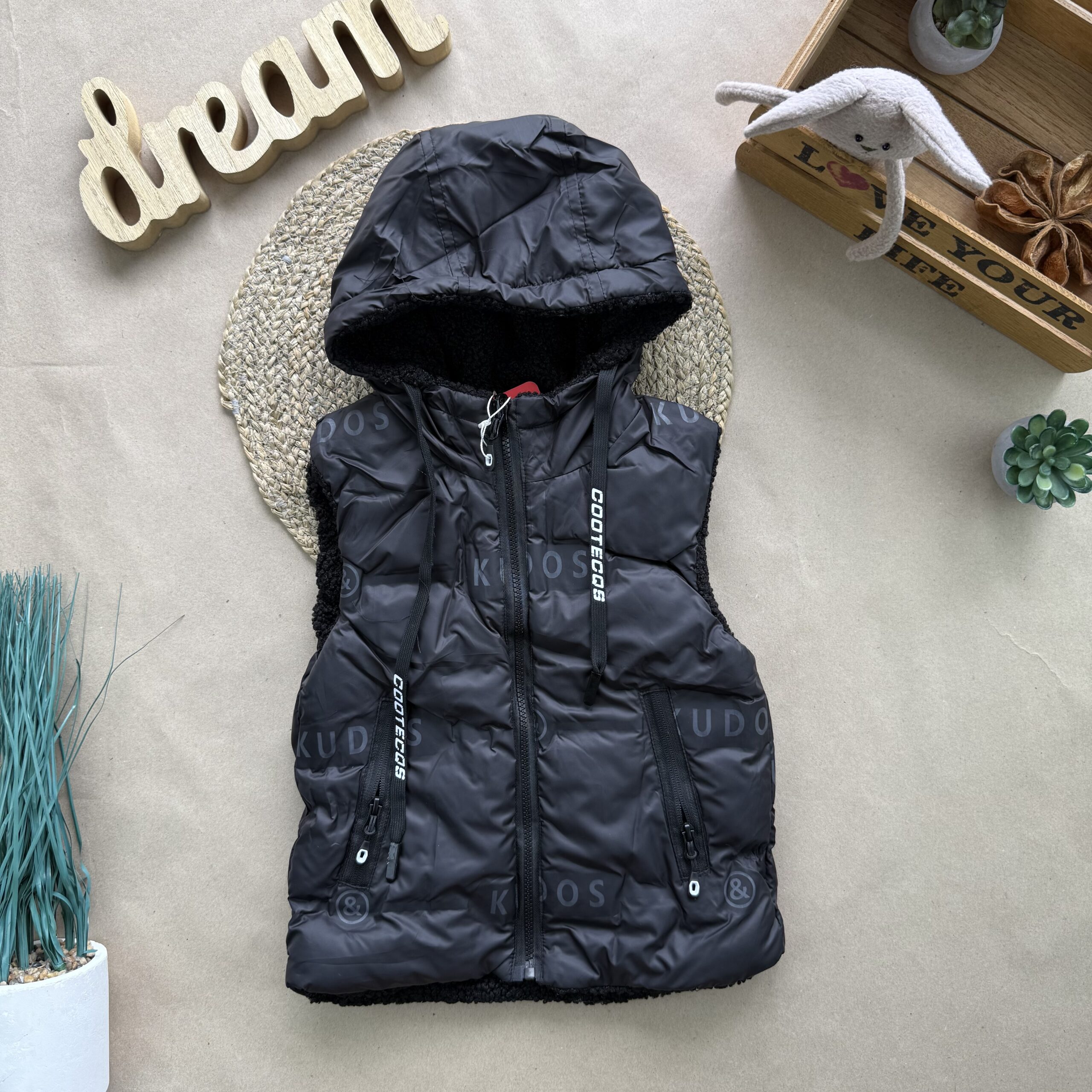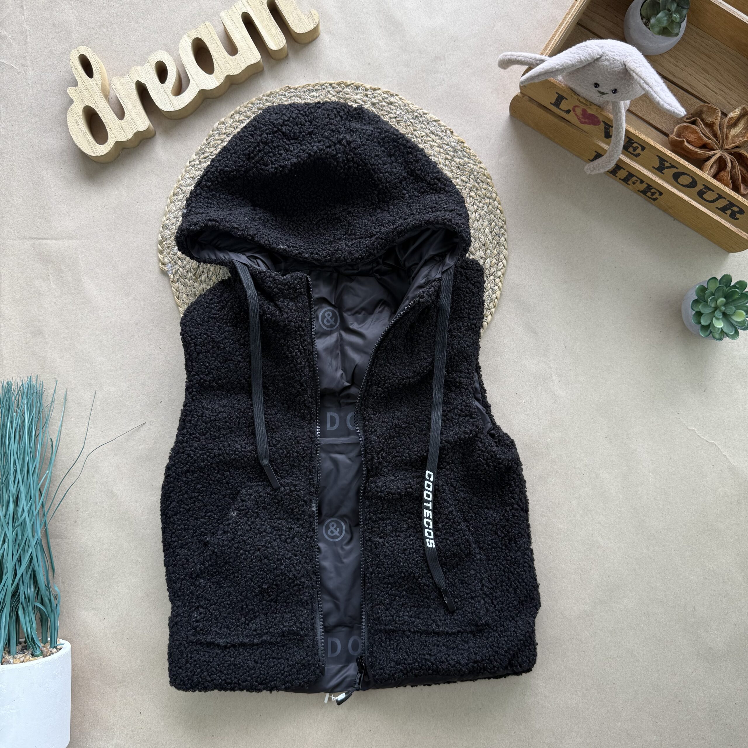 Демізенонний двосторонній жилет виробництва фабричний Китай! З одного боку – болонь, з іншого – баранець теді, наповнювач силікон 150, Застібається на блискавку, дві кишені. Подовжена, глибокий капюшон.