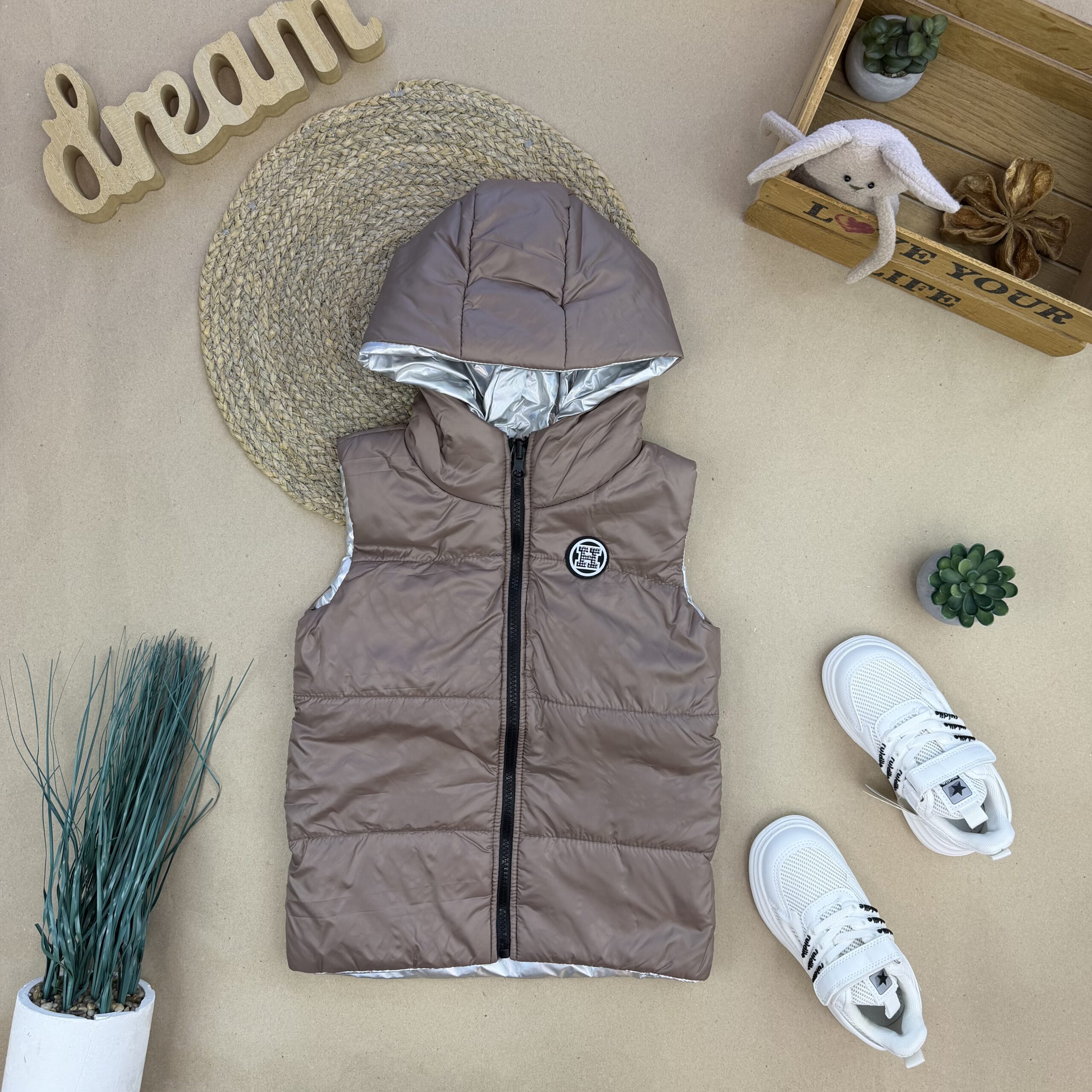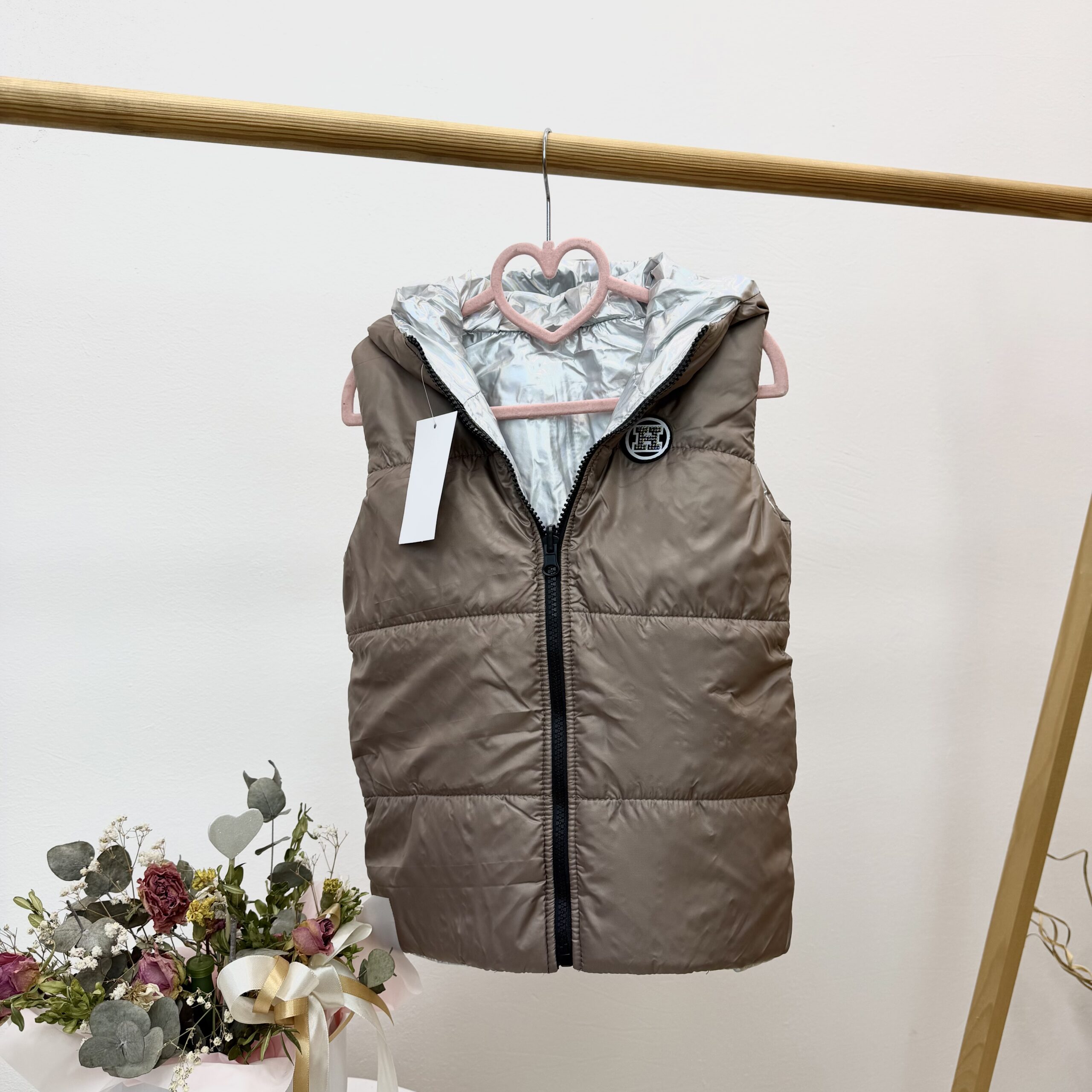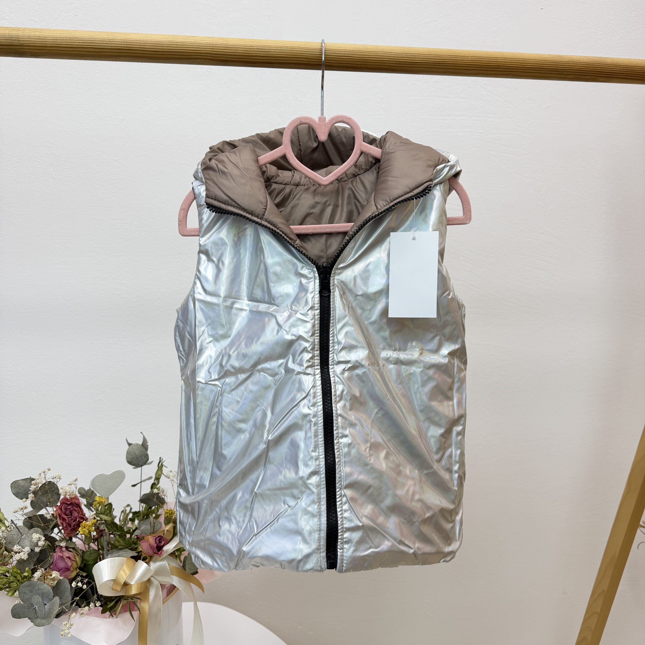 Двусторонній демізенонний  жилет виробництва Україна!  Застібається на блискавку. Глибокий капюшон. Кишені з обидвох боків. Наповнювач синтепон 100.